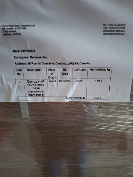 2 pallets with corrugated round cake bases, colour: black/brown, diameter 8", approximately 52.000 pieces, dimensions: (2x) 1200 mm x 800 mm x 2200 mm.