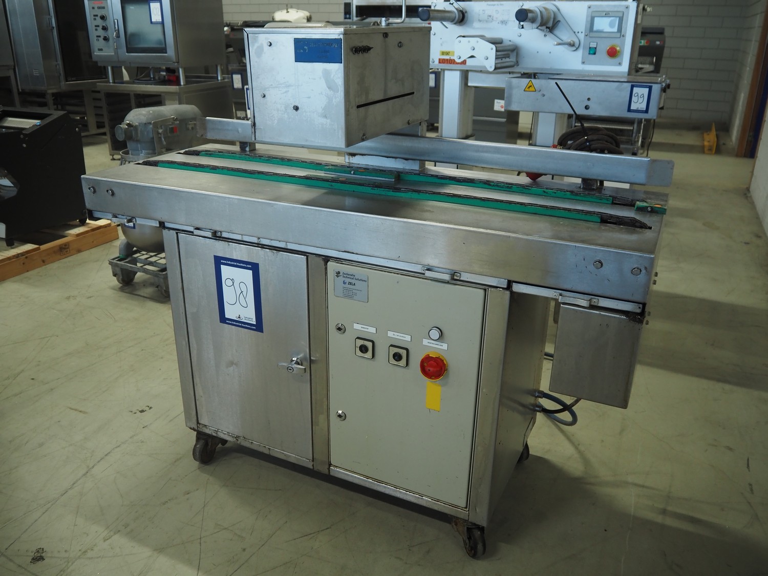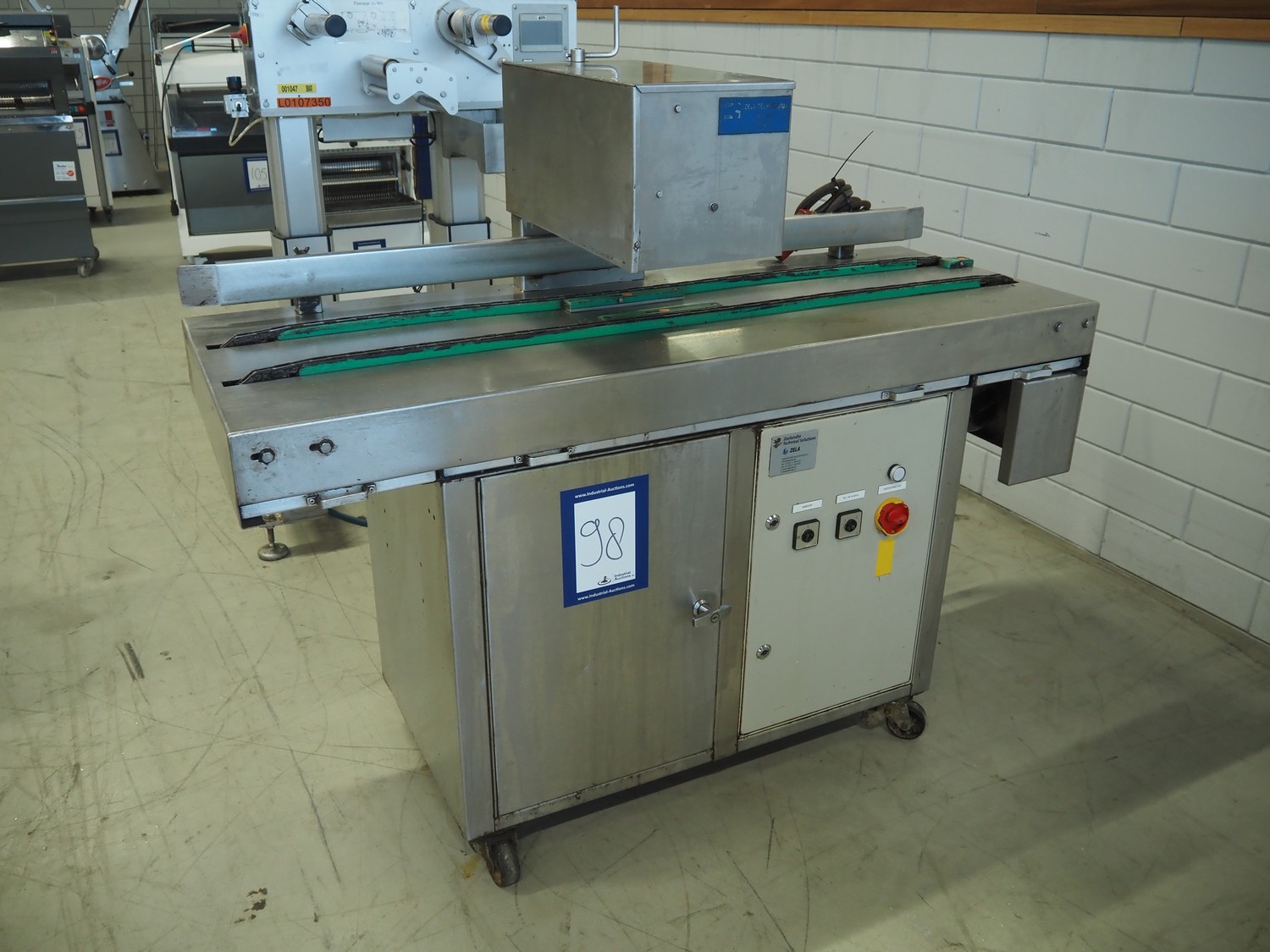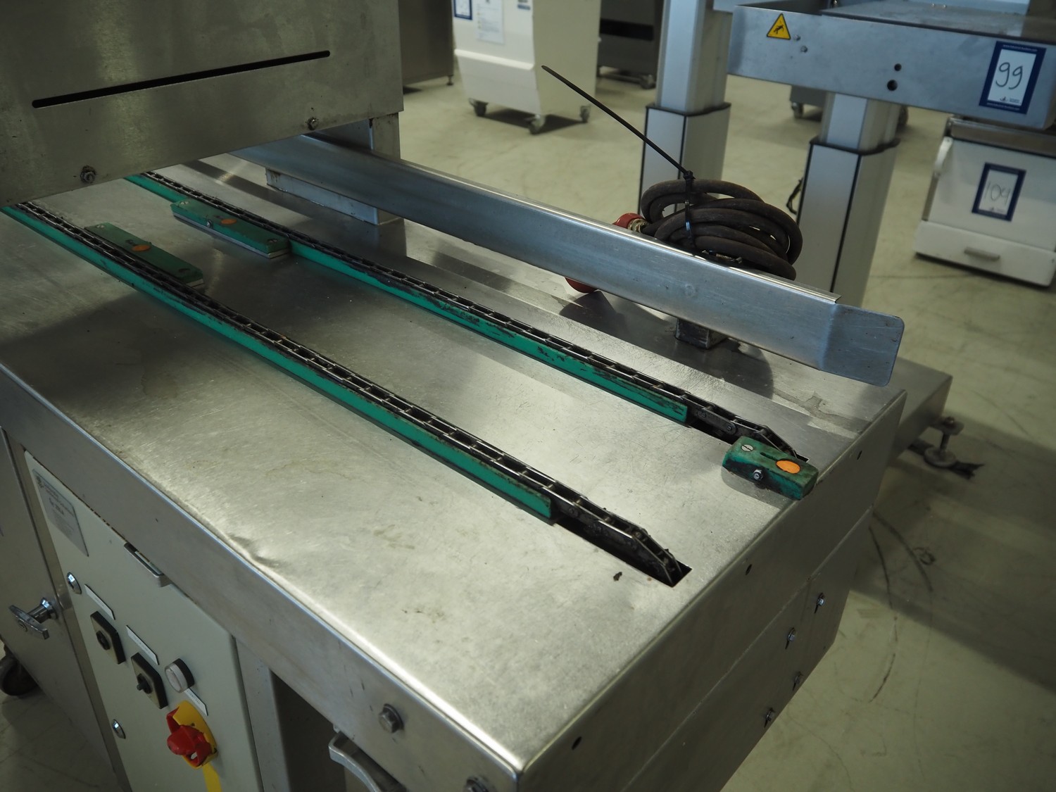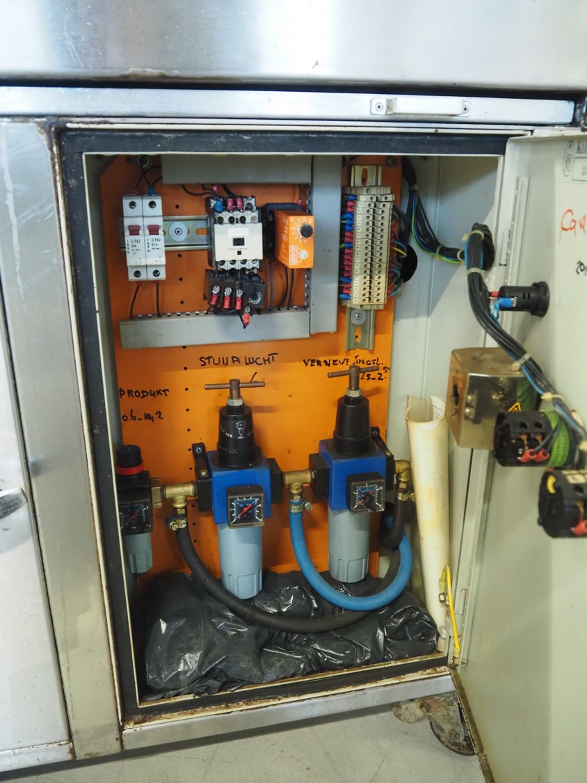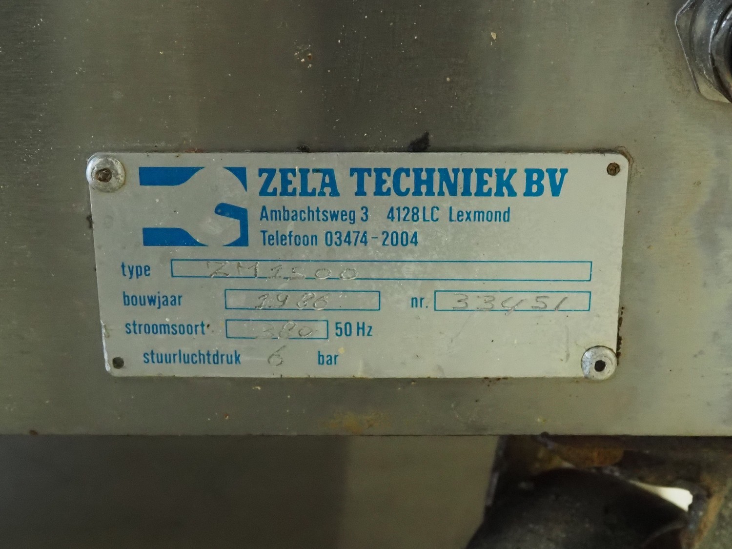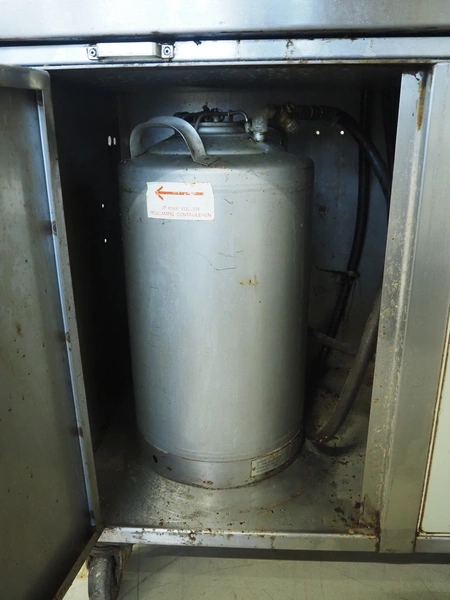 Zela Techniek B.V. mobile greasing machine, type: ZM1500, number: 33451, year of construction: 1986, 280 V, 50 Hz, 6 bar, distance between chains: 165 mm, total dimensions: 1500 mm x 560 mm x 1350 mm.