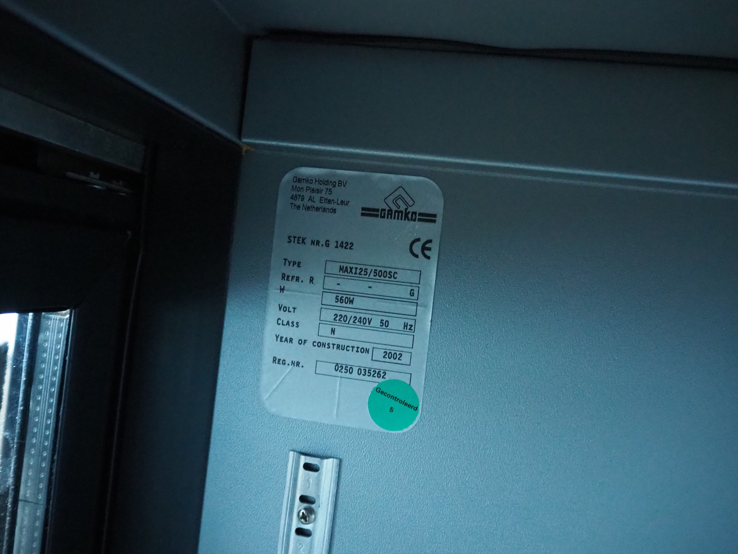 Gamko Holding BV refrigerator, type: MAXI25/500SC, year of construction: 2002, 220/240 V, 50 Hz, 560 W, dimensions: 920 mm x 550 mm x 1820 mm.