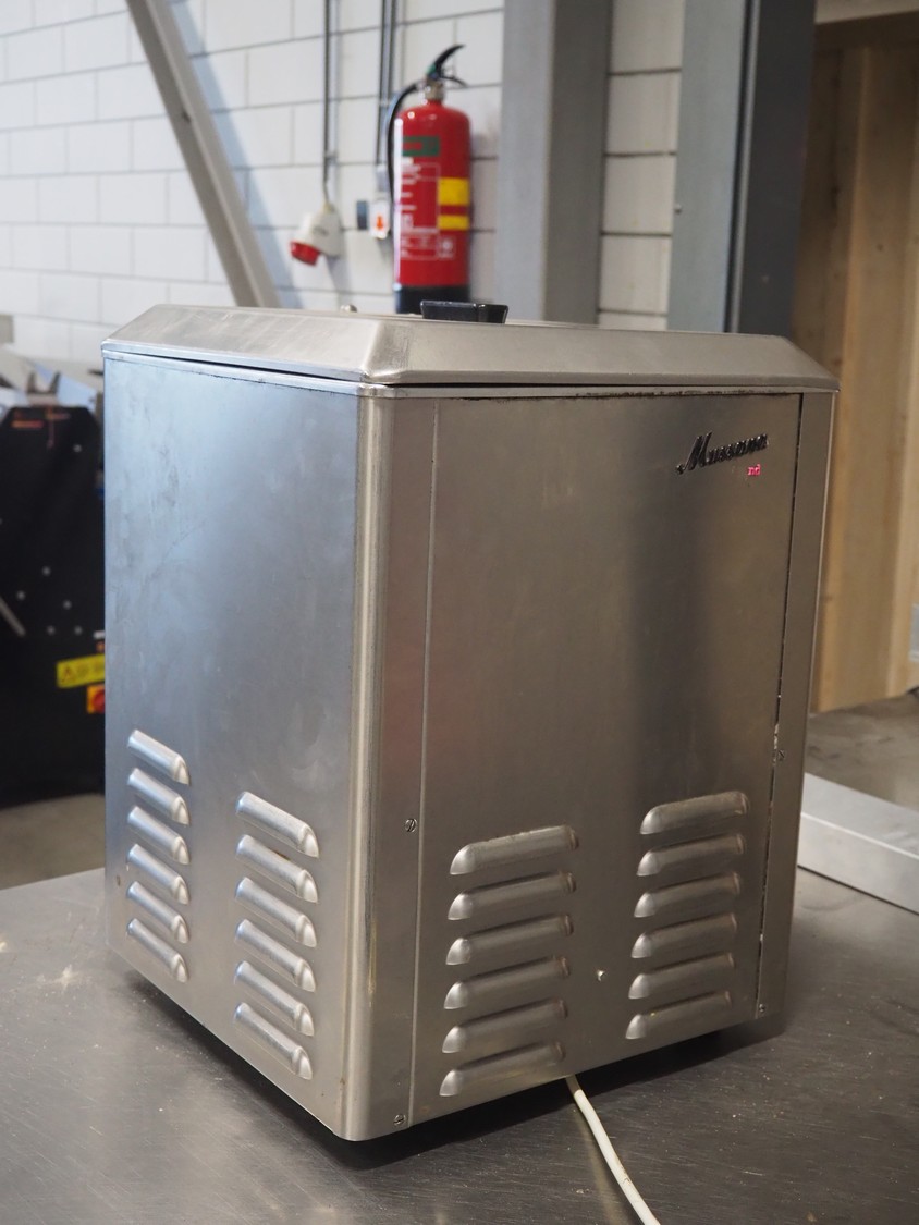Hans Kratt whipped cream machine, number: 7271011 G, 230 V, 50 Hz, 500 W, refrigerant: R 134 a, dimensions: 500 mm x 400 mm x 520 mm.