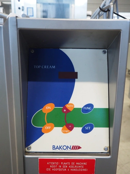 Bakon B.V. mobile whipped cream mixer, model: TC 2/10C, serial number: 7.210.135, year of construction: 2004, 230 V, 50 Hz, 1.5 kW, inside dimensions: Ø 350 mm x 450 mm, total dimensions: 800 mm x 500 mm x 1160 mm.