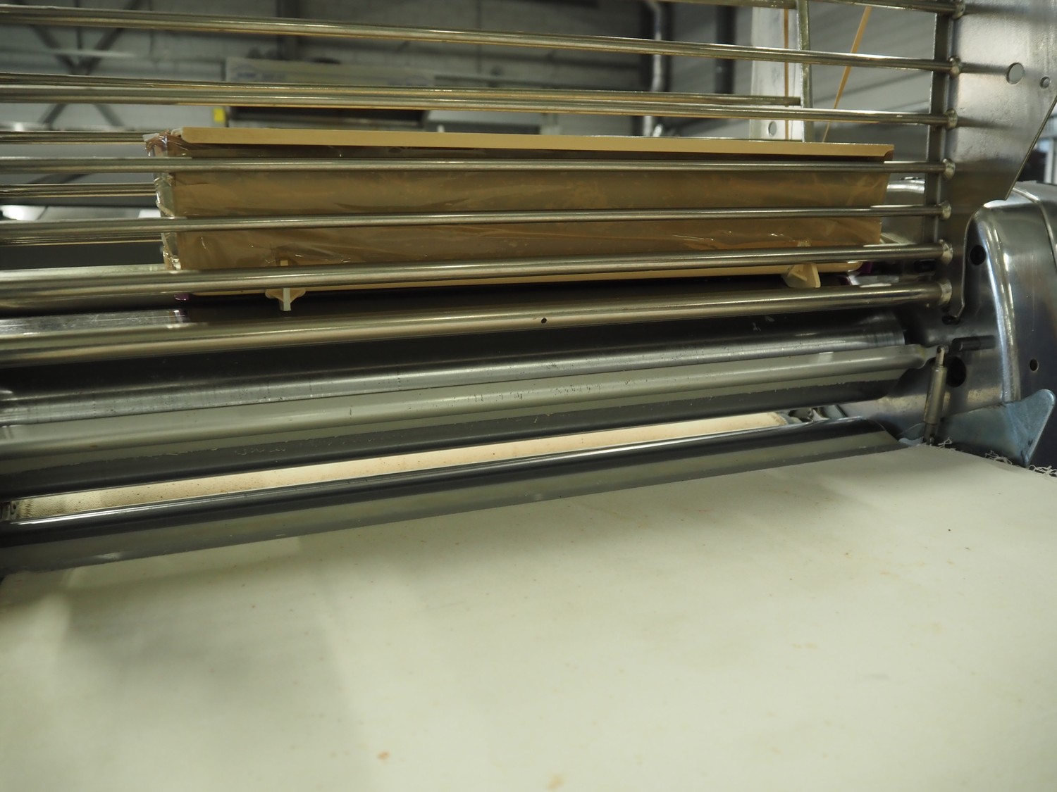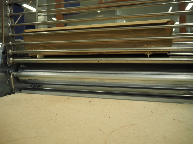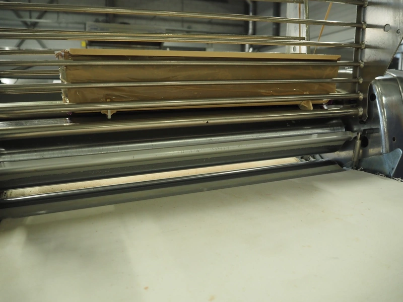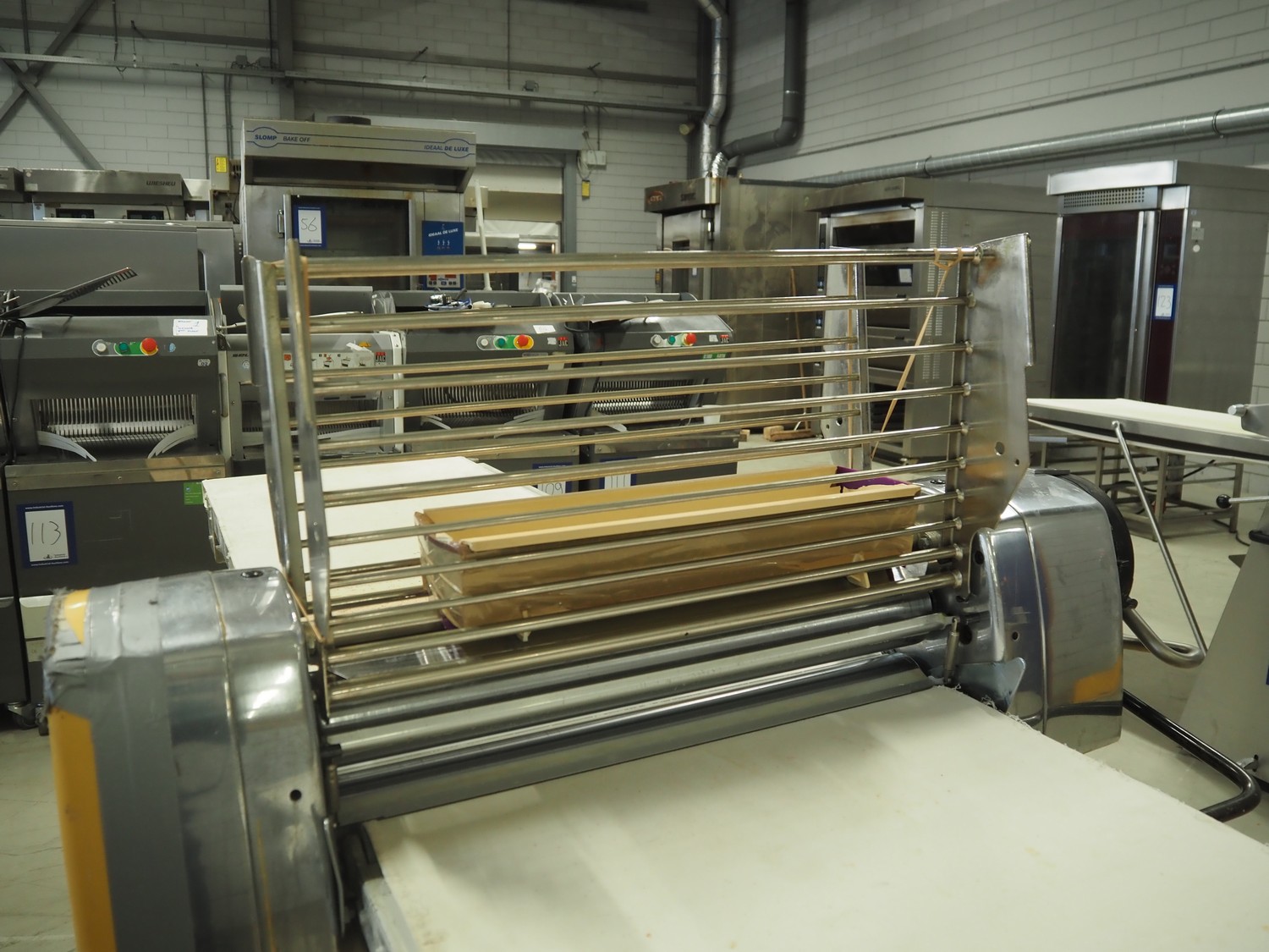 Seewer Rondo mobile dough sheeter, model: SS0 63, machine number: B2068008, cloth belt, belt width: 600 mm, total dimensions: 3500 mm x 1200 mm x 1300 mm.