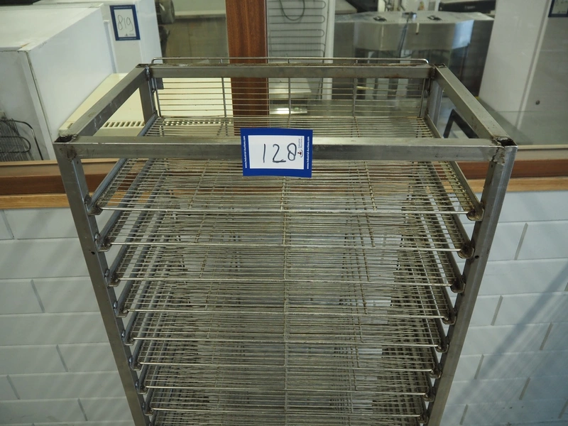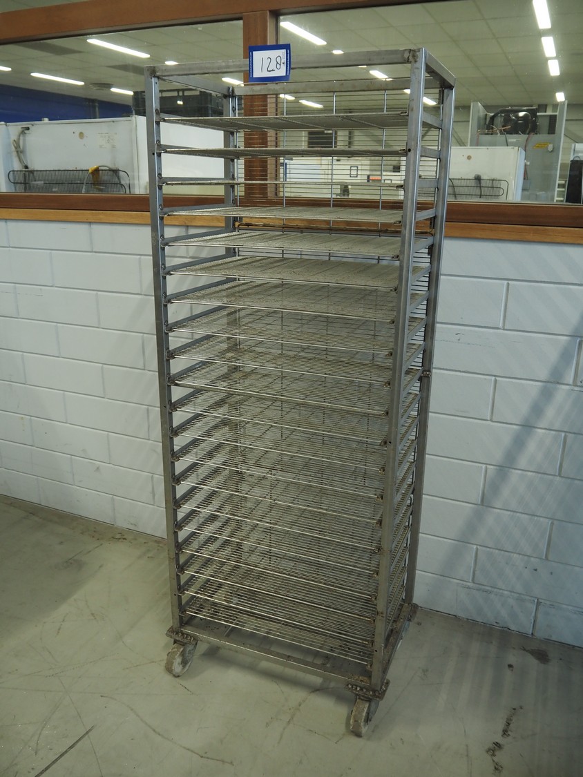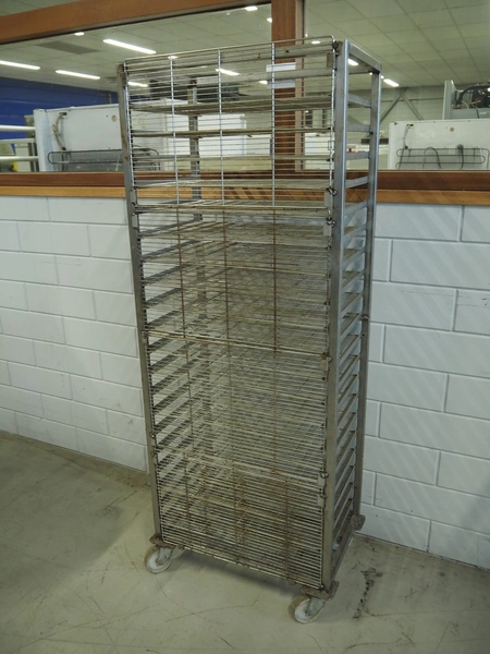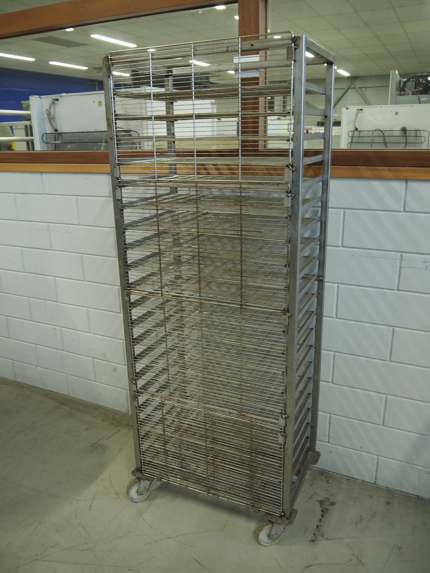 S/s trolley, 20 floors, dimensions floors: 600 mm x 410 mm, total dimensions: 660 mm x 420 mm x 1730 mm. Including 20 s/s racks.