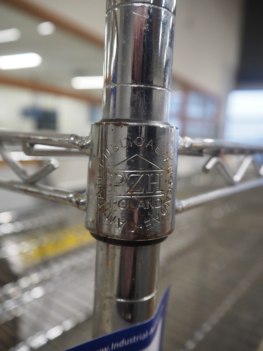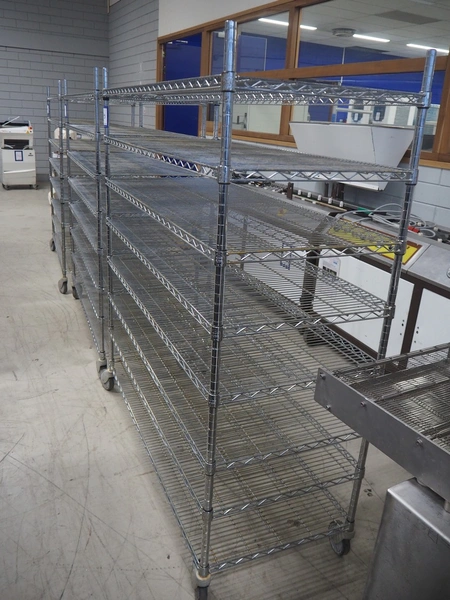 5 mobile s/s racks, 8 floors, dimensions floors: (8x) 600 mm x 1500 mm, total dimensions: 620 mm x 1520 mm x 1780 mm.