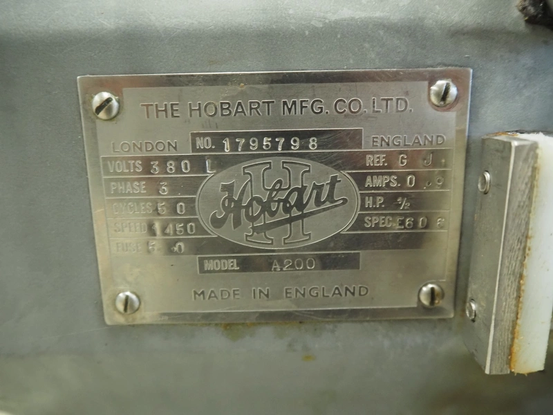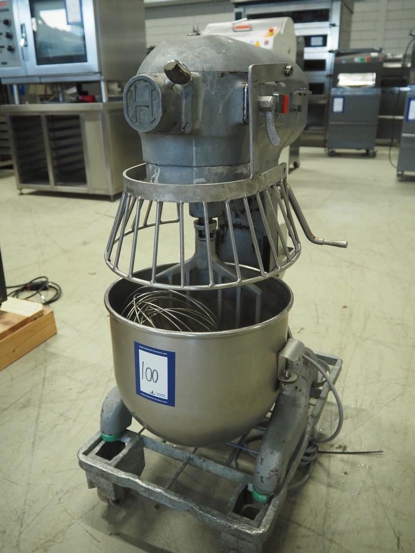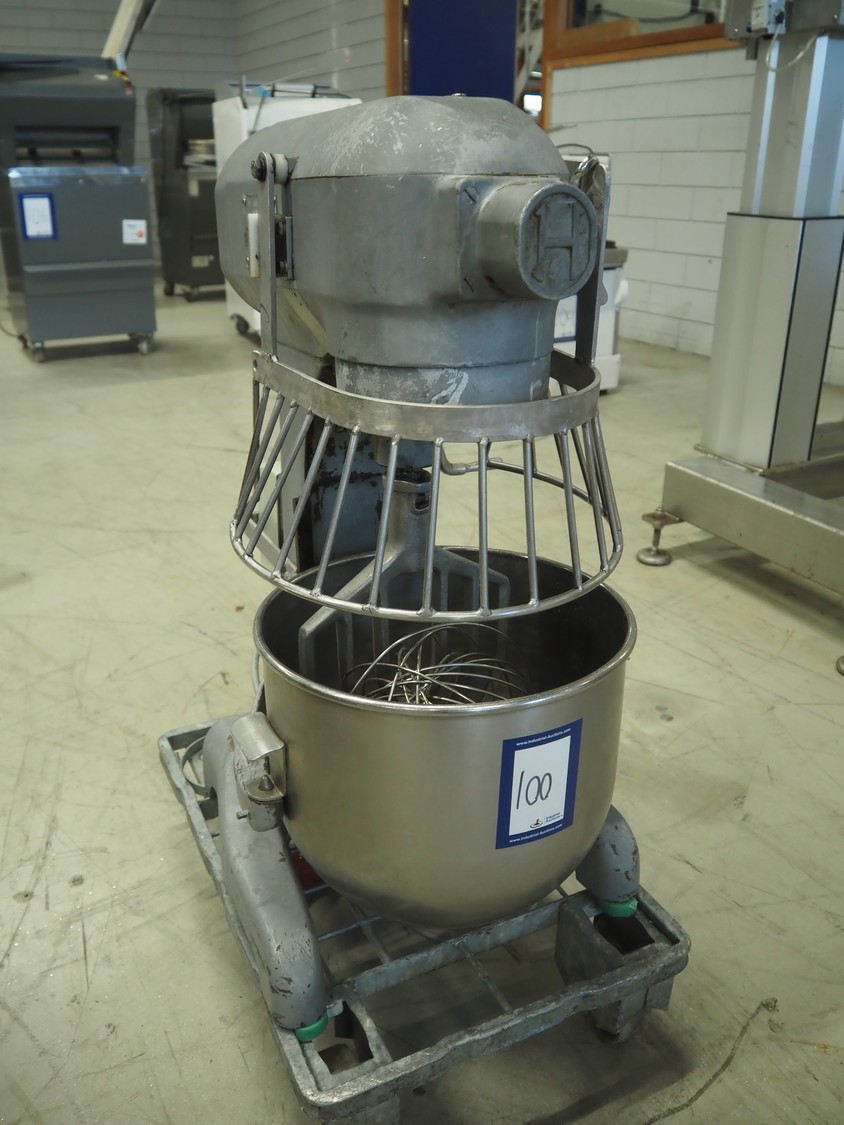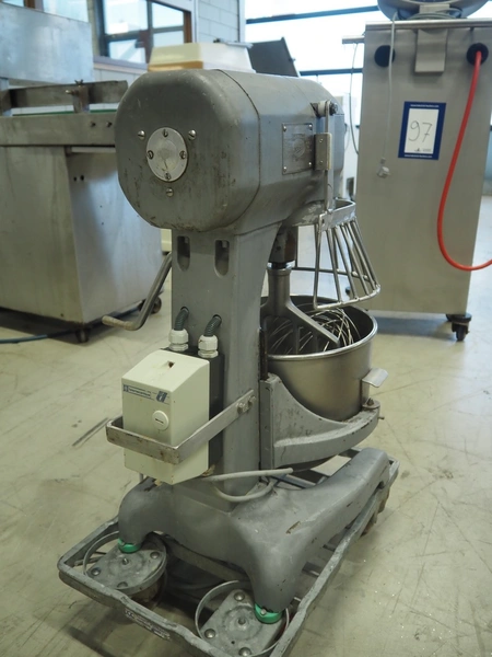 Hobart mixer, model: A200, number: 1795798, 230 V, 3 Ph, 50 Hz, 0.9 A, bowl dimensions: Ø 315 mm x 300 mm, total dimensions: 400 mm x 530 mm x 750 mm. Including extra whisk.