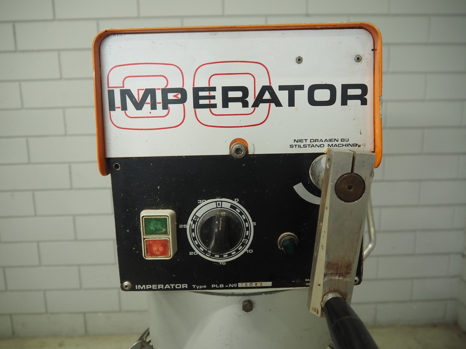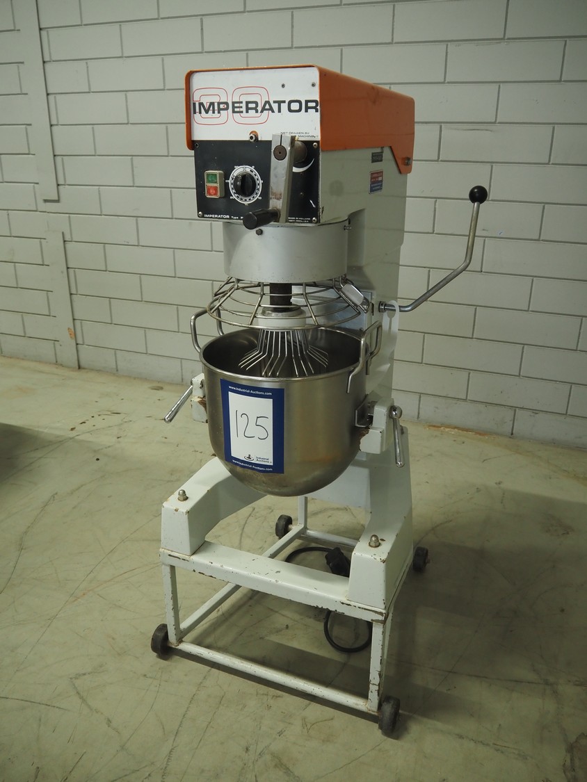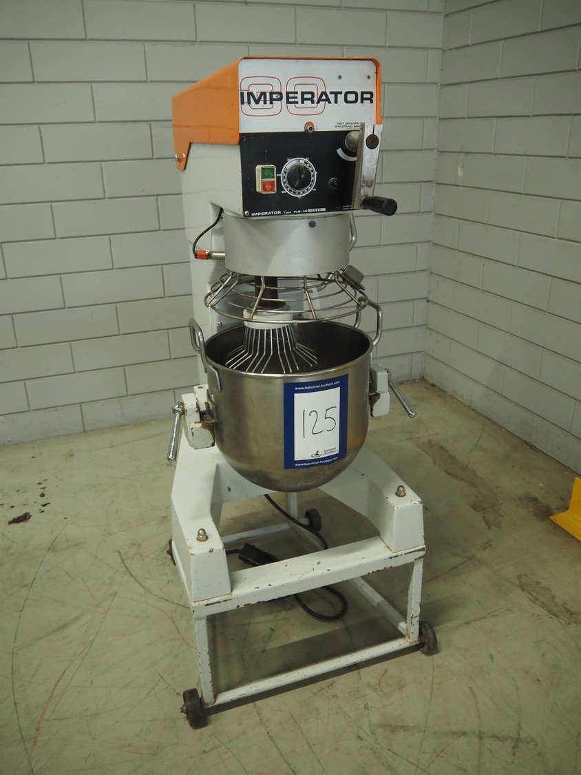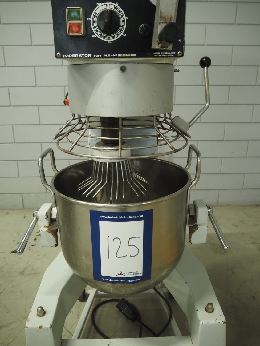 Imperator mixer, type: PLB 30, number: 78082, 380 V, 50 Hz, 1.8 A, bowl dimensions: ø 360 mm x 360 mm, total dimensions: 710 mm x 690 mm x 1430 mm. Including batter and hook.