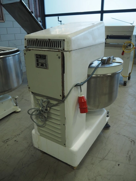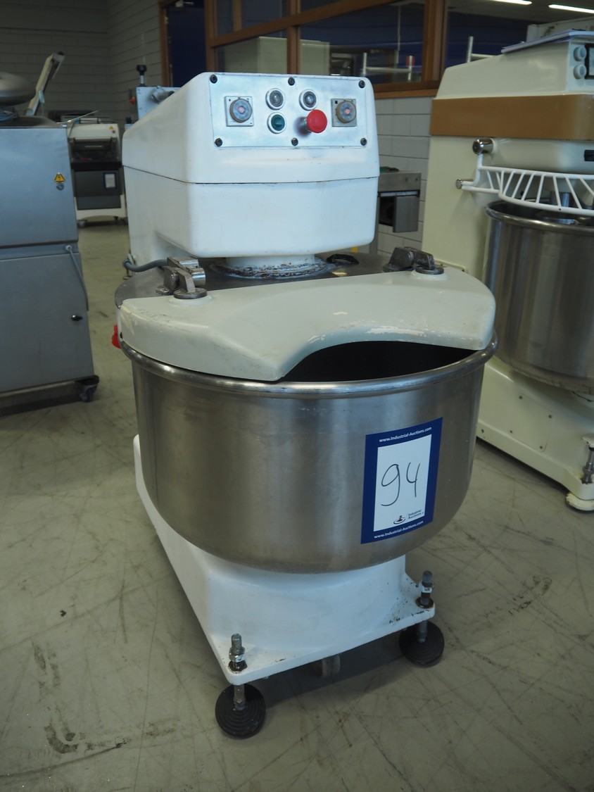 Diosna mobile spiral mixer, type: SP 80 D, number: 9610-201, 380 V, 3 Ph, 50 Hz, 11.5 A, capacity: 80 kg dough, bowl dimensions: Ø 650 mm x 390 mm, total dimensions: 700 mm x 1070 mm x 1220 mm.