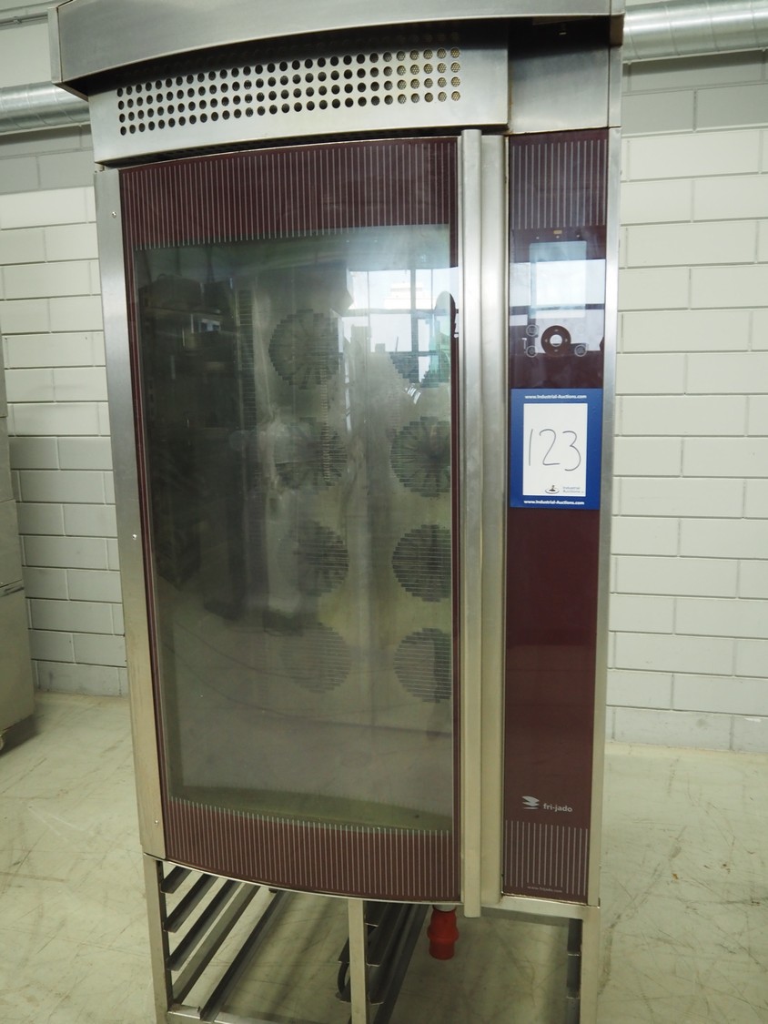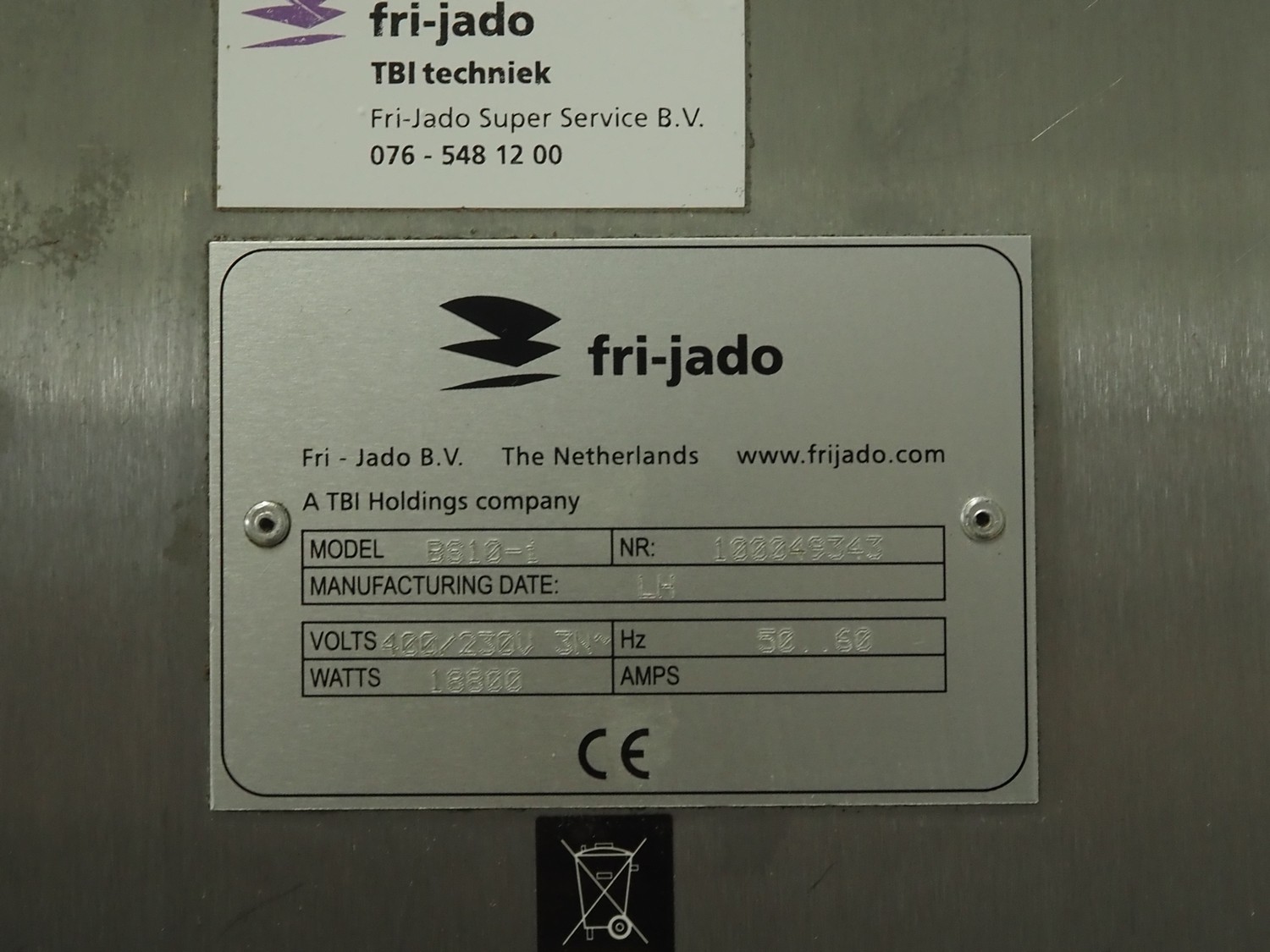 Fri-Jado oven, model: BS10-1, number: 100049343, 400/230 V, 3 Ph, 50/60 Hz, 18800 W, 10 floors, dimensions: 910 mm x 780 mm x 2060 mm.