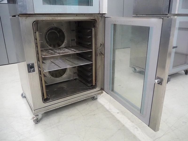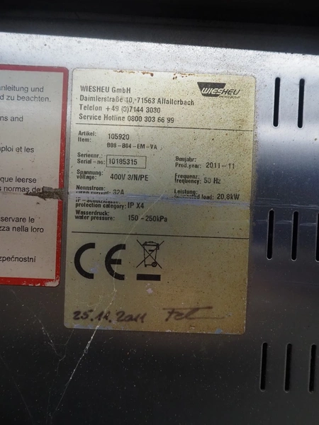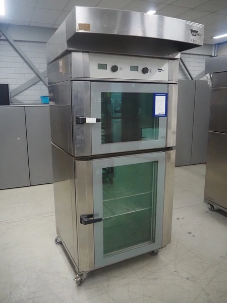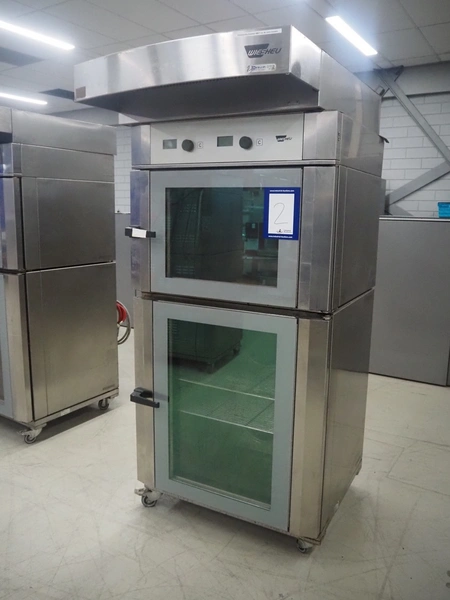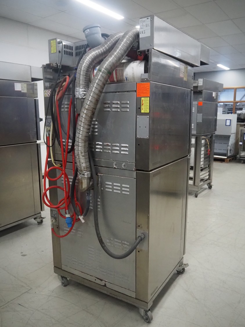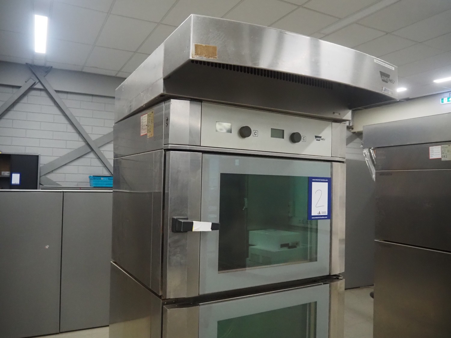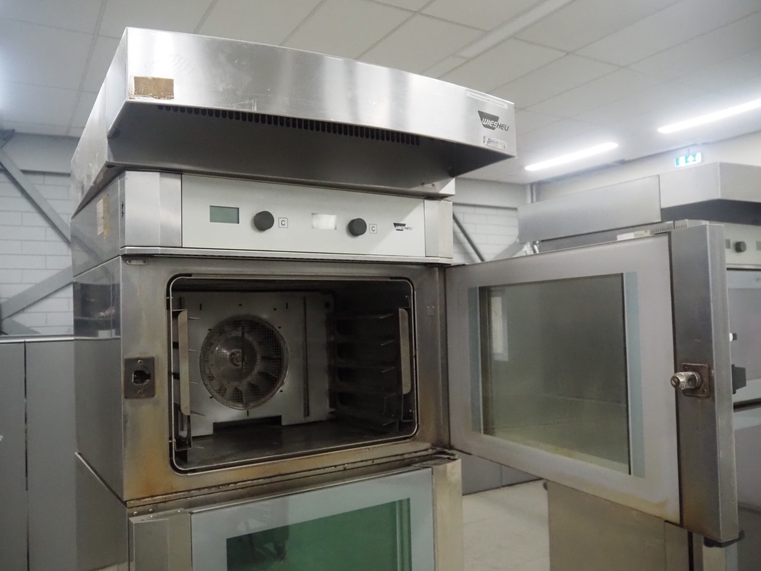 Wiesheu GmbH mobile double stacked oven, model: B08-B04-EM-Va, serial number: 10185315, year of construction: 2011-11, 400 V, 3 Ph, 50 Hz, 32 A, 20.8 kW, 5 and 10 floors, dimensions each floor: 620 mm x 400 mm, total dimensions: 930 mm x 1200 mm x 2070 mm.