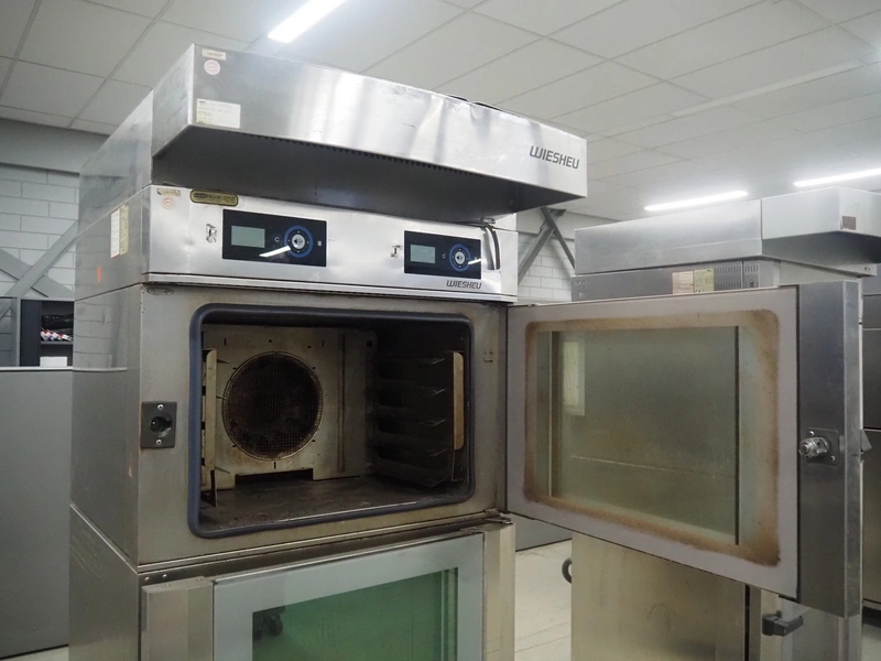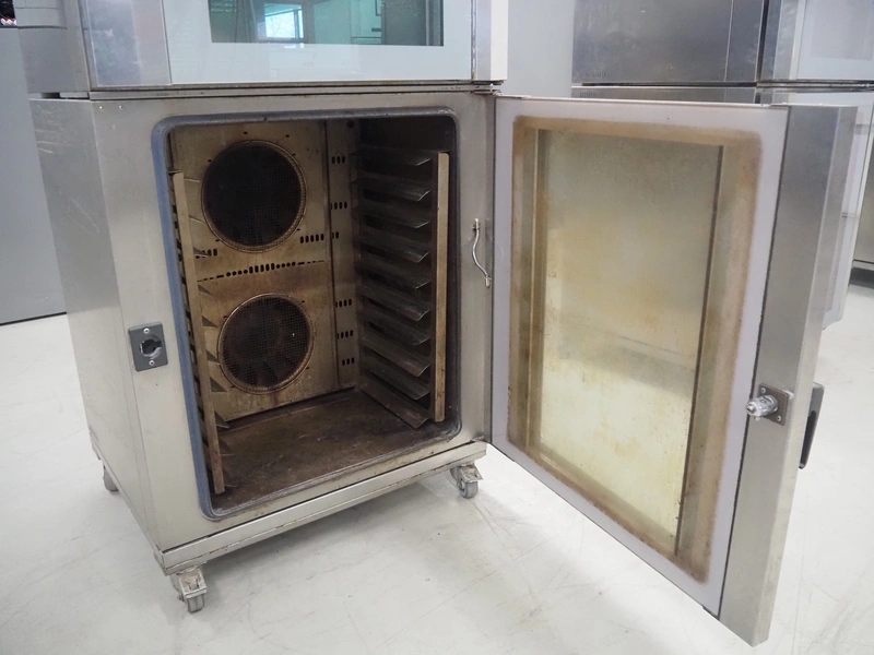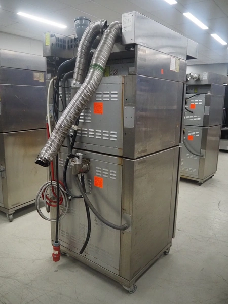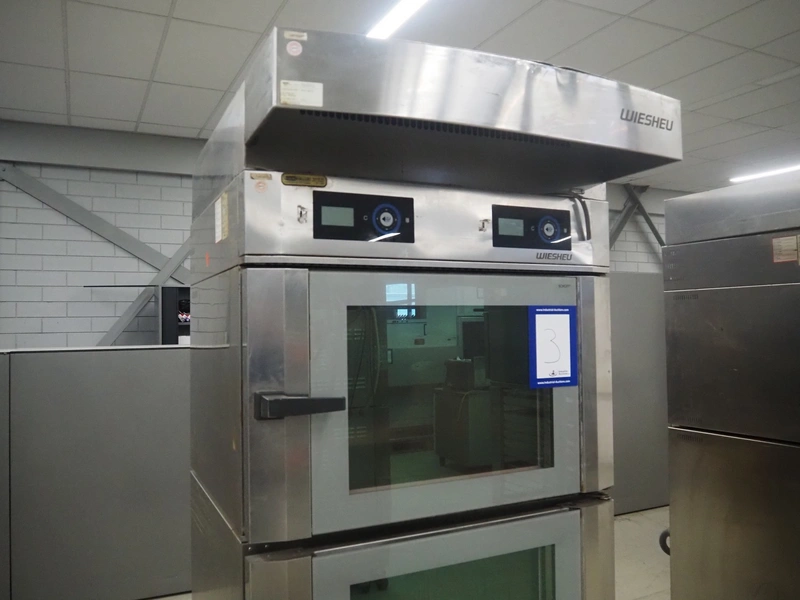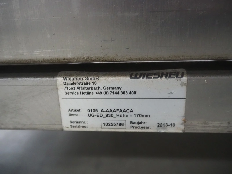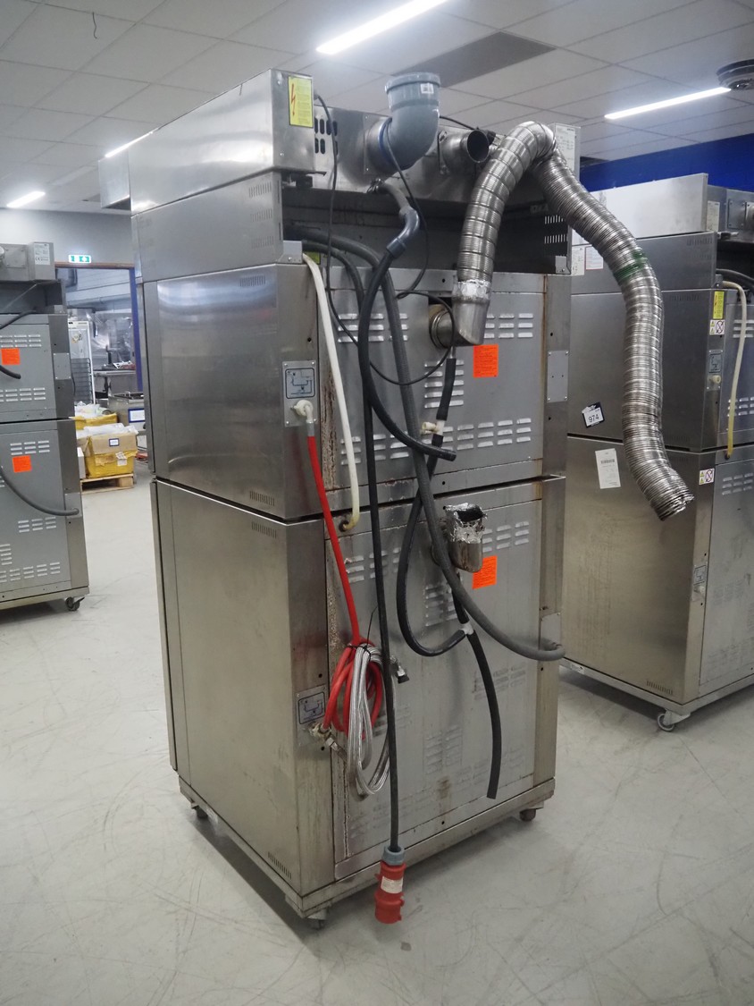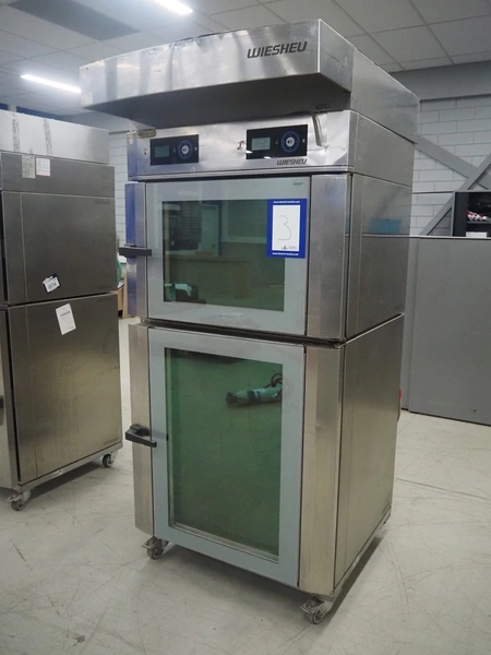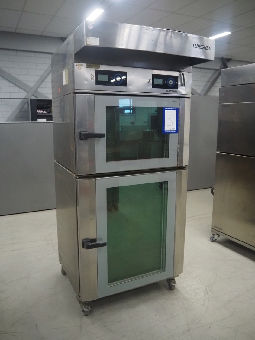 Wiesheu GmbH mobile double stacked oven, model: B08-B04-EM-VA, serial number: 10255784, year of construction: 2013-10, 400 V, 3 Ph, 50 Hz, 32 A, 20.8 kW, 5 and 10 floors, dimensions each floor: 620 mm x 400 mm, total dimensions: 930 mm x 1200 mm x 2070 mm.