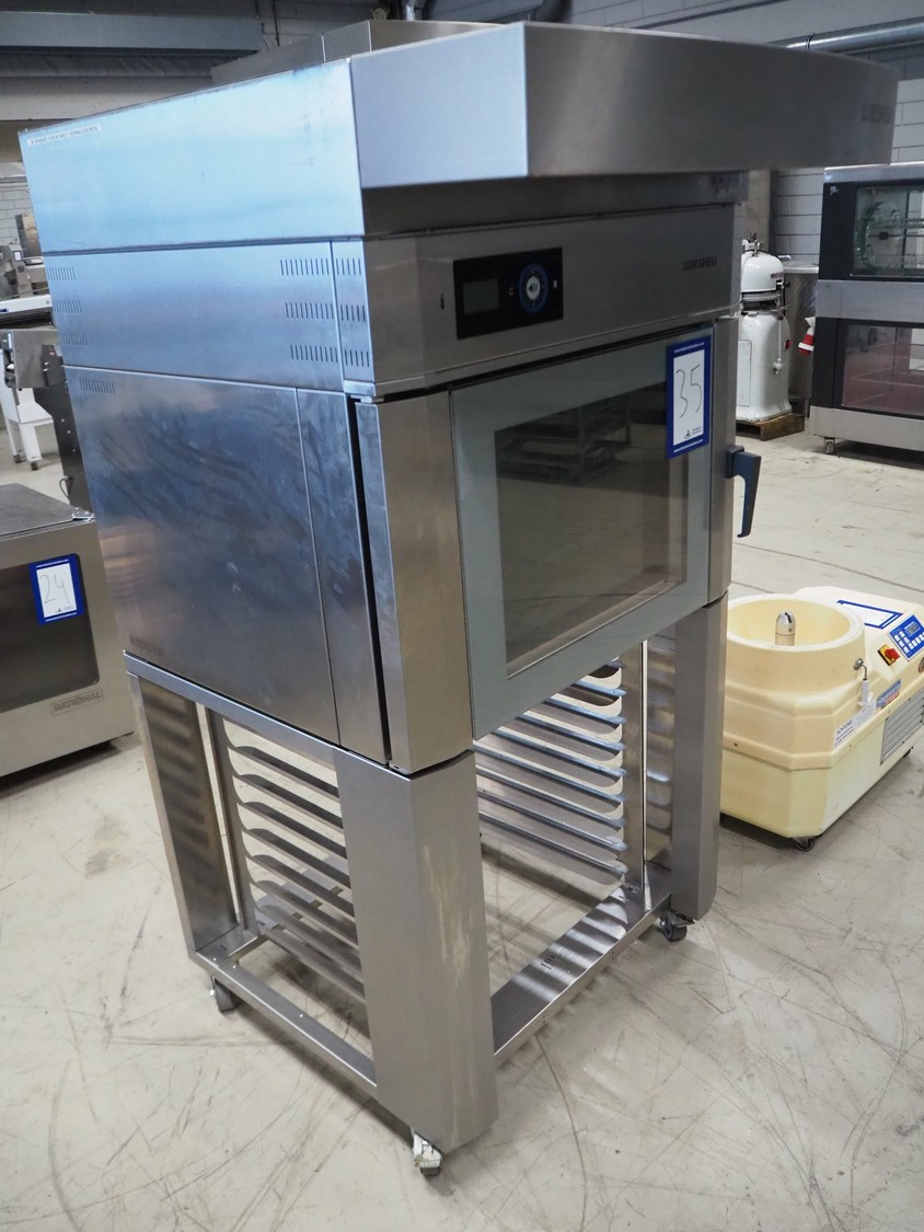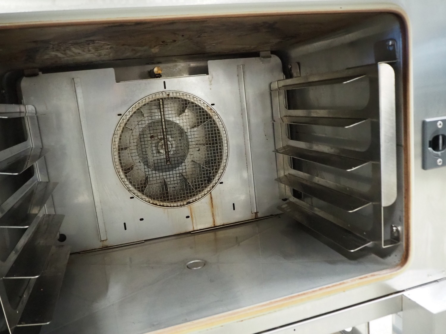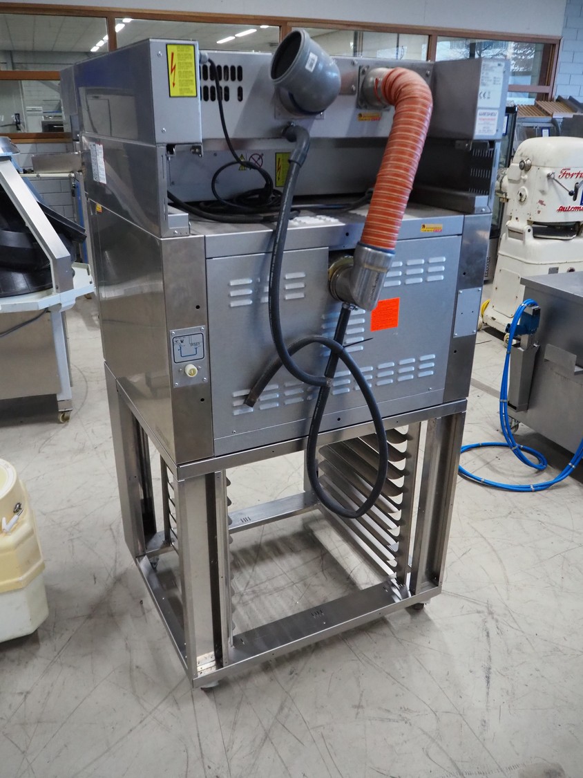 Wiesheu GmbH mobile oven, model: B04-EM, serial number: 10311135, year of construction: 07-2015, 400 V, 3 Ph, 50 Hz, 12.2 A, 8.4 kW, 5 floors, dimensions each floor: 610 mm x 400 mm, total dimensions: 1200 mm x 950 mm x 1800 mm.