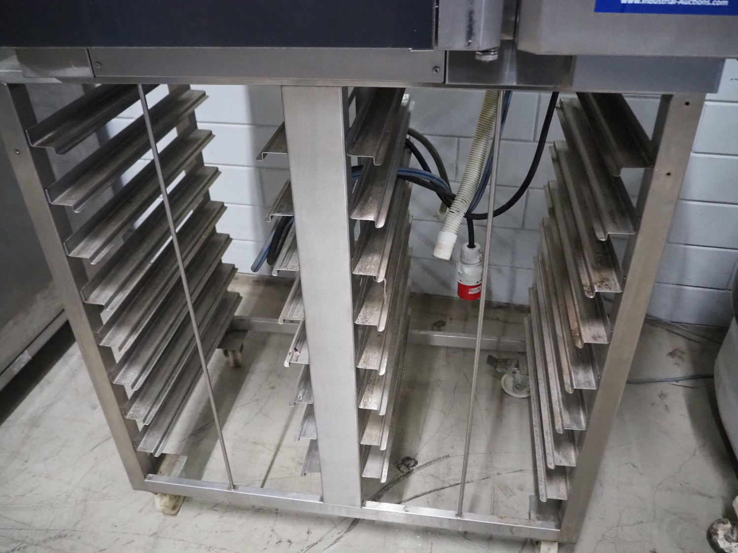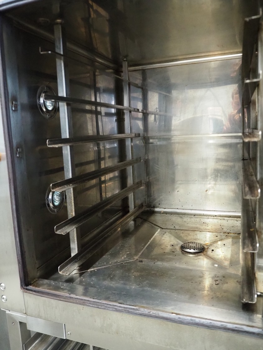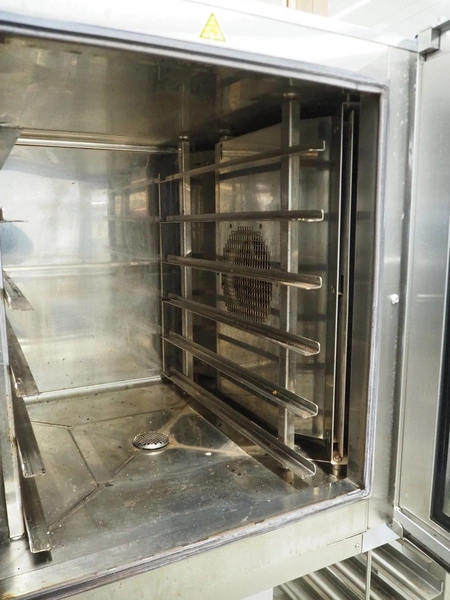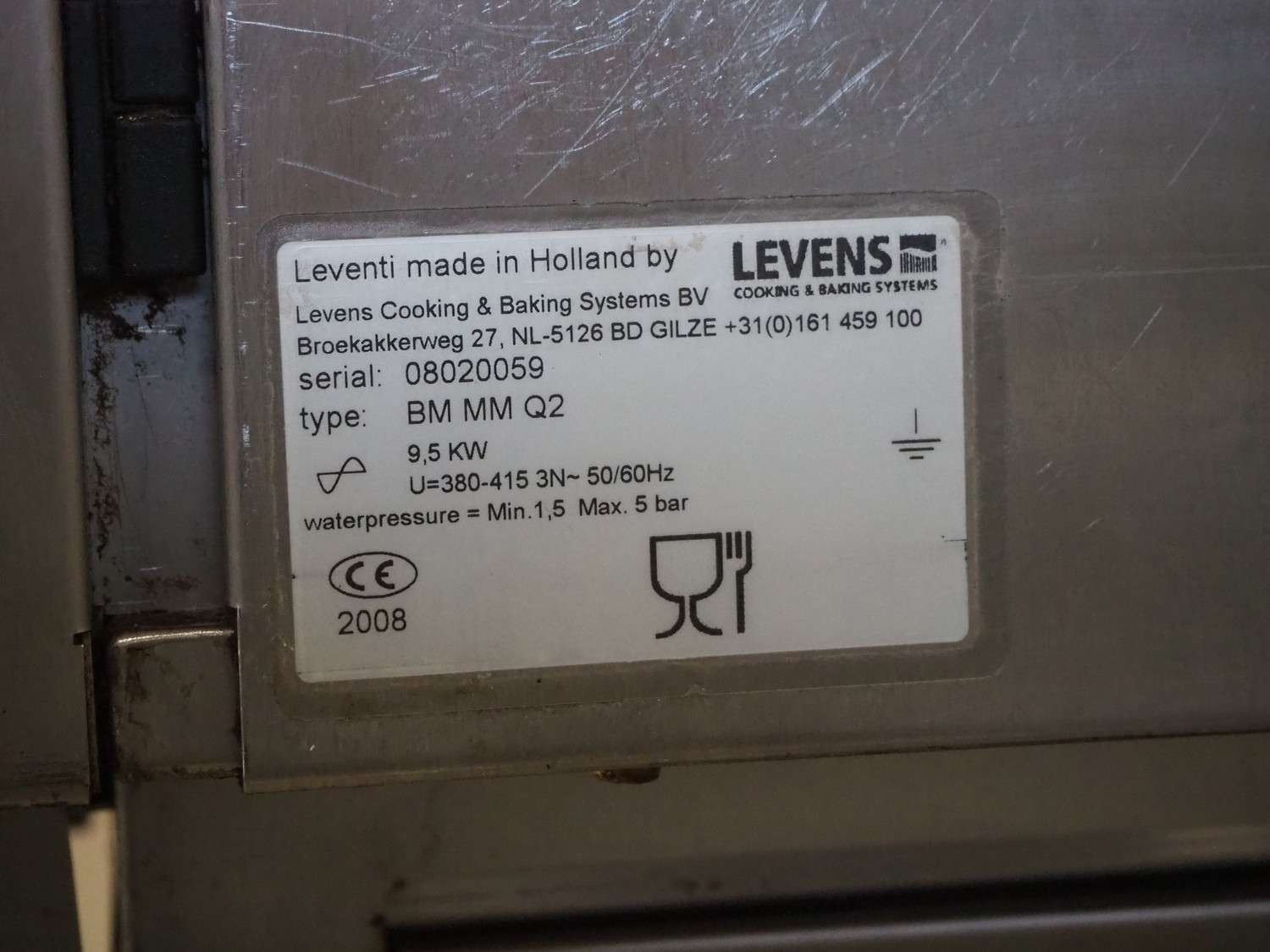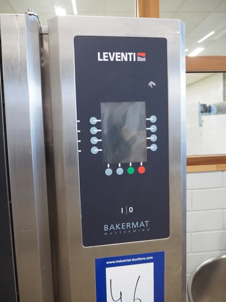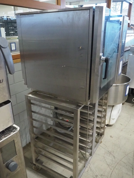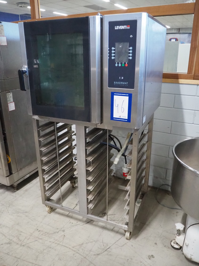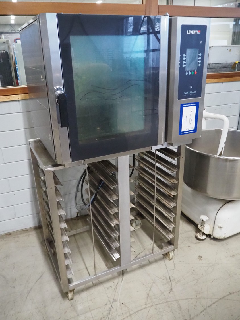 Leventi oven on mobile s/s frame, type: BM MM Q2, serial number: 08020059, 380-415 V, 3 Ph, 50/60 Hz, 9.5 kW, 6 floors, dimensions each floor: 600 mm x 410 mm, total dimensions: 1000 mm x 800 mm x 1850 mm.