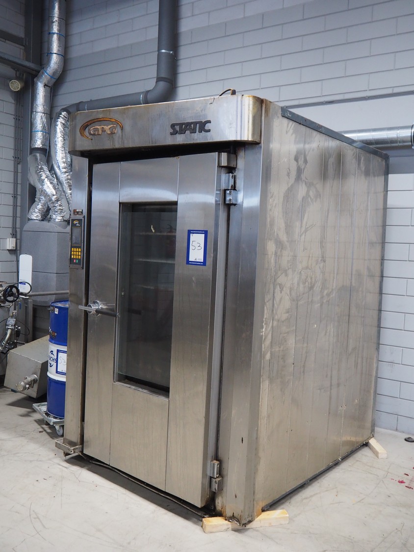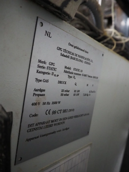 Grupo Prat Gouet multi deck oven, model: STATIC-10, number: H-8957, year of construction: 20/01/20, 400 V, 50 Hz, 3500 W, gas/thermal oil heated, 10 decks, dimensions decks: 1280 mm x 850 mm, Weishaupt oil burner, model: WG20N/1-C Z-LN, serial number: 4057303720, capacity: 35-200 kW, dimensions oil burner: 1650 mm x 1400 mm x 2500 mm, total dimensions: 2400 mm x 1470 mm x 2300 mm. Including various part and oil vessel.