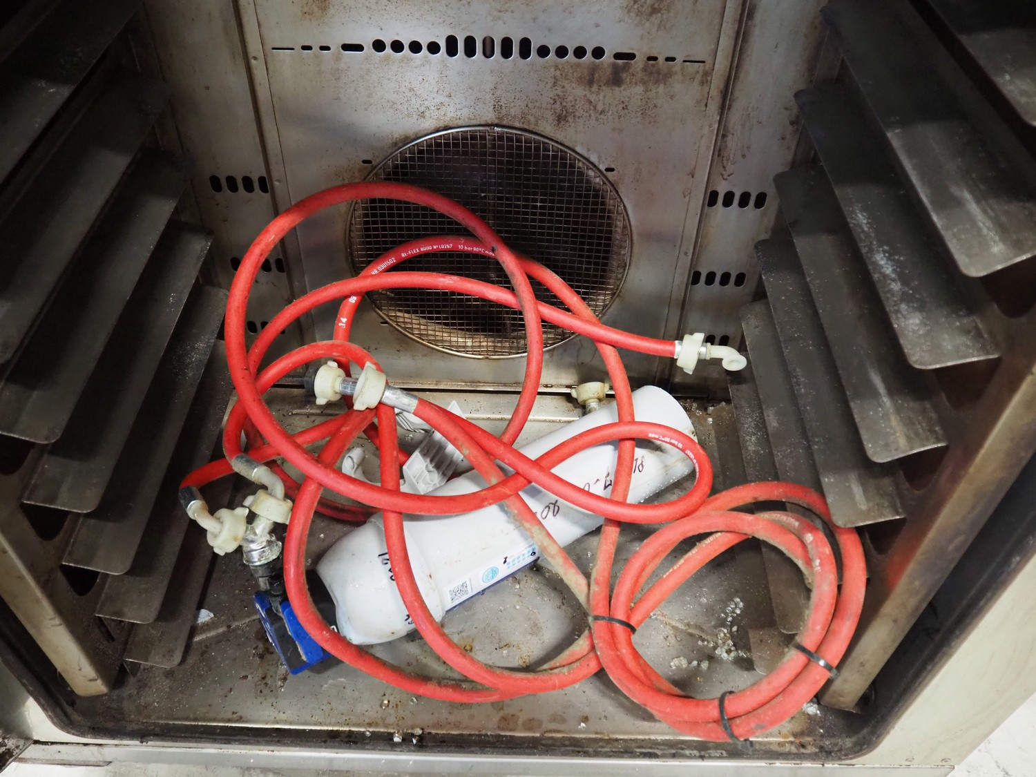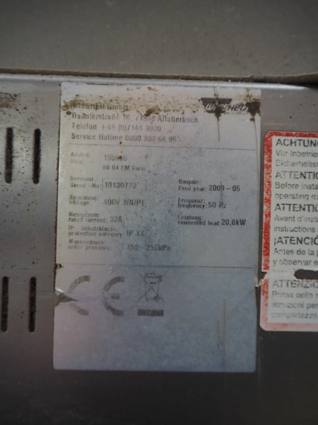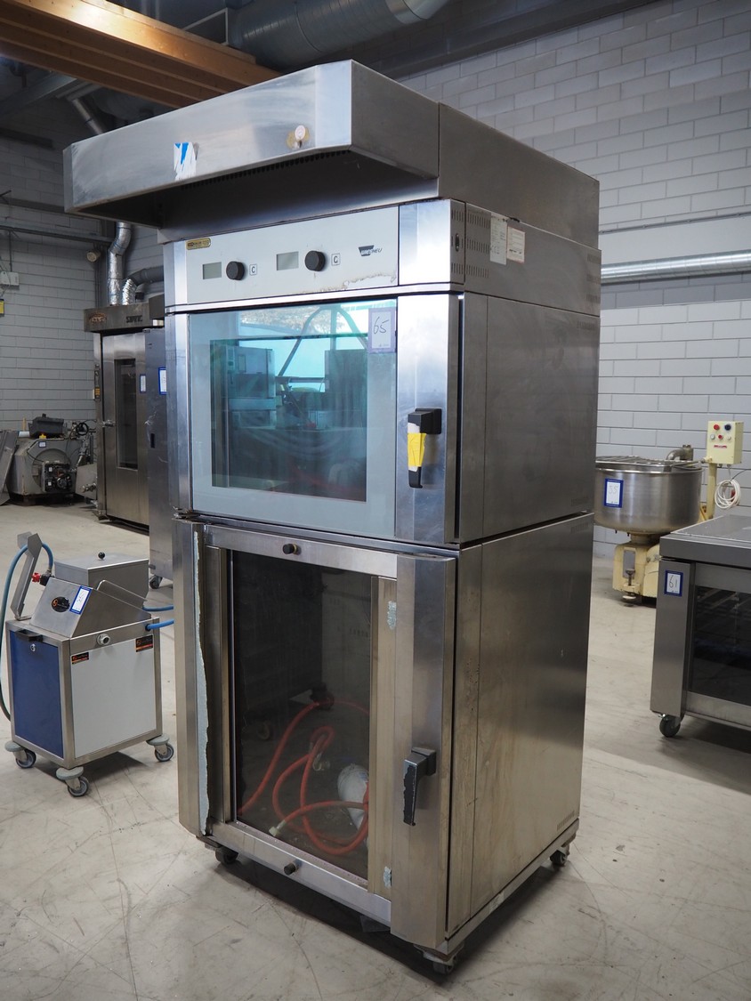 Wiesheu GmbH mobile oven, model: B08-B04-EM-VA, serial number: 10130773, year of construction: 05-2009, 400 V, 3 Ph, 50 Hz, 32 A, 20.8 kW, 5 and 10 floors, dimensions each floor: 610 mm x 400 mm, total dimensions: 1000 mm x 1100 mm x 2070 mm. Glass broken.