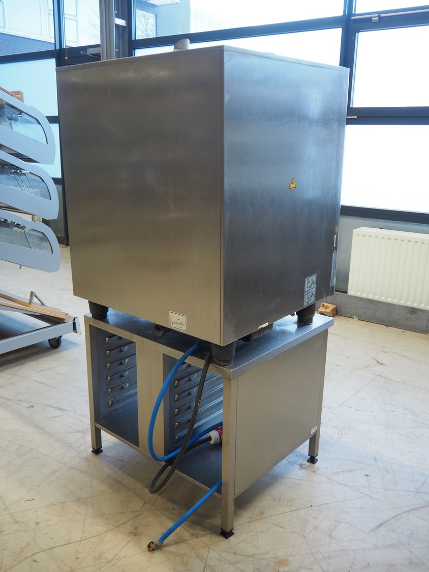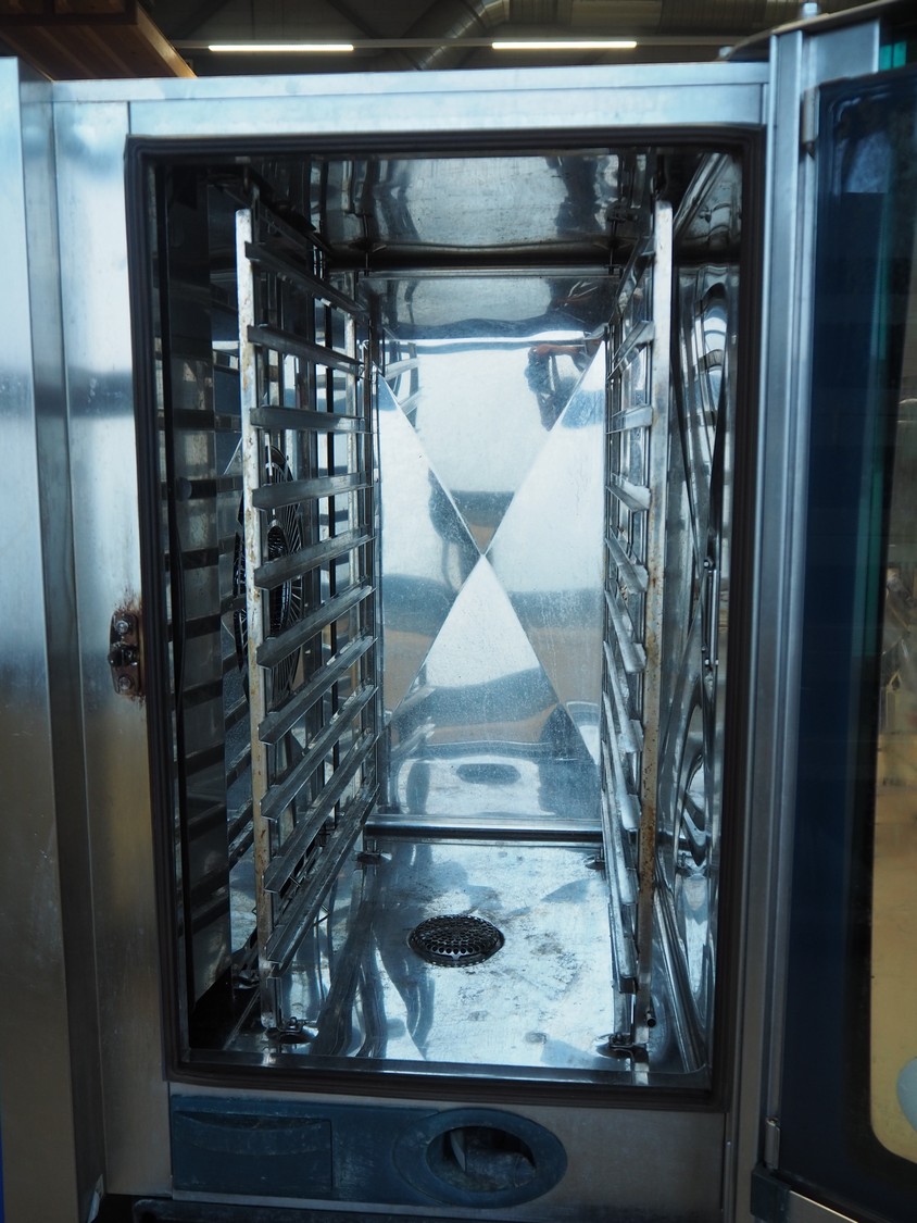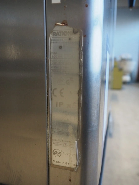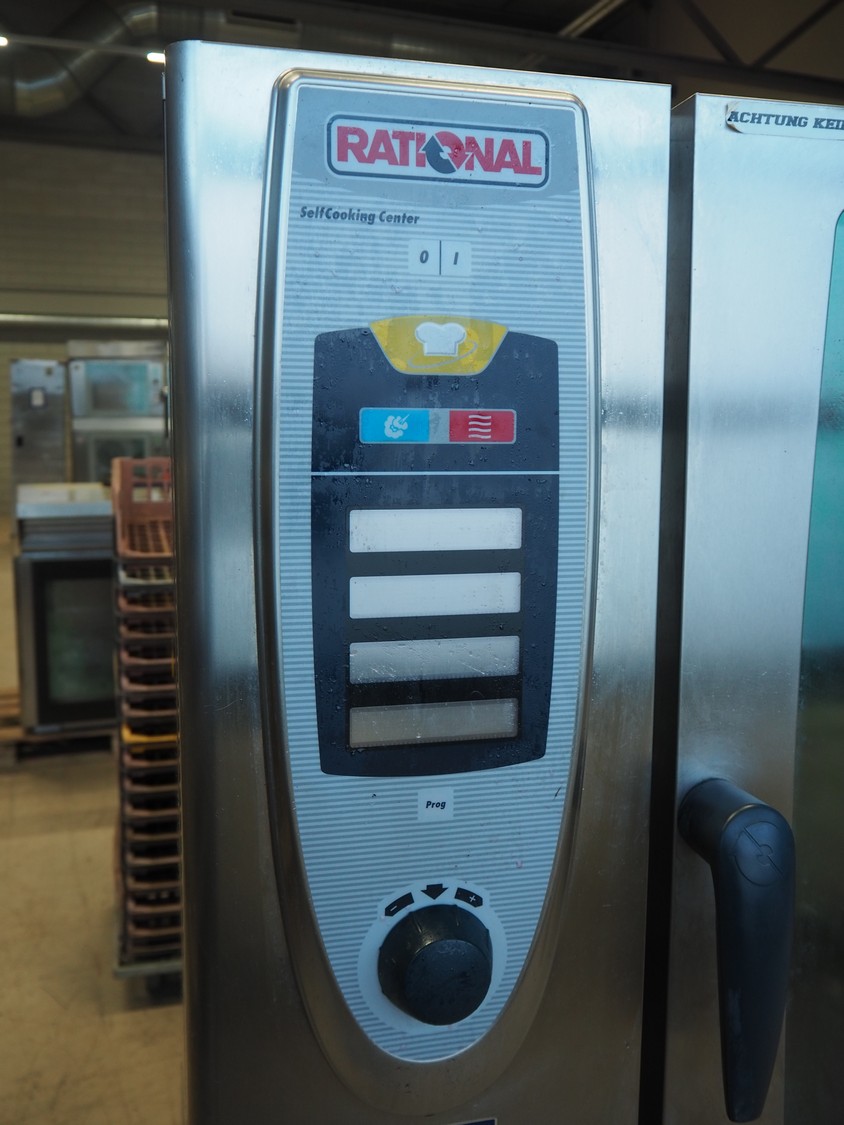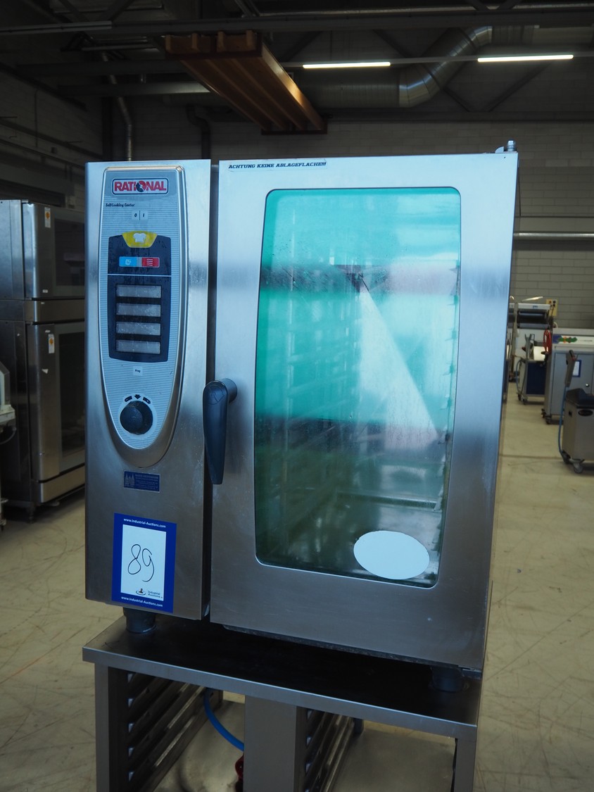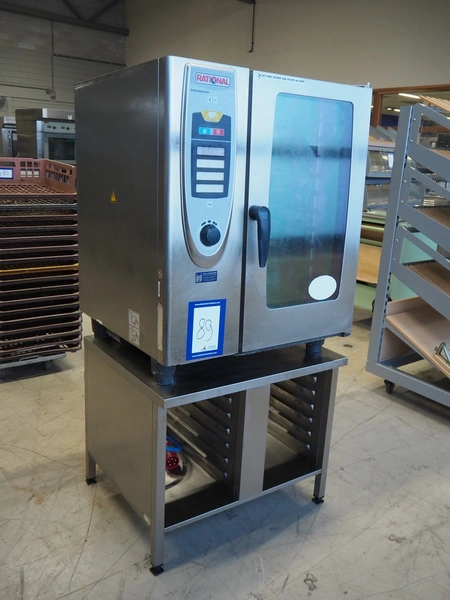 Rational combi steamer, model: SCC 101, year of construction: 2009, 400 V, 3 Ph, 50 Hz, 10 floors, dimensions floors: (10x) 530 mm x 330 mm, total dimensions: 900 mm x 850 mm x 1800 mm.