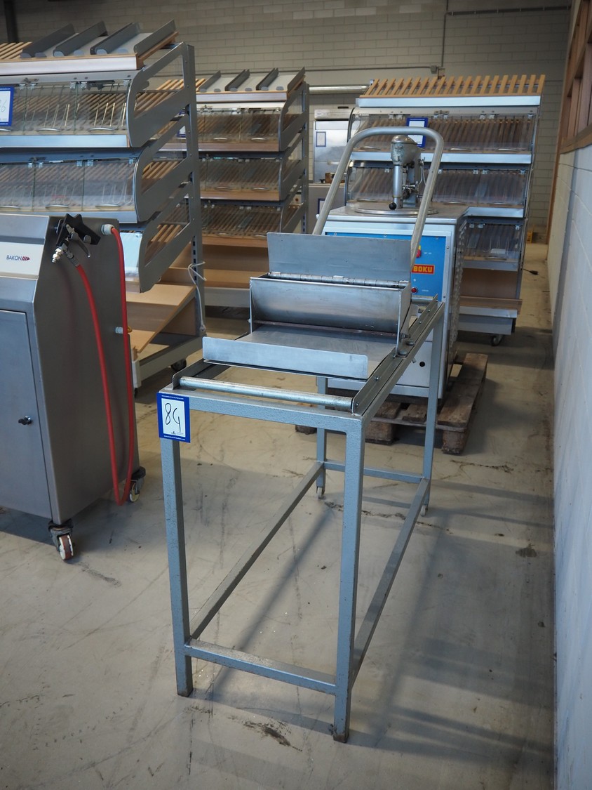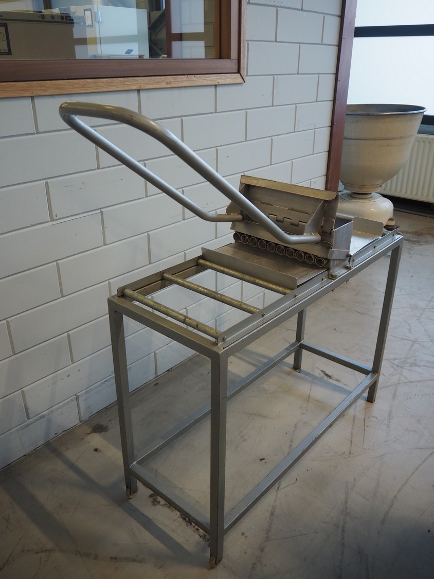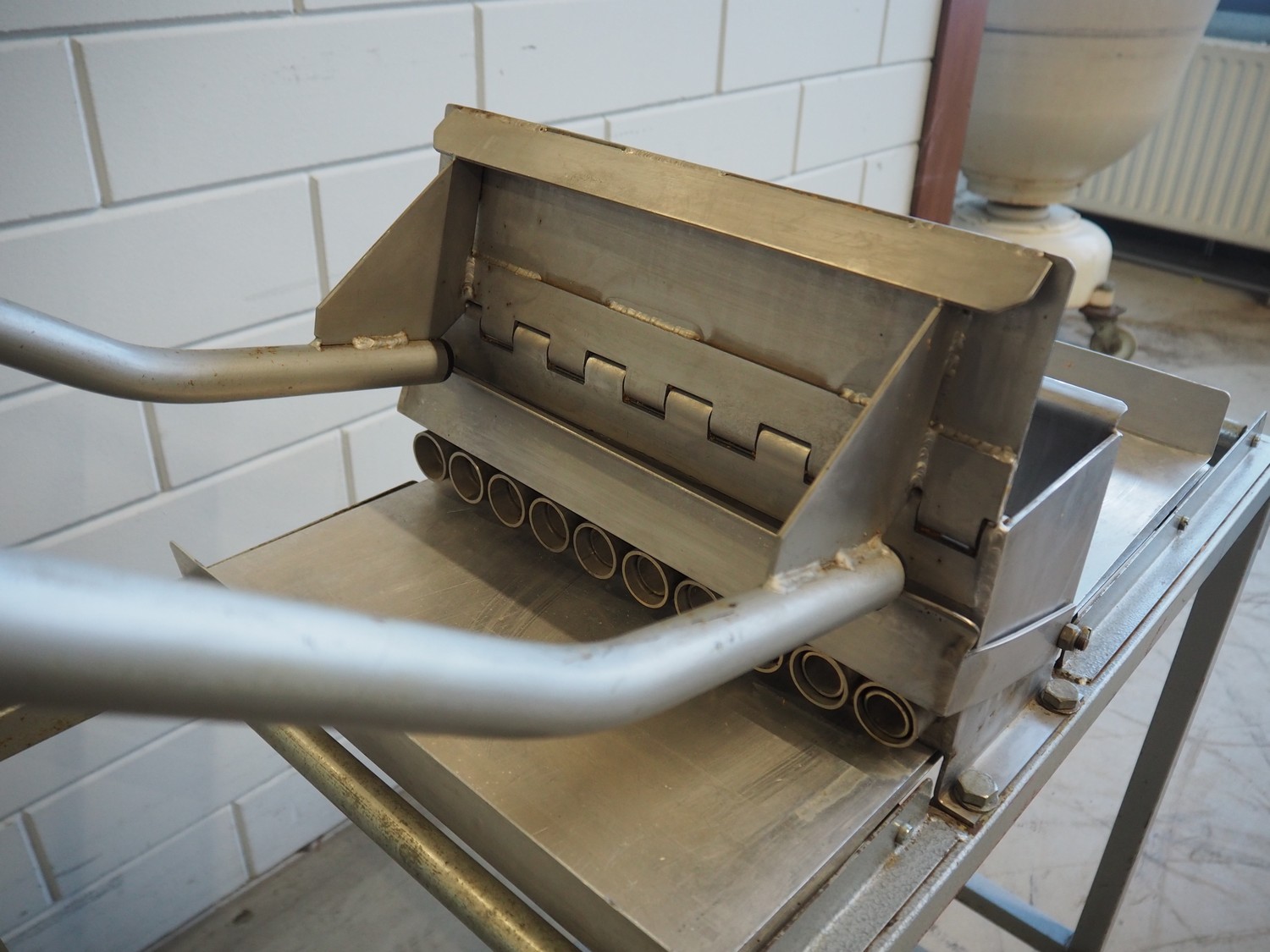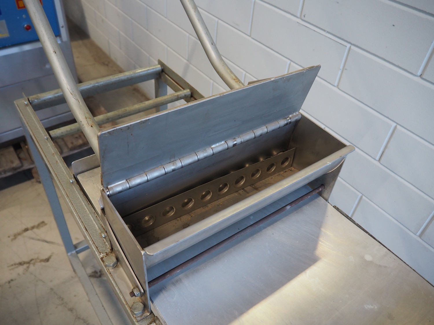 S/s almond press on mobile frame, diameter form: (10x) 20 mm, total dimensions: 1420 mm x 430 mm x 1000 mm.