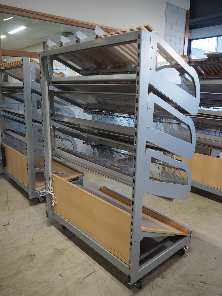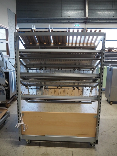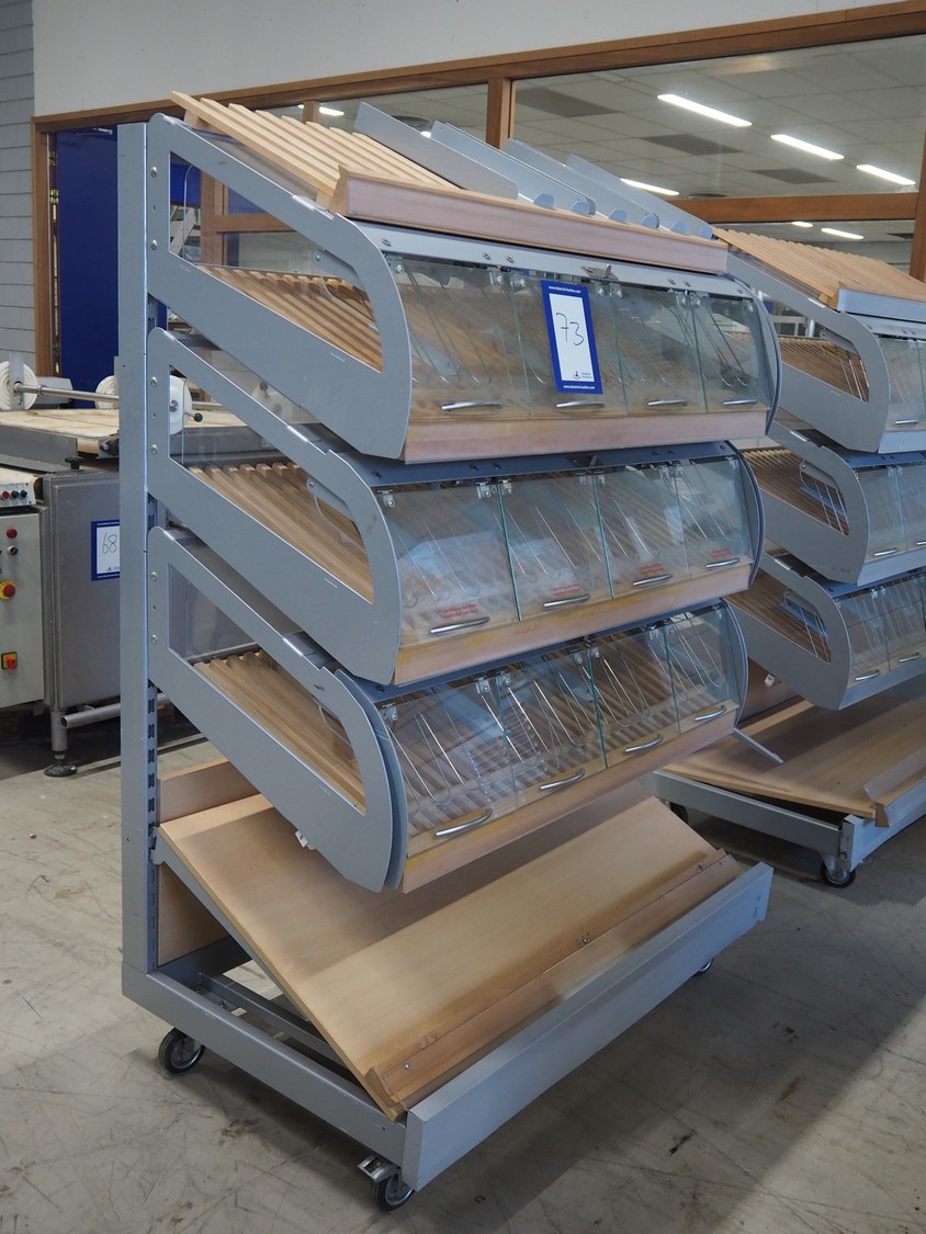 Mobile trolley for bread trays, dimensions: 1260 mm x 900 mm x 1820 mm.
