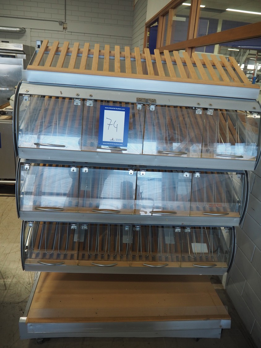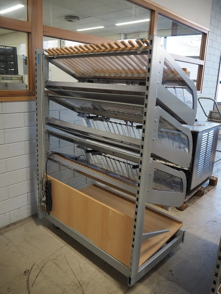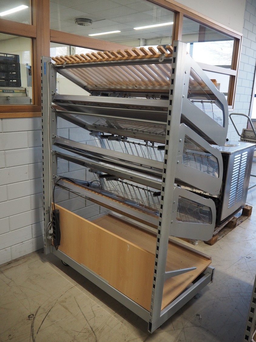 Mobile trolley for bread trays, dimensions: 1260 mm x 900 mm x 1820 mm.
