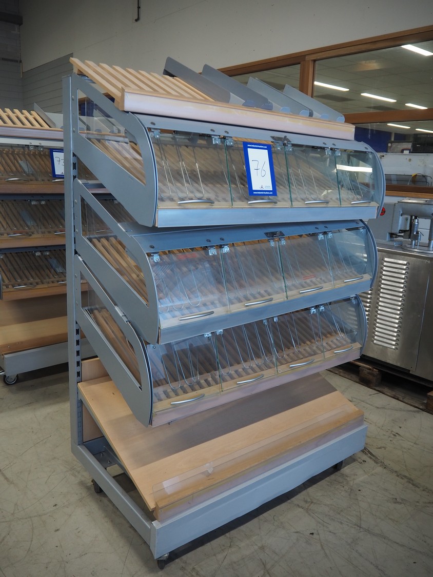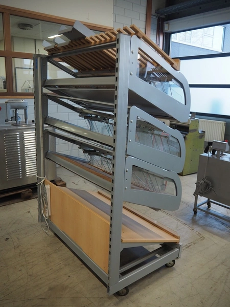 Mobile trolley for bread trays, dimensions: 1260 mm x 900 mm x 1820 mm.