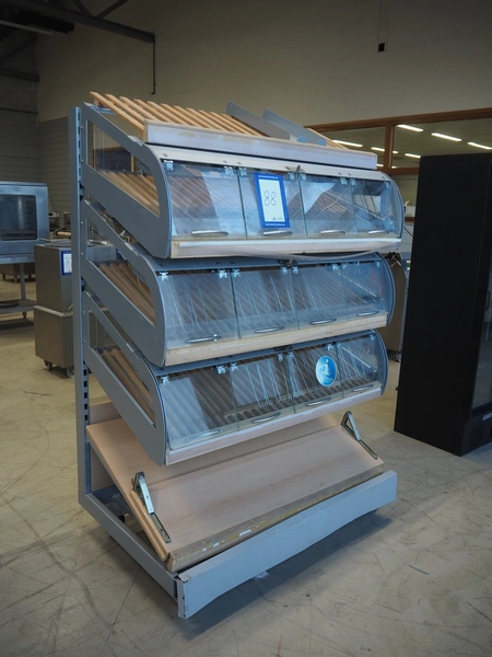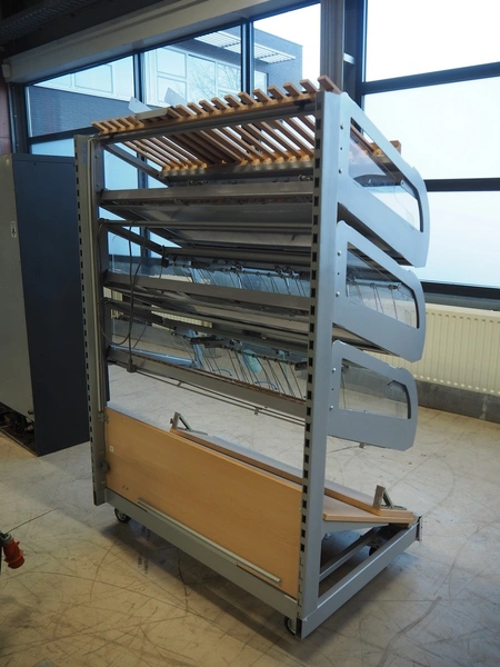 Mobile trolley for bread trays, dimensions: 1260 mm x 900 mm x 1820 mm. Without lights.