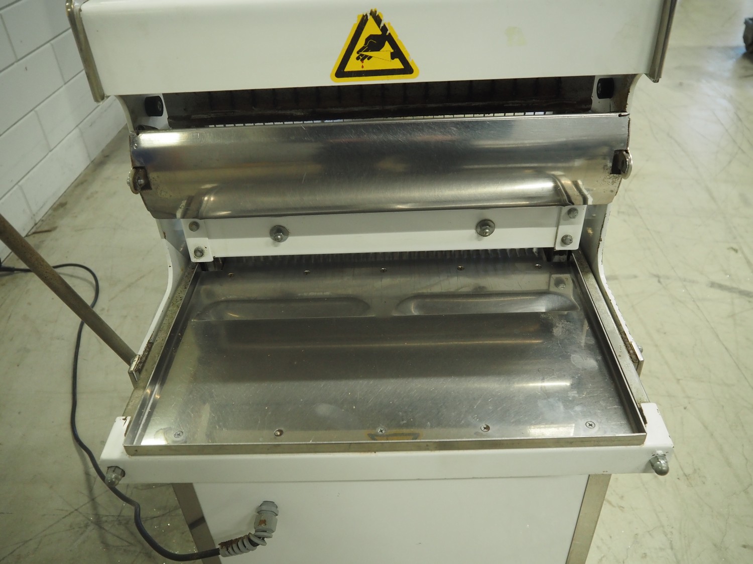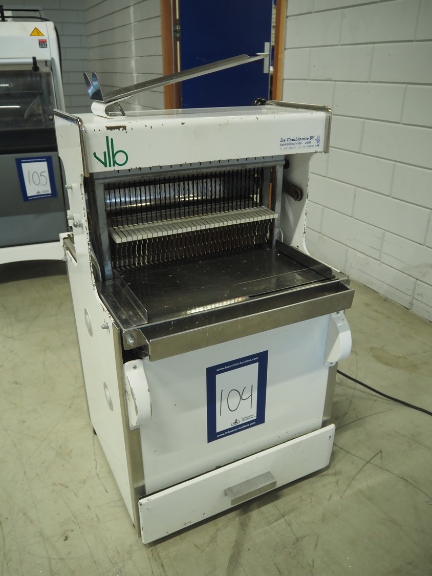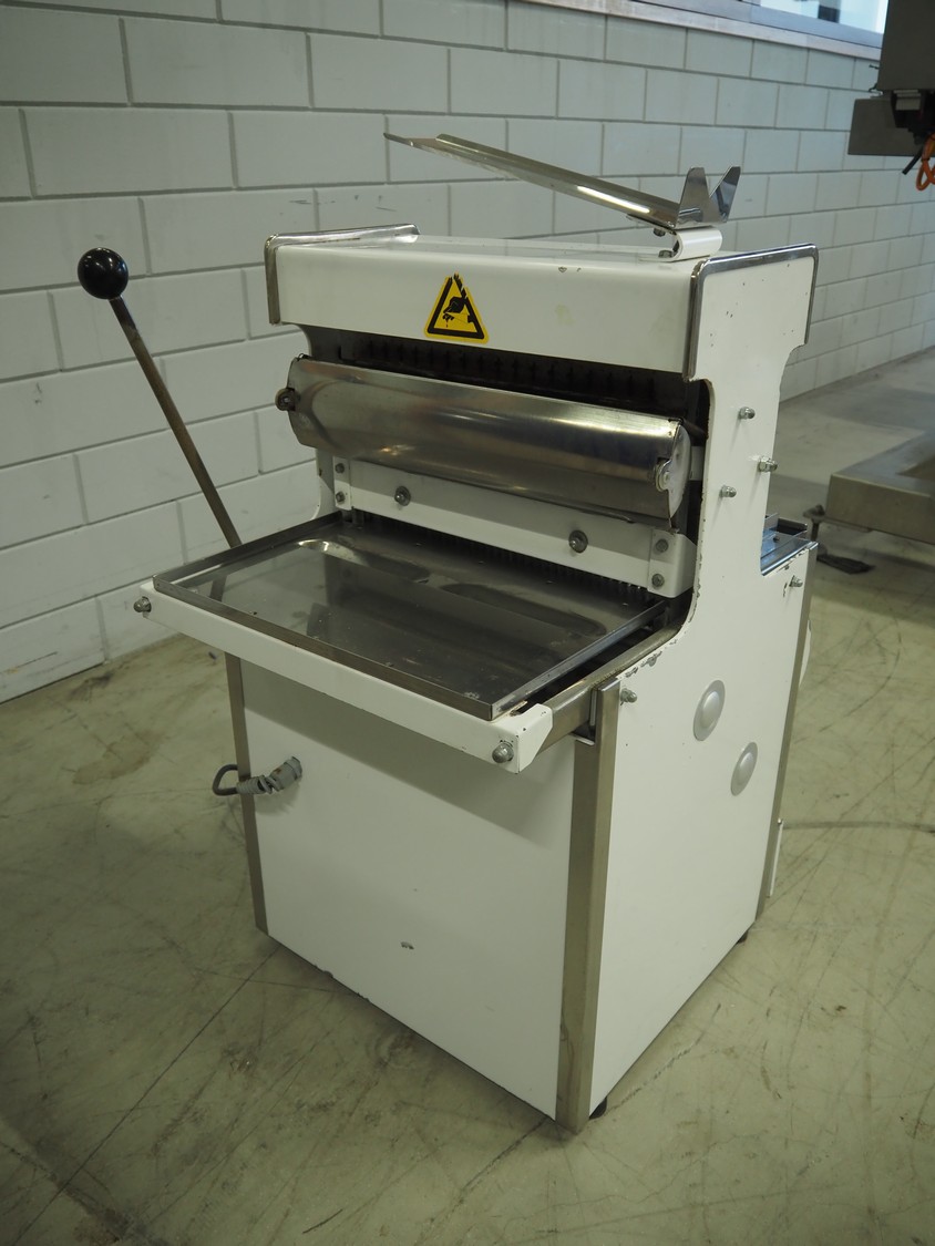 VLB bread slicer, 34 knives, distance between knives: 12 mm, total dimensions: 520 mm x 650 mm x 950 mm.