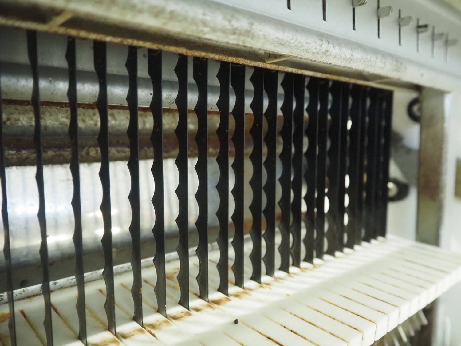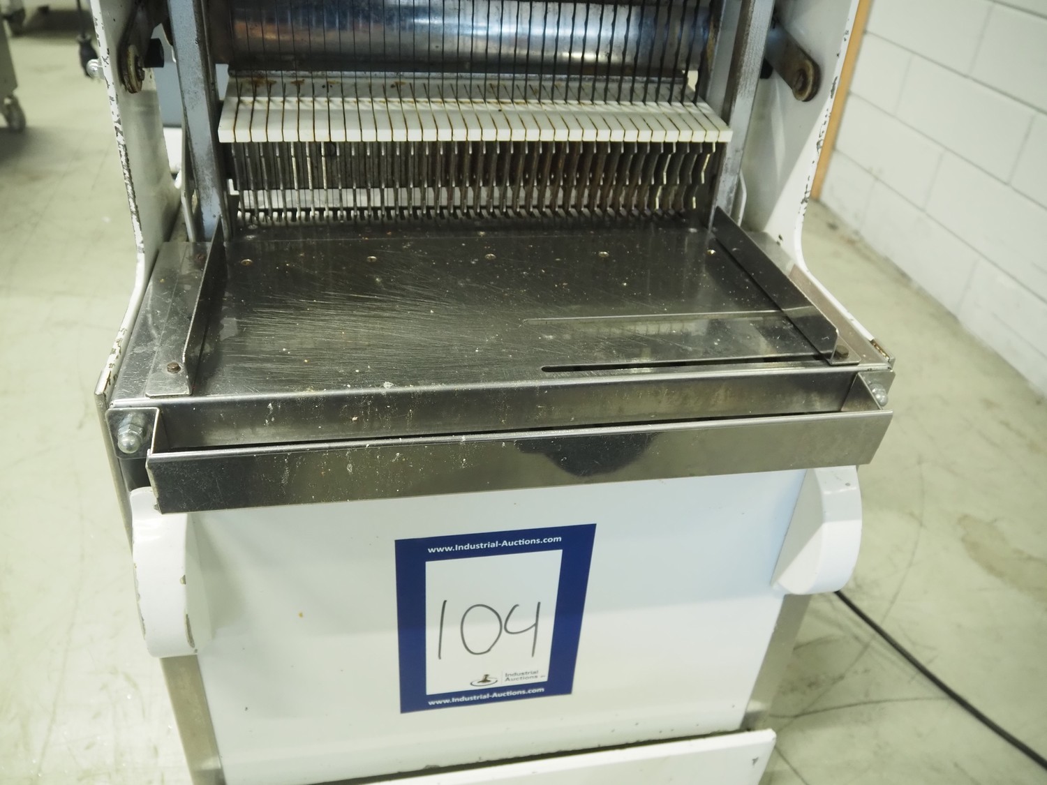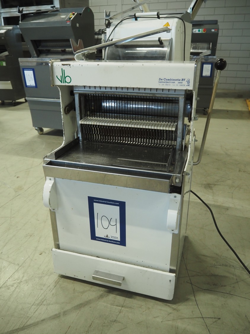 VLB bread slicer, 34 knives, distance between knives: 12 mm, total dimensions: 520 mm x 650 mm x 950 mm.