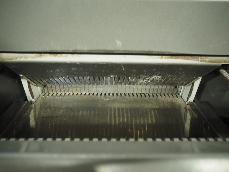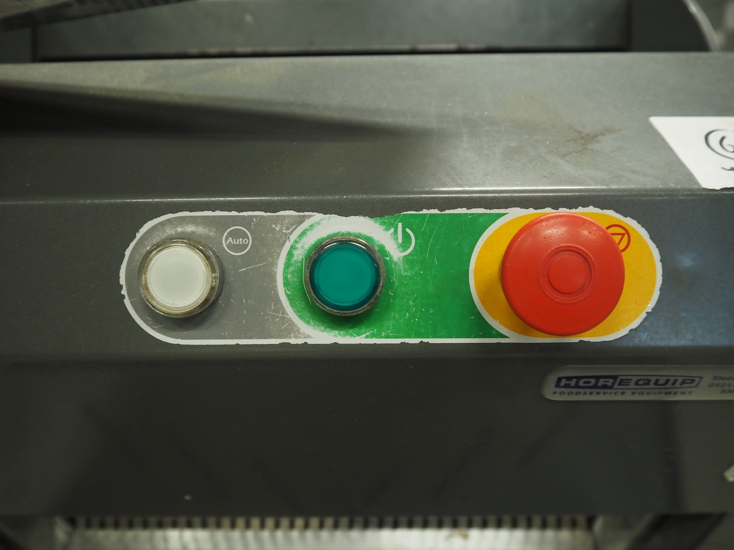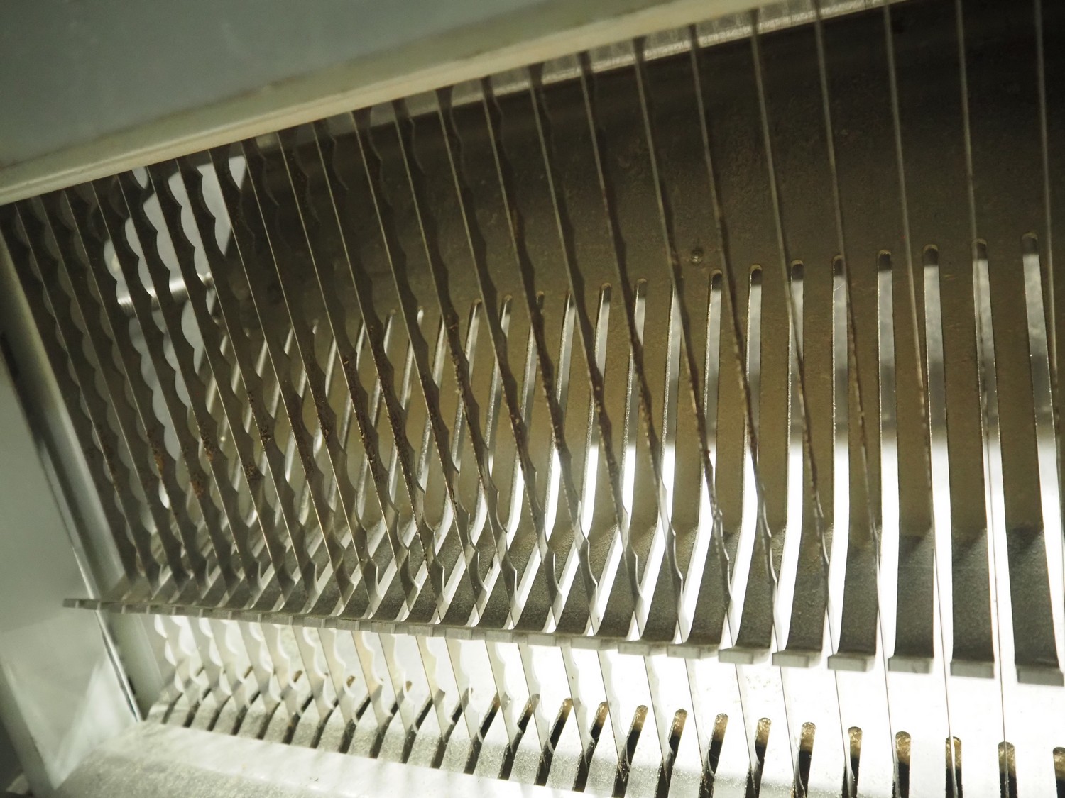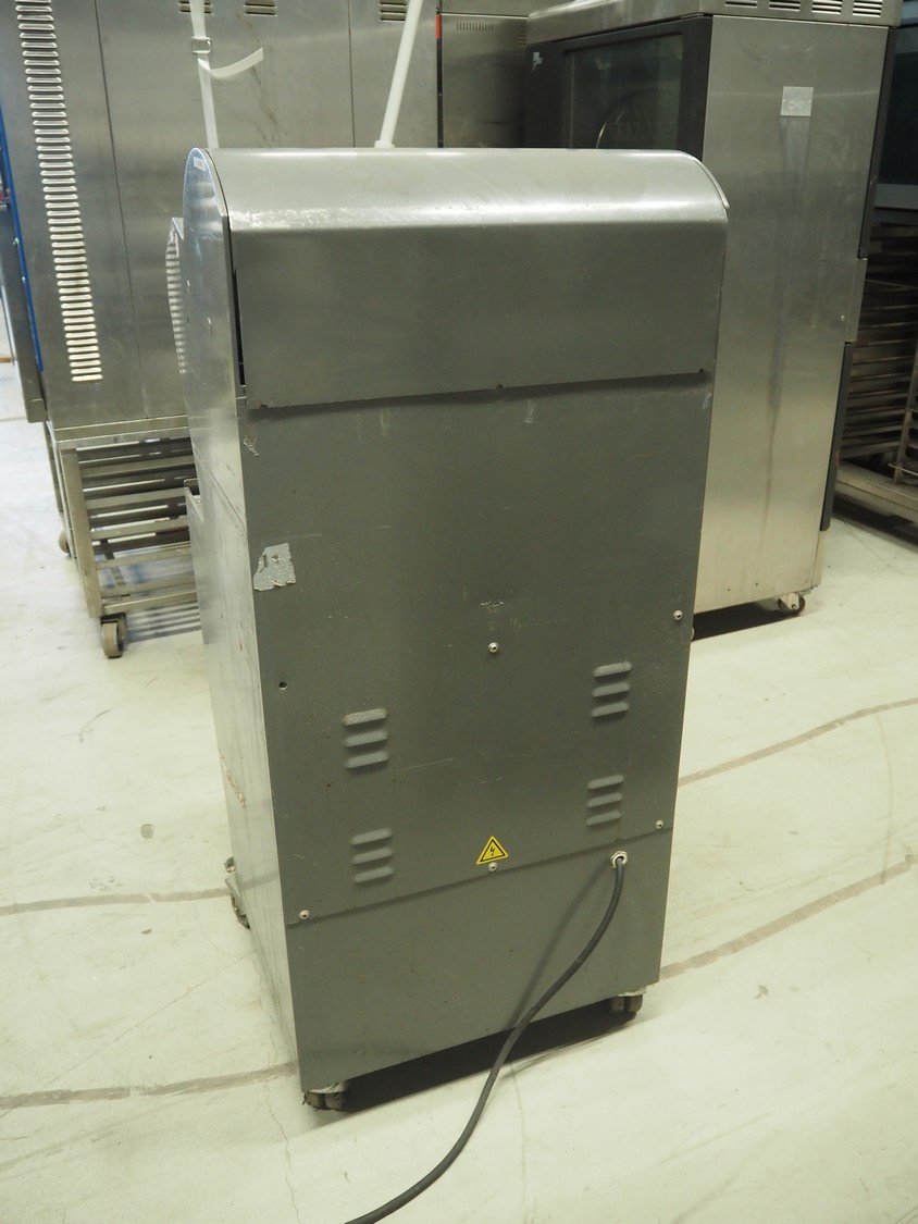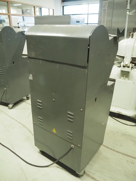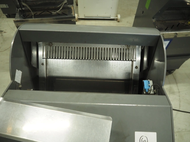 JAC mobile automatic bread slicer, model: ECH/450/99, machine number: 09/5926/06, 230 V, 1 Ph, 50 Hz, 4.7 A, 0.49 kW, 180 kg, 34 knives, distance between knives: 12 mm, total dimensions: 590 mm x 610 mm x 1350 mm.