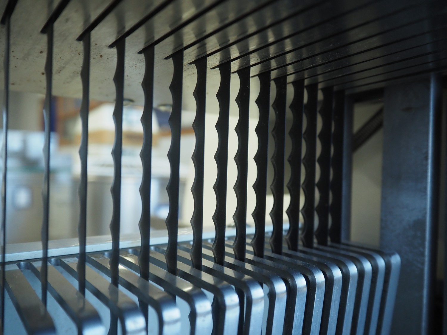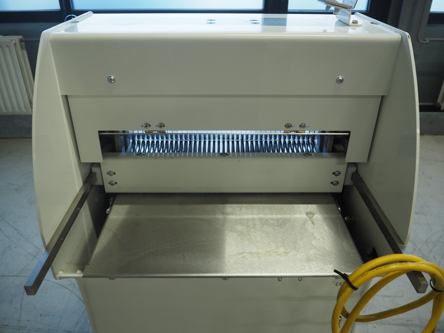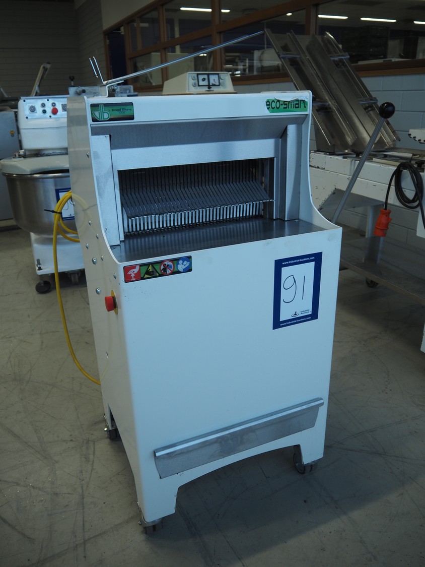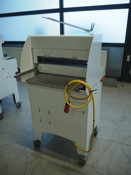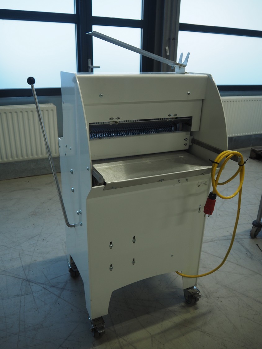 VLB mobile bread slicer, 230 V, 38 knives, distance between knives: 11 mm, total dimensions: 700 mm x 700 mm x 1350 mm.