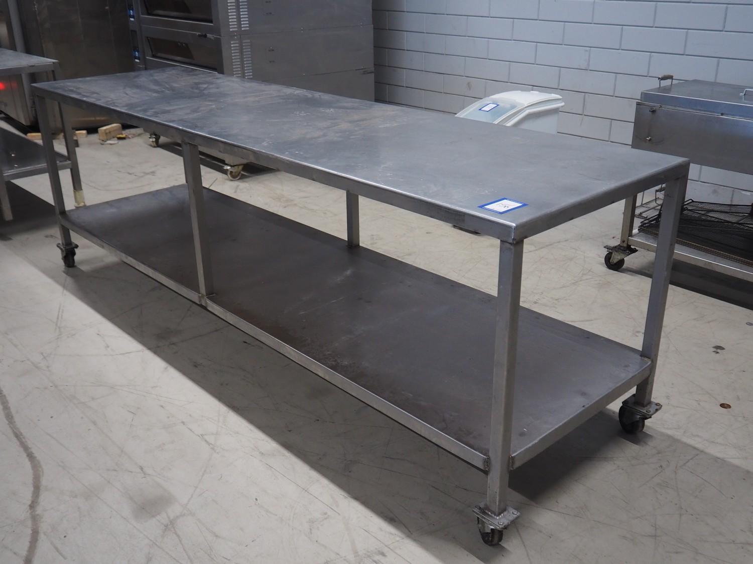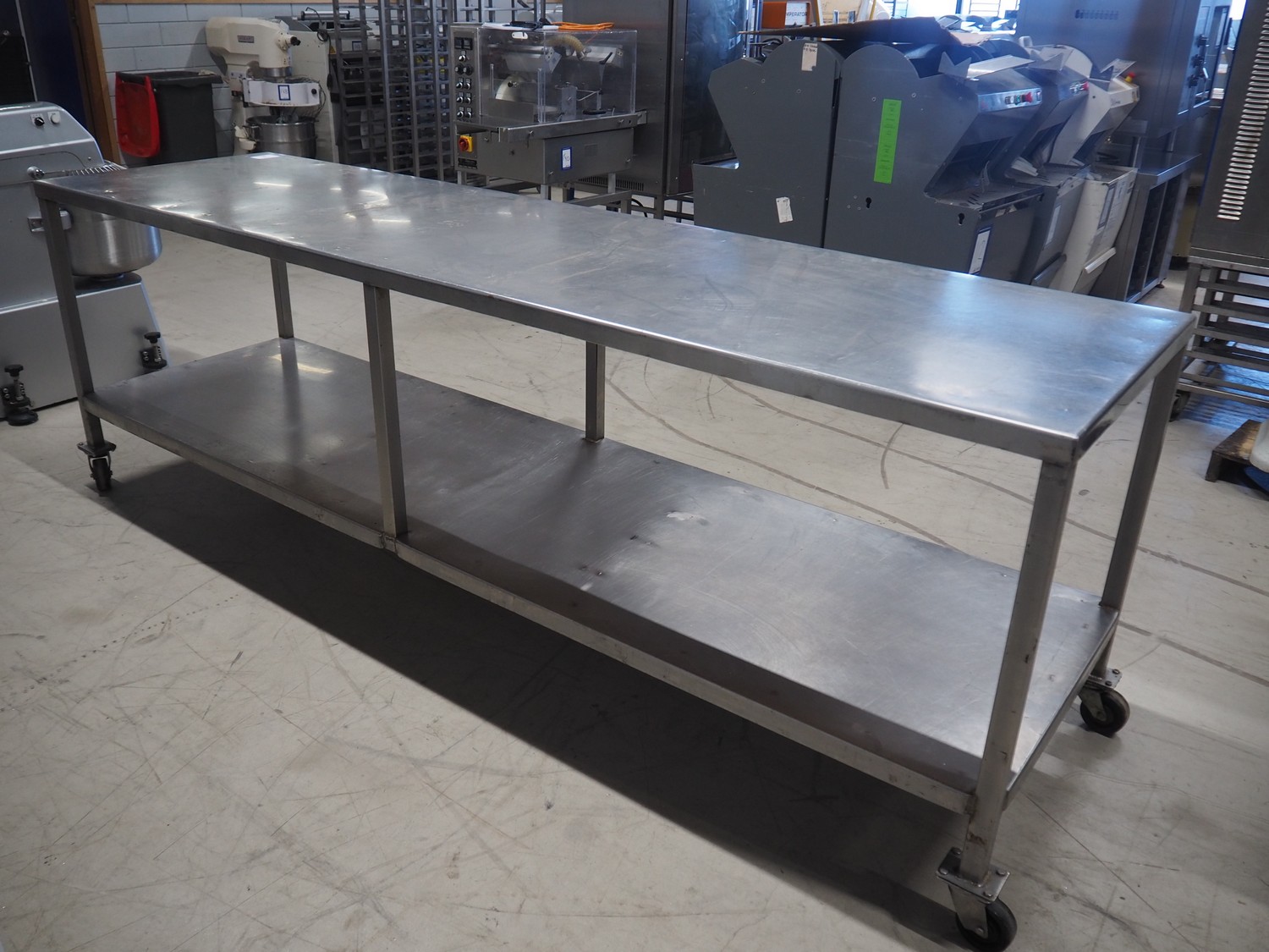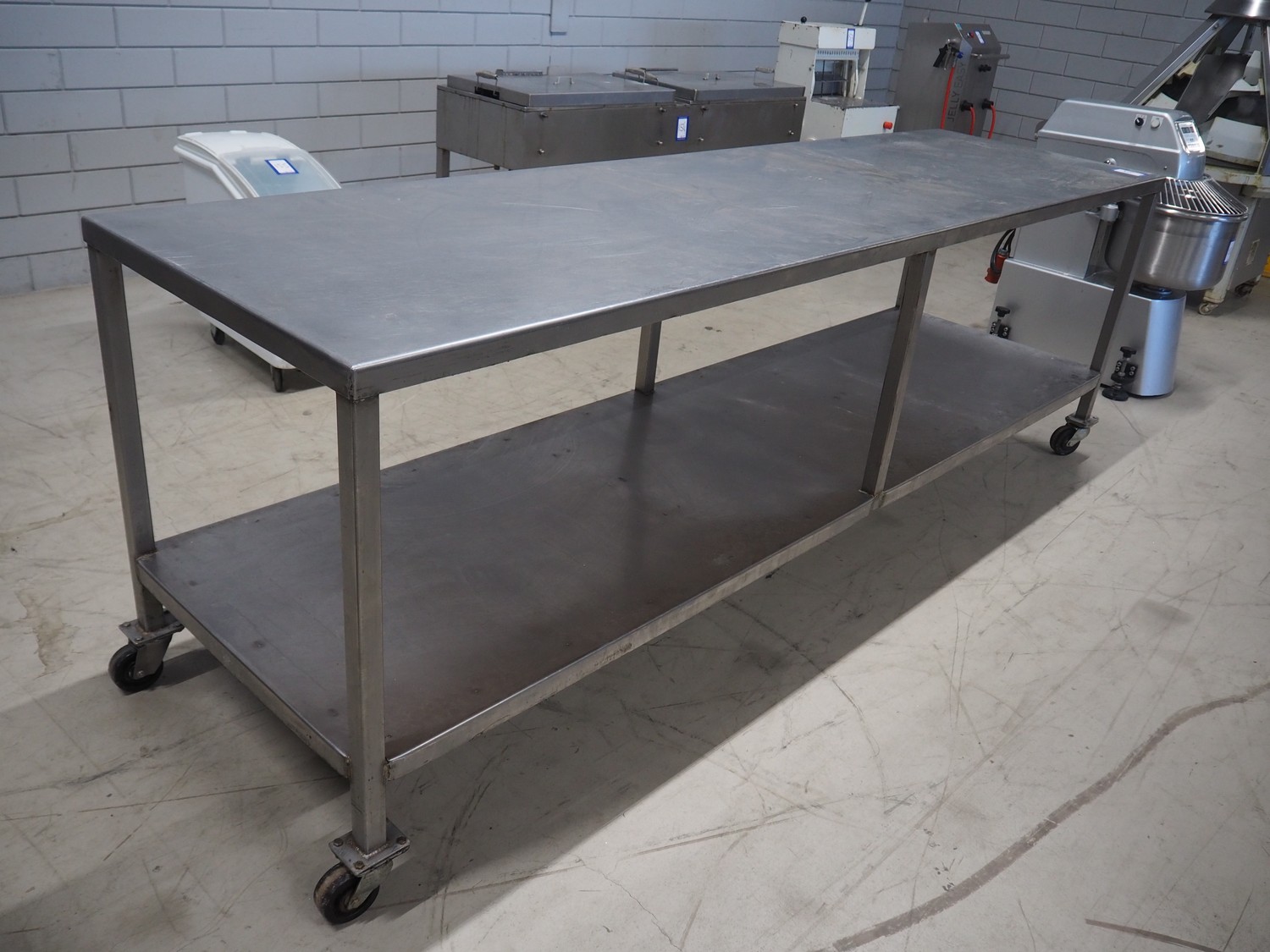 S/s mobile table, dimensions: 2900 mm x 800 mm x 950 mm.