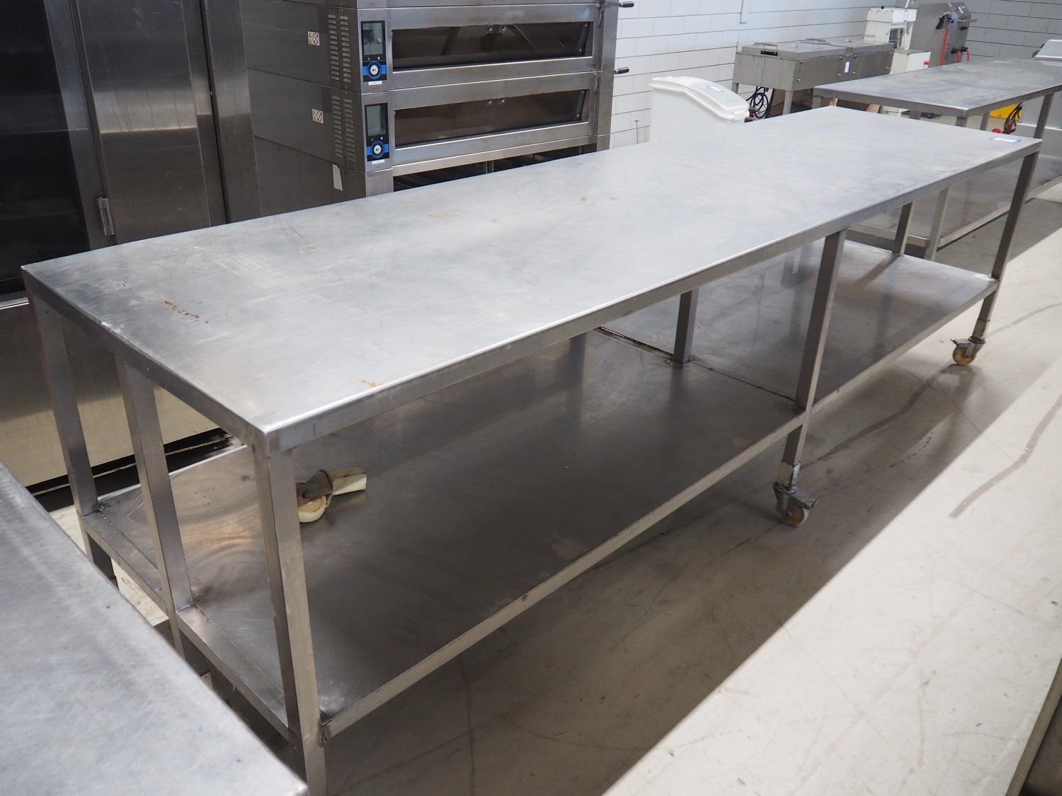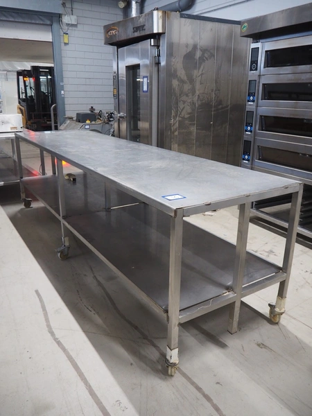 S/s mobile table, dimensions: 3400 mm x 900 mm x 980 mm.