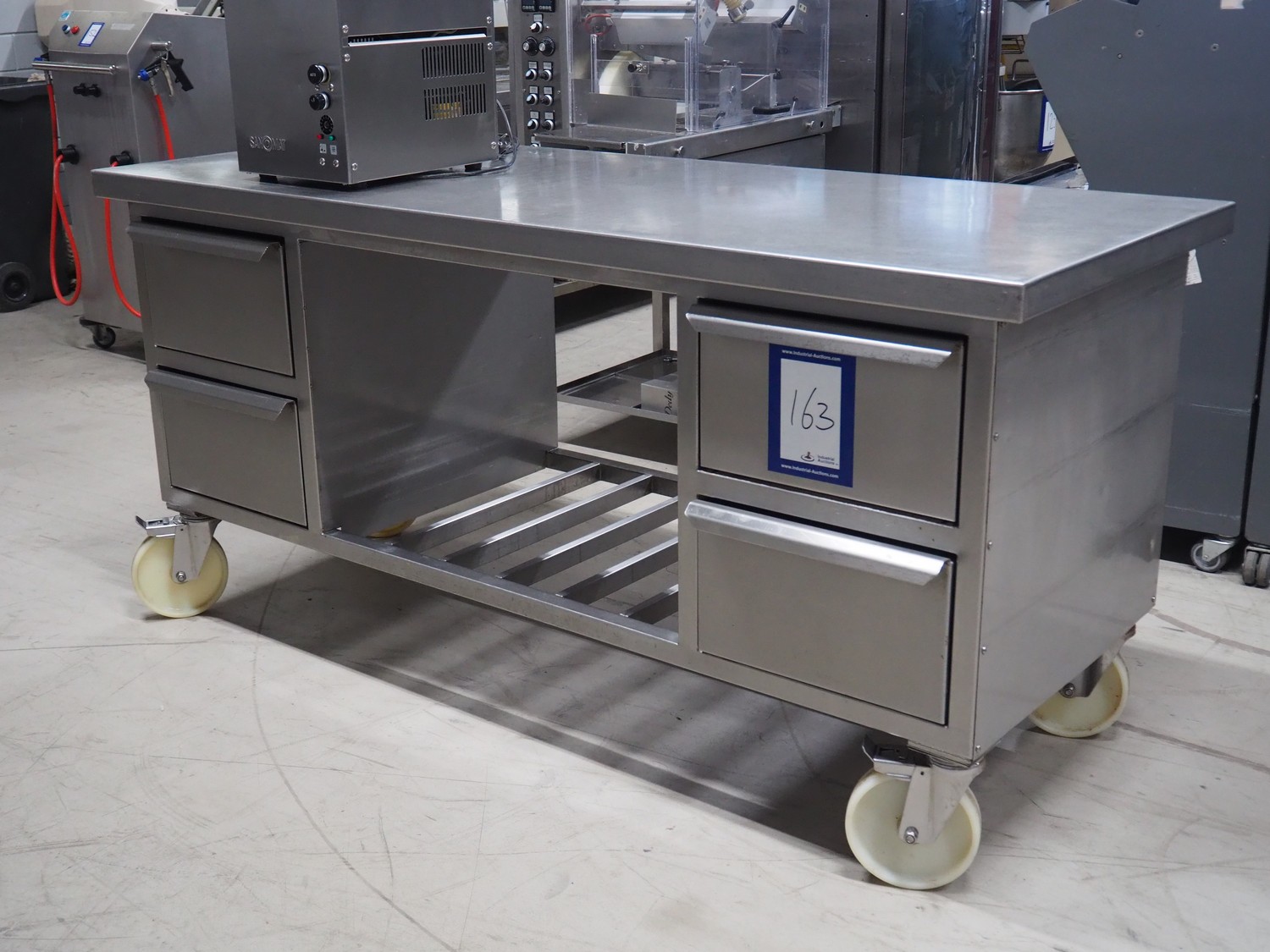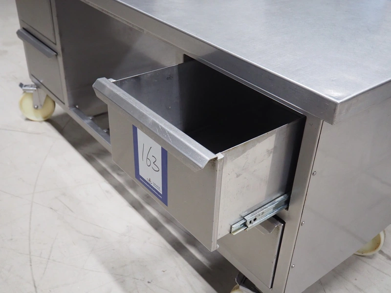 S/s mobile working desk, dimensions: 2000 mm x 800 mm x 970 mm.