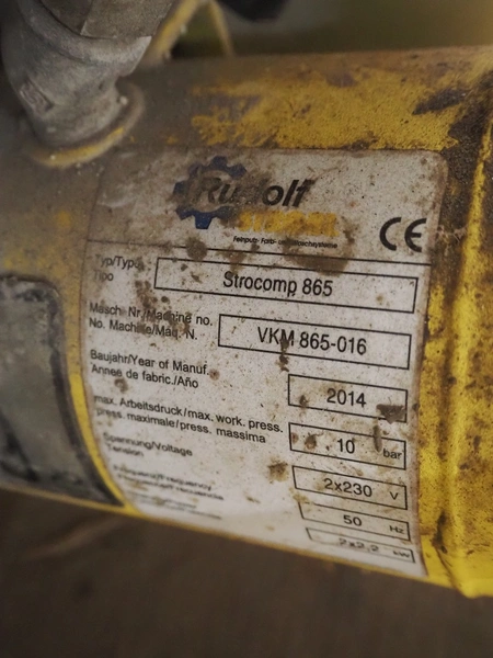 Rudolf mobile compressor, type: Strocomp 865, machine number: VKM-865-016, year of construction: 2014, 230 V, 2 Ph, 50 Hz, 2.2 kW, dimensions: 920 mm x 550 mm x 640 mm.