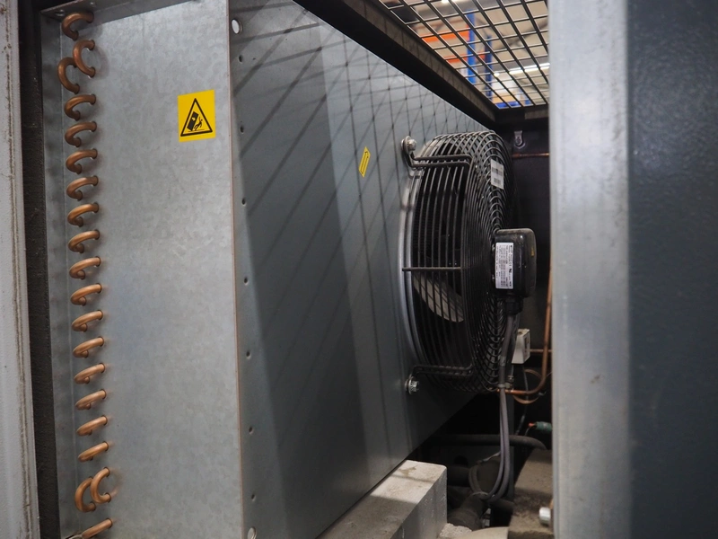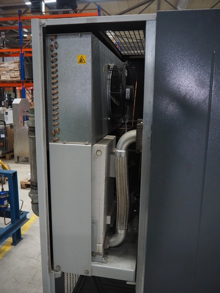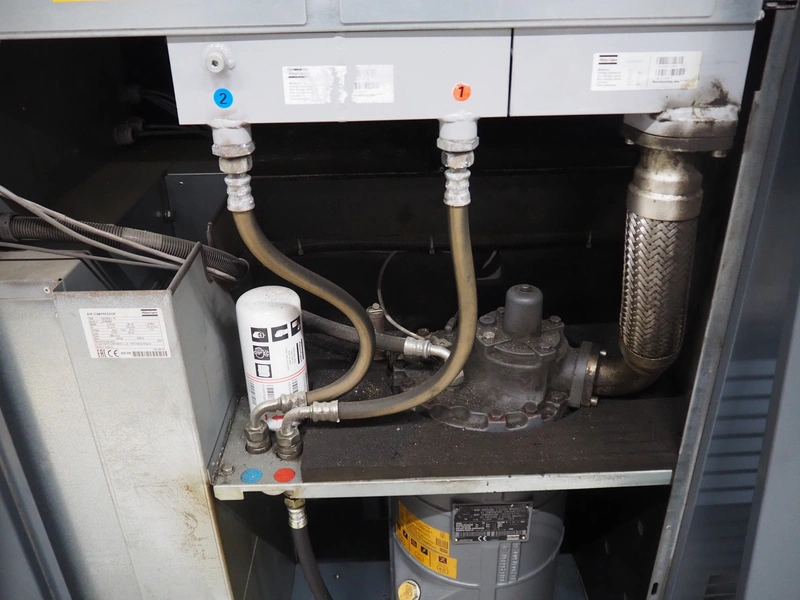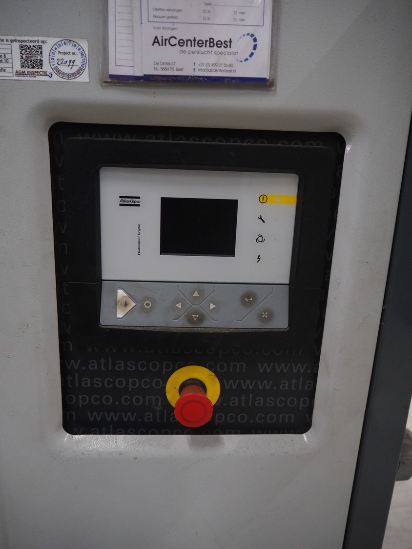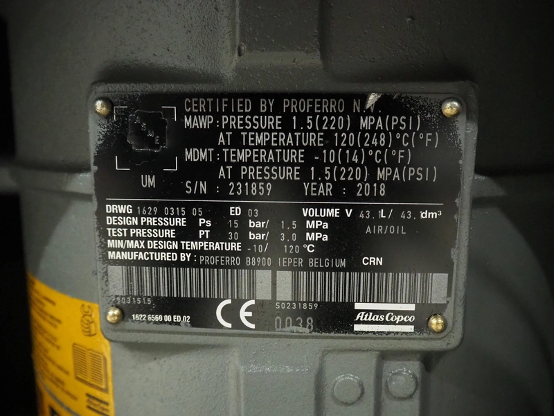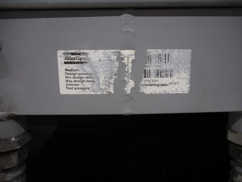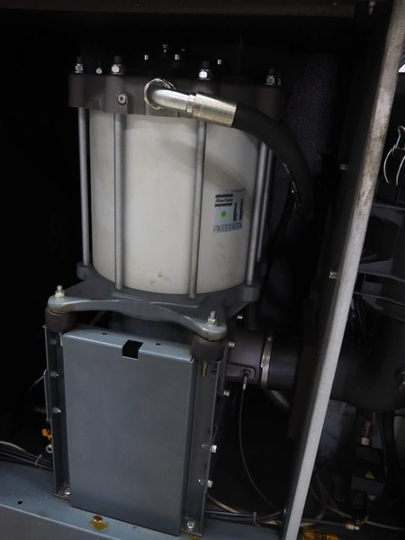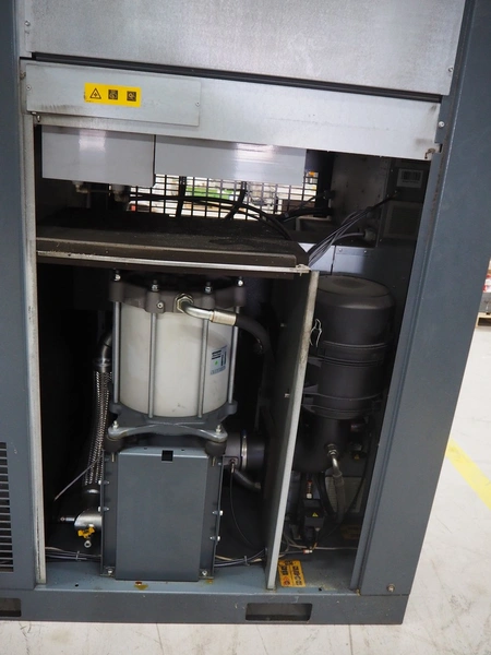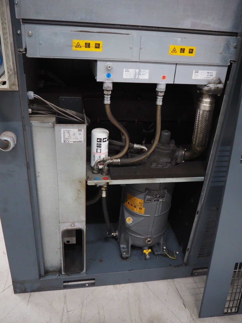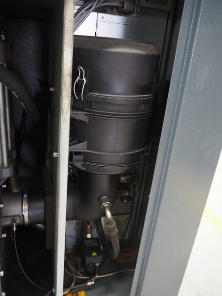 Atlas Copco air compressor, type: GA73VSD + FF, serial number: API862991, year of construction: 2018, 400 V, 3 Ph, 50 Hz, 37 kW, 3800 rates per minute, capacity: 7.91 m³ per minute, weight: 1043 kg, total dimensions: 1800 mm x 1100 mm x 1970 mm.