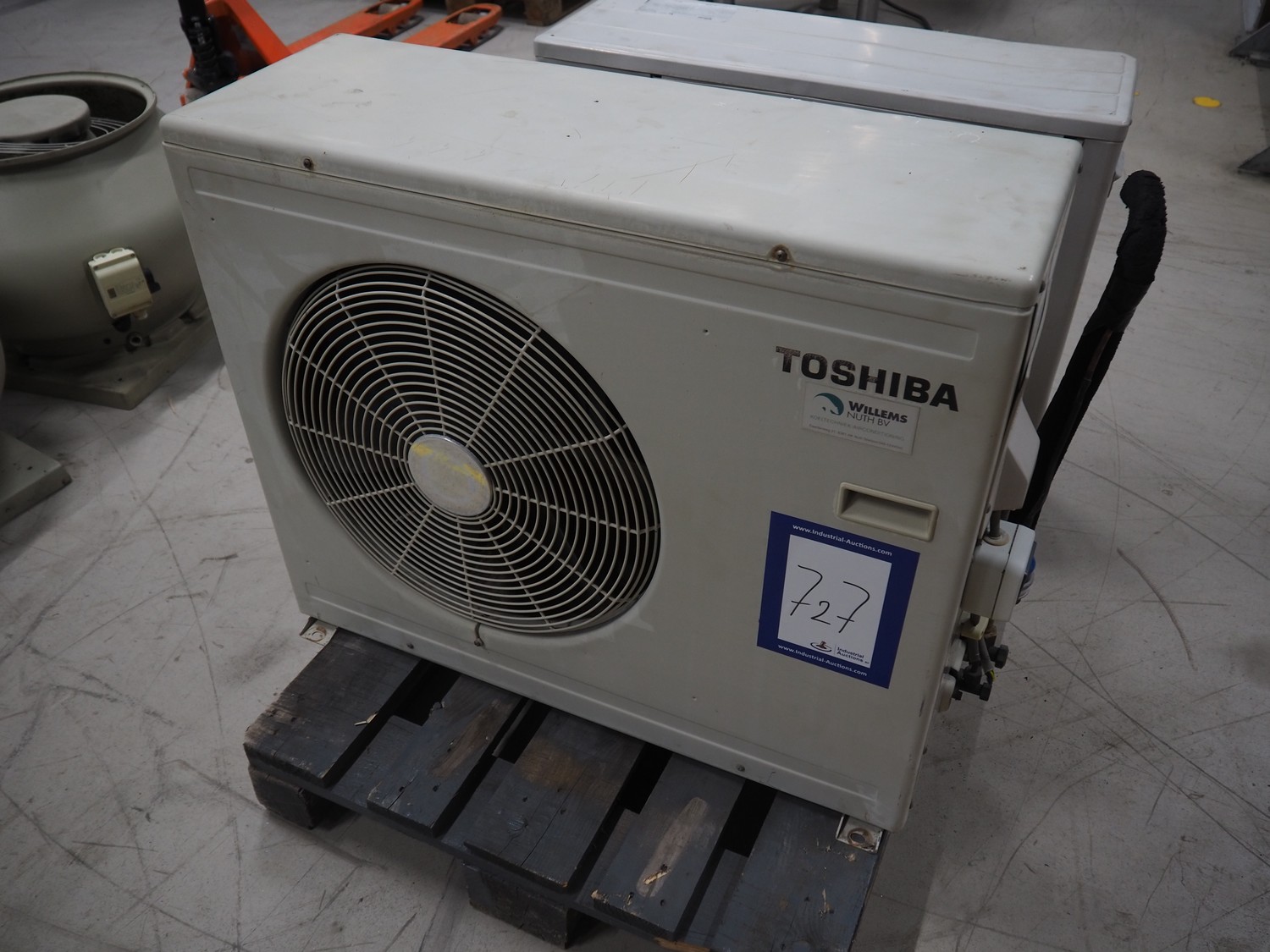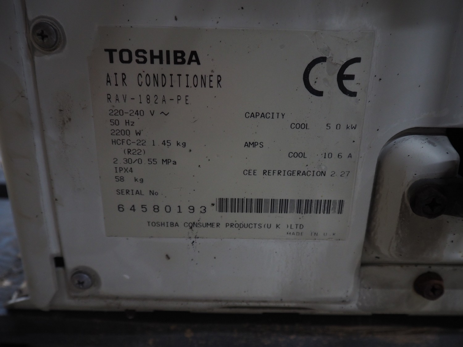 Toshiba outside unit for air conditioning, model: RAV-182A-PE, serial number: 64580193, 220/240 V, 50 Hz, 2200 W, weight: 58 kg, dimensions: 930 mm x 320 mm x 750 mm.