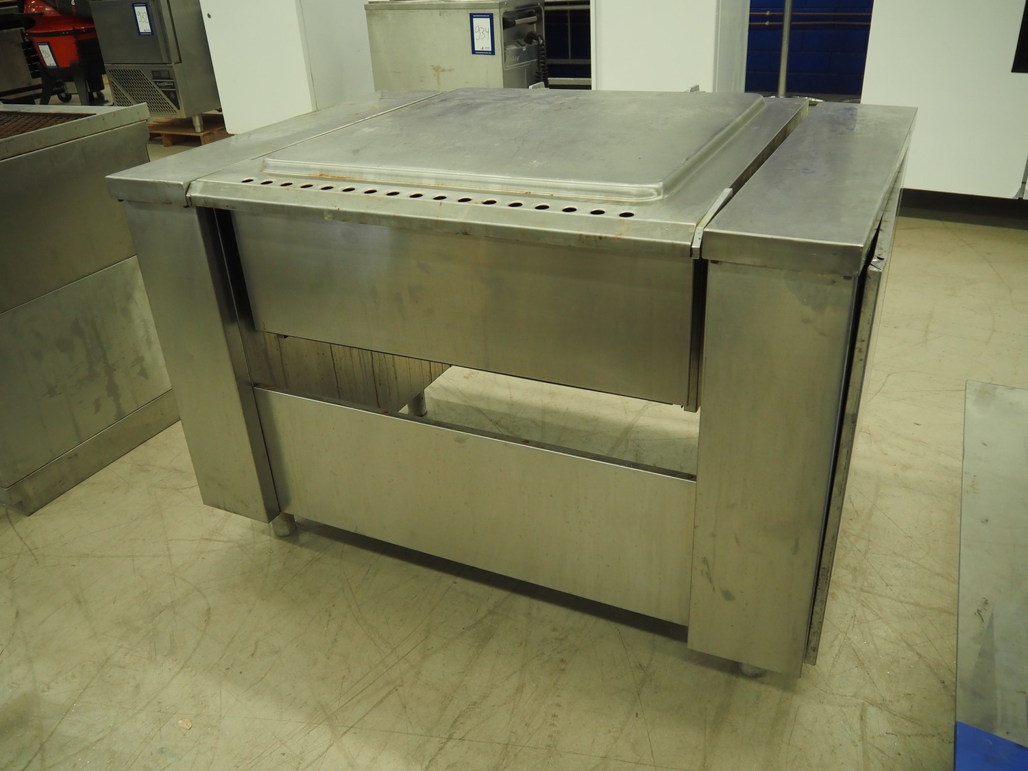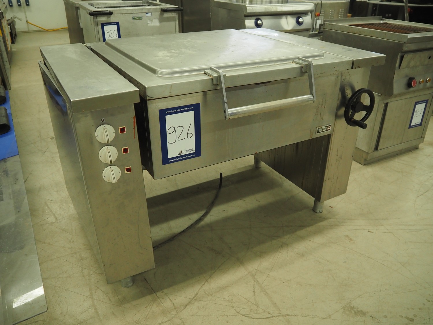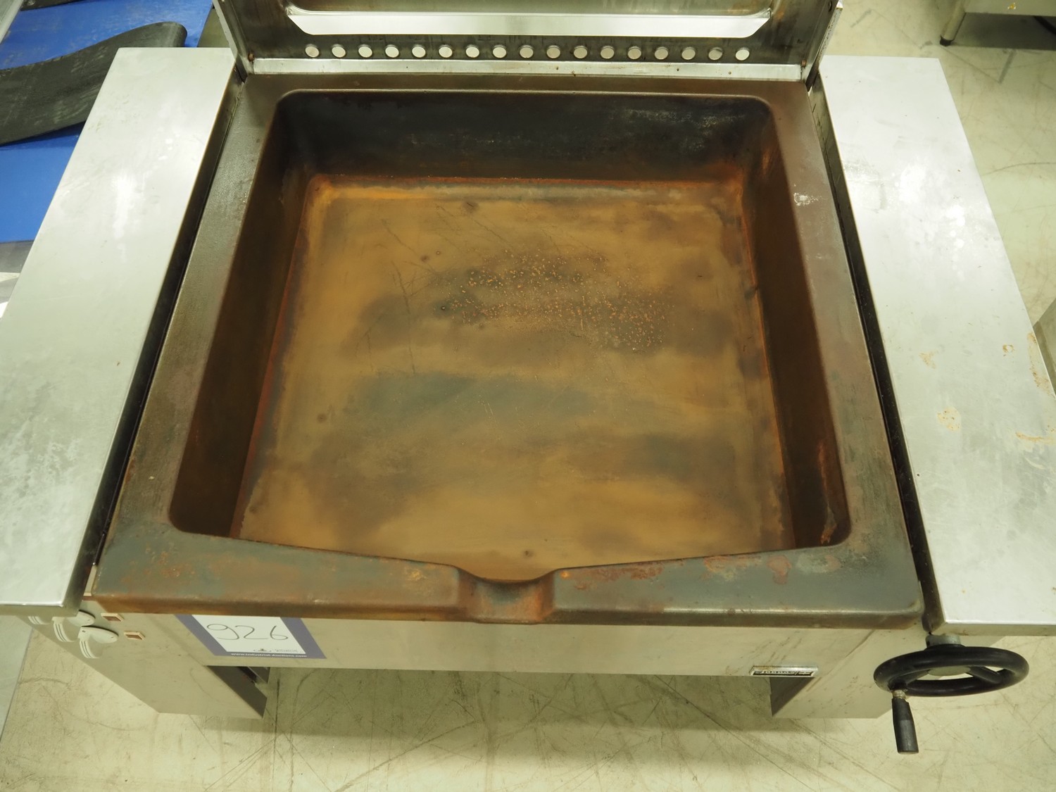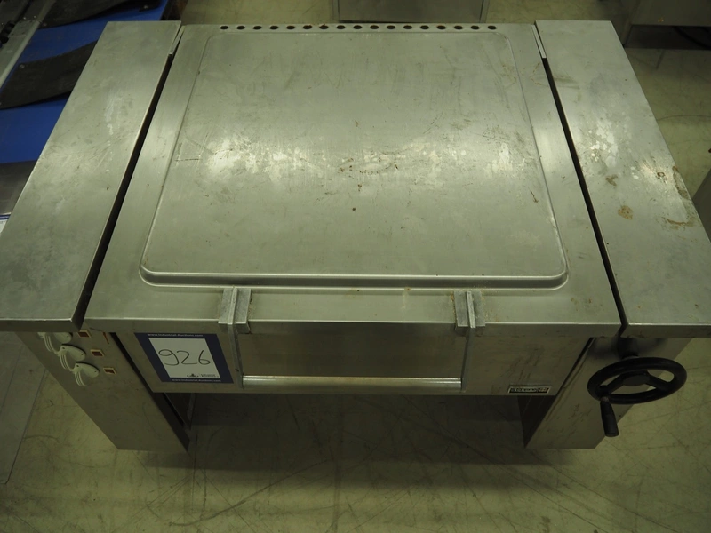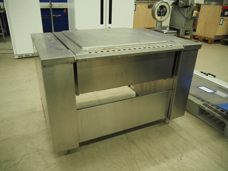 Boppas tiltable braising pan, inside dimensions: 720 mm x 700 mm x 170 mm, total dimensions: 1270 mm x 950 mm x 900 mm.