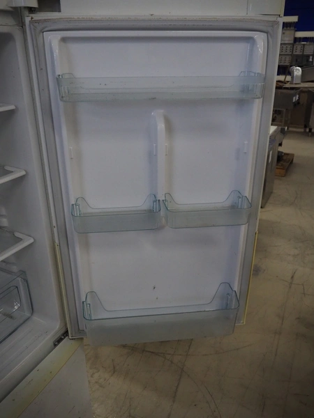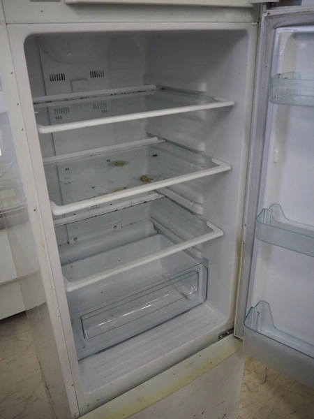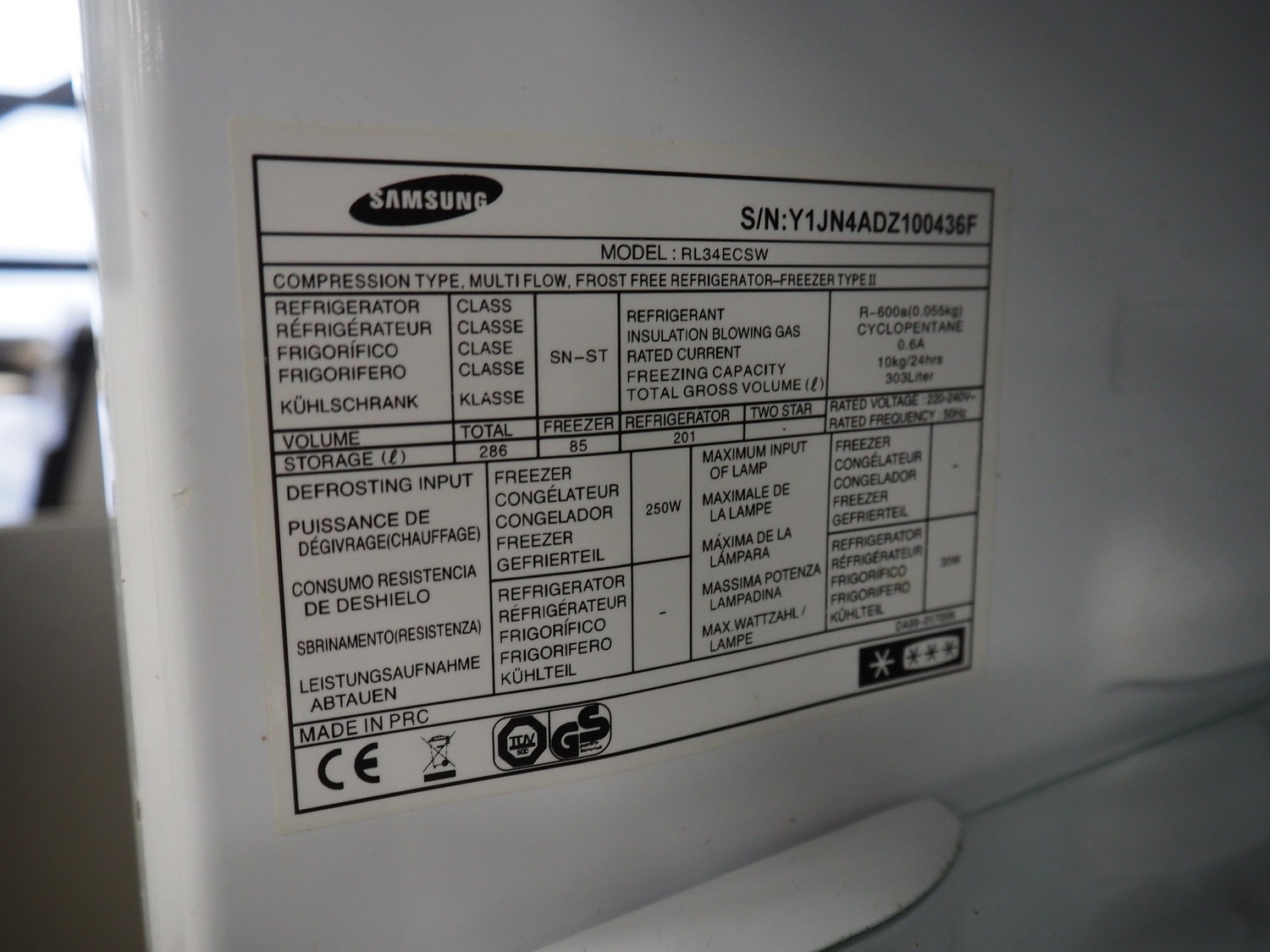 Samsung refrigerator with freezer, model: RL34ECSW, serial number: Y1JN4ADZ100436F, 220-240 V, 50 Hz, dimensions: 600 mm x 685 mm x 1775 mm. Display and frost free are not working, drawers are broken.