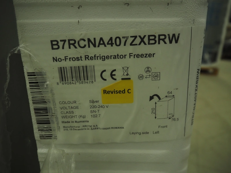 Beko No-Frost refrigerator/freezer, type: B7RCNA407ZXBRW, 220-240 V, dimensions: 600 mm x 750 mm x 2100 mm.