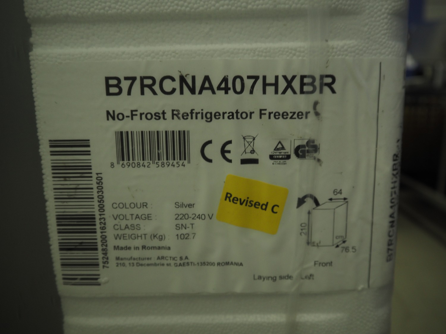 Beko No-Frost refrigerator/freezer, type: B7RCNA407HXBR, 220-240 V, dimensions: 600 mm x 750 mm x 2100 mm.