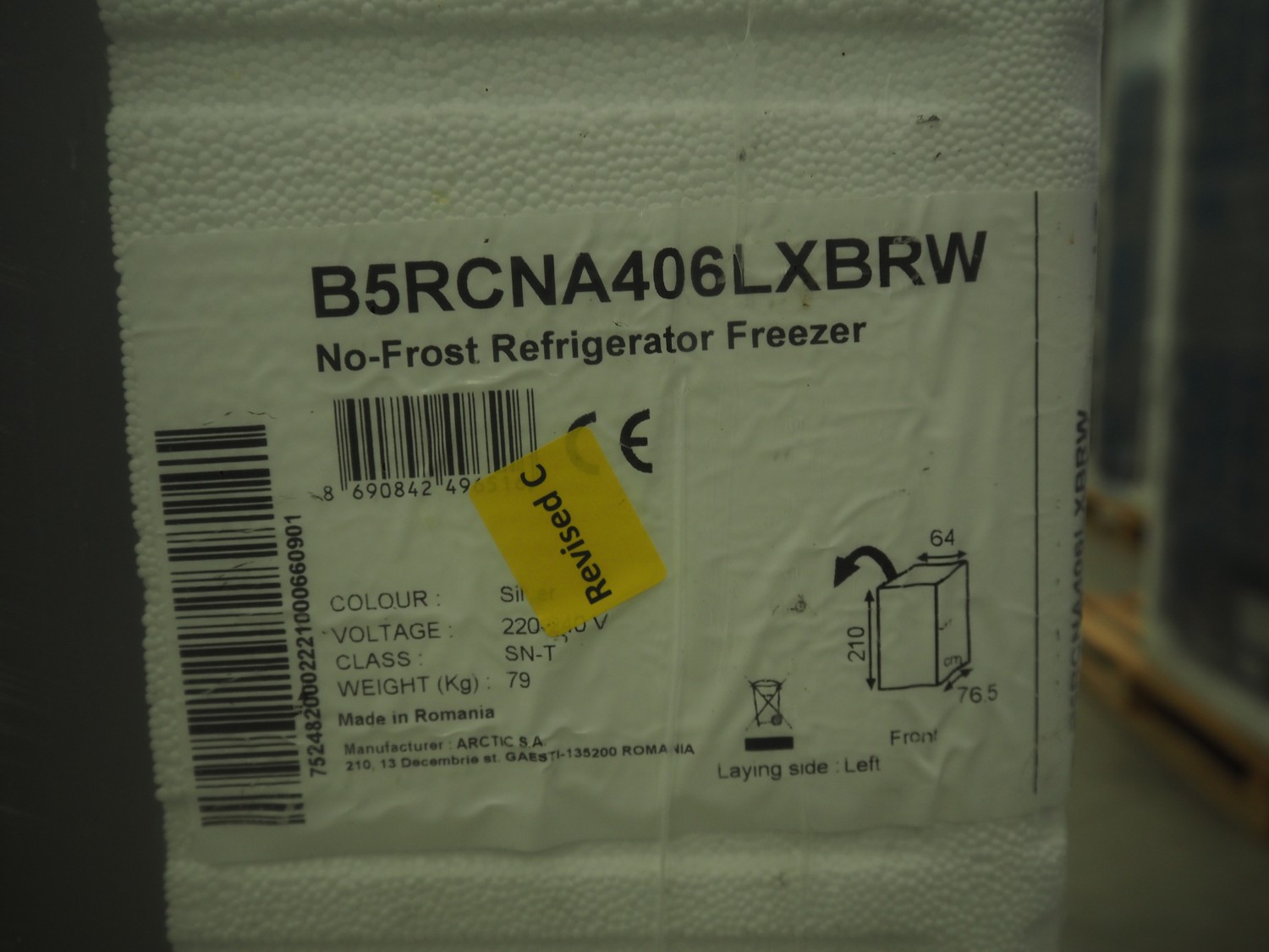 Beko No-Frost refrigerator/freezer, type: B5RCNA406LXBRW, 220-240 V, dimensions: 600 mm x 750 mm x 2100 mm.