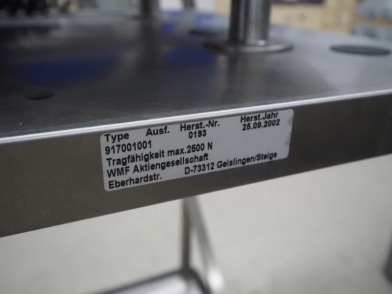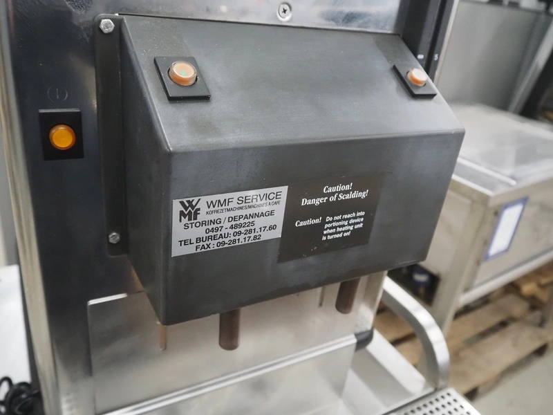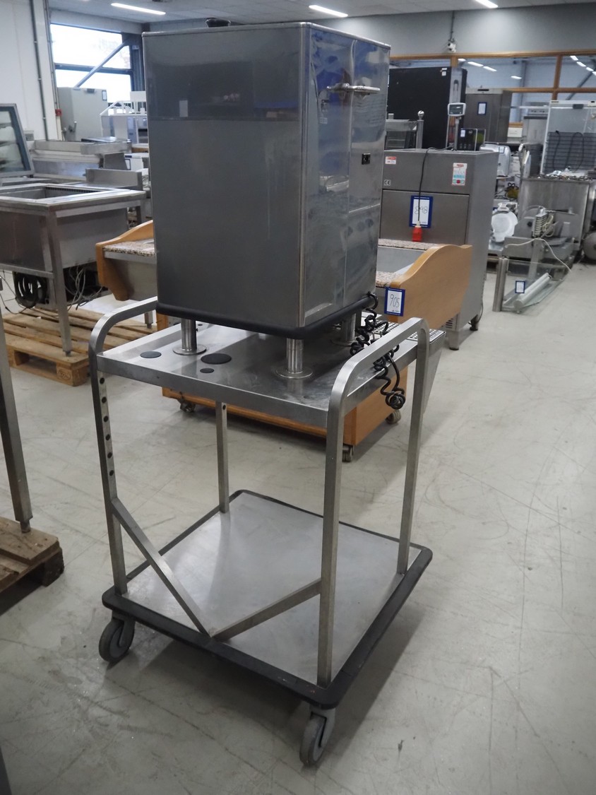 WMF coffee dispenser on s/s trolley, type: 03.6620.0294, 230 V, 1 Ph, 50 Hz, 0.07 kW, dimensions dispenser: 650 mm x 390 mm x 700 mm, total dimensions: 700 mm x 660 mm x 1600 mm.