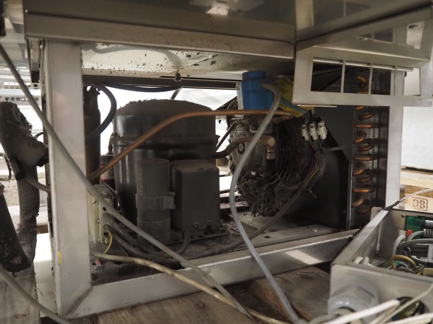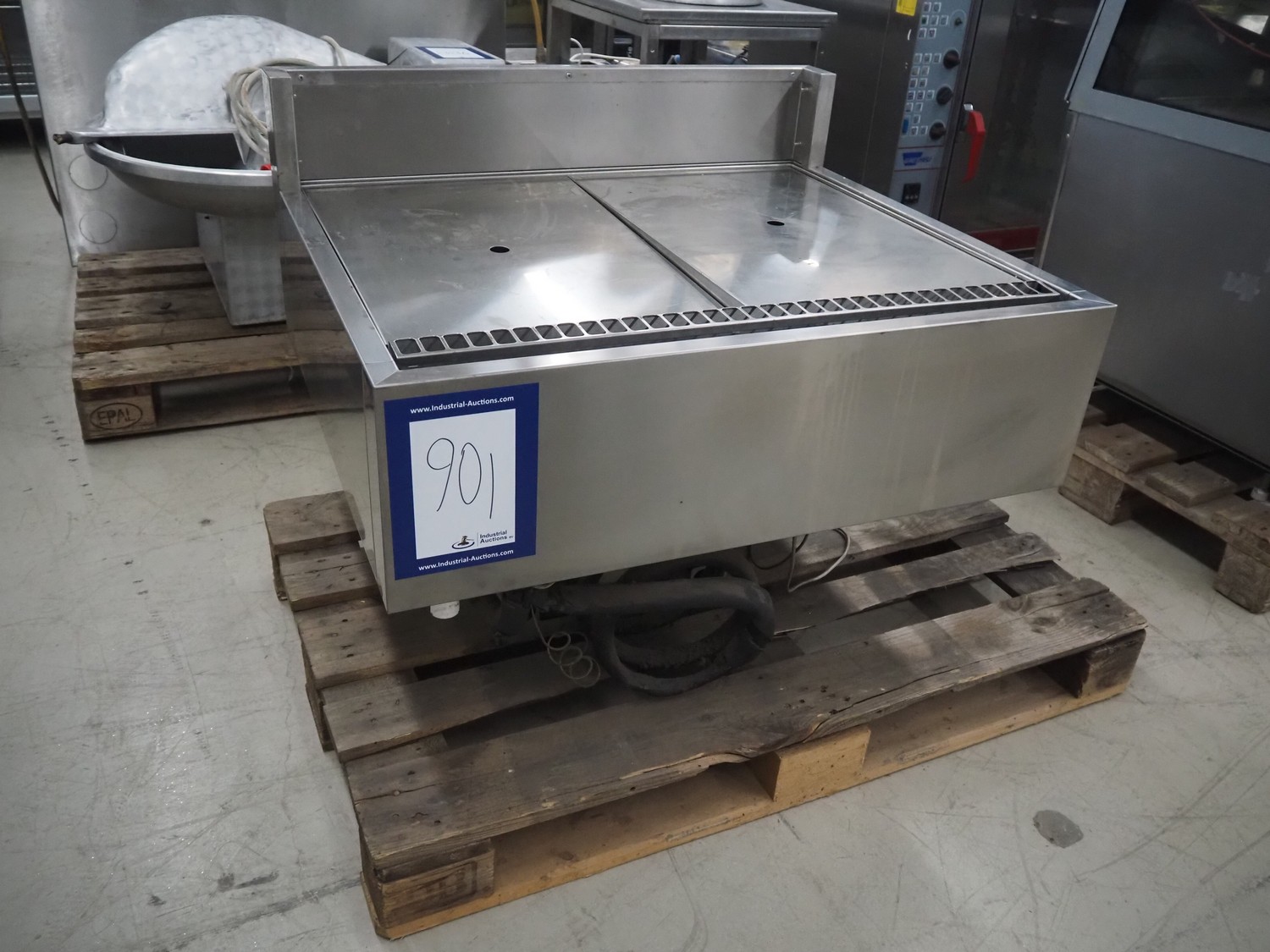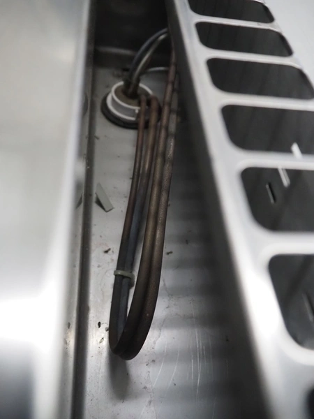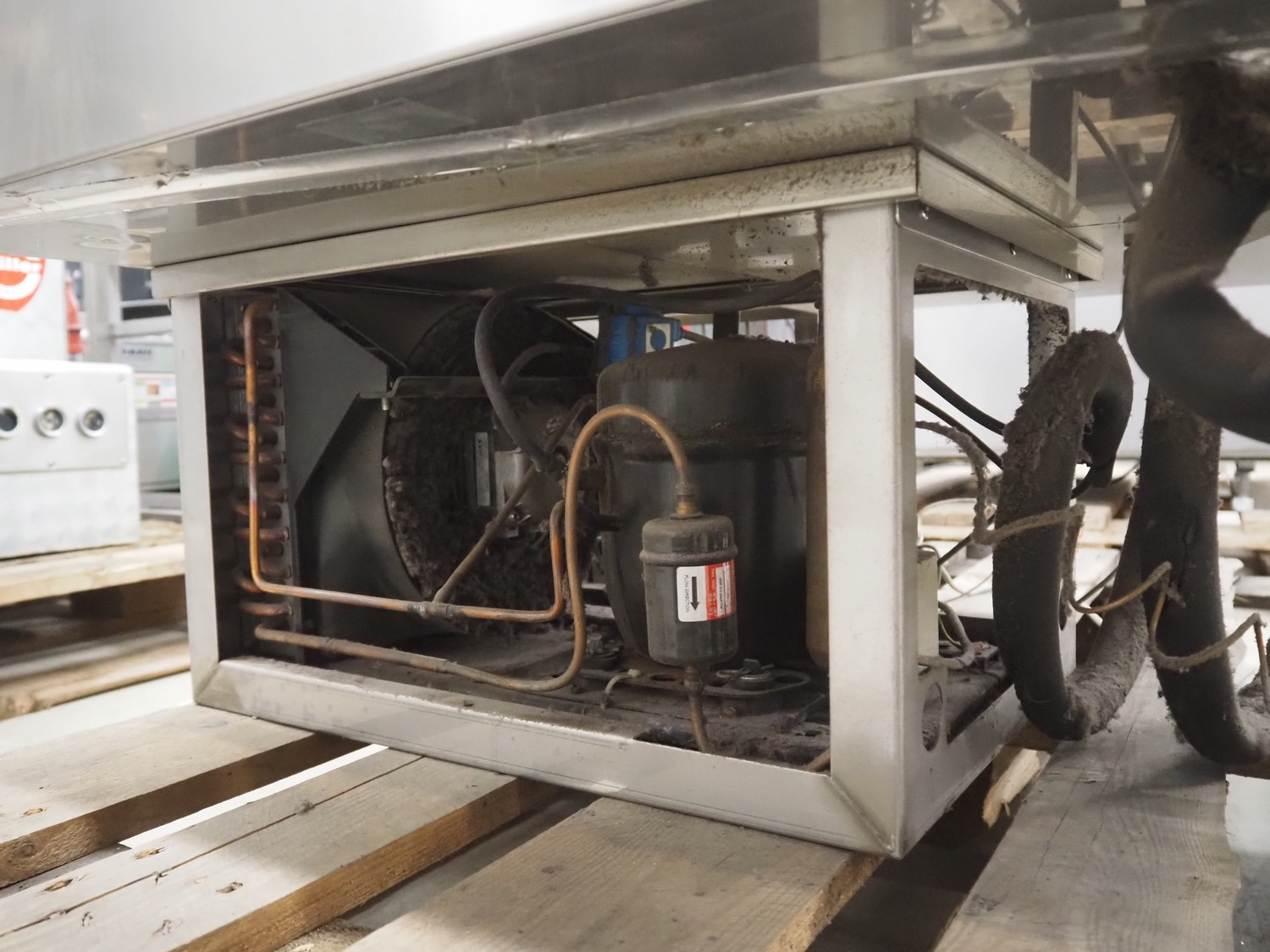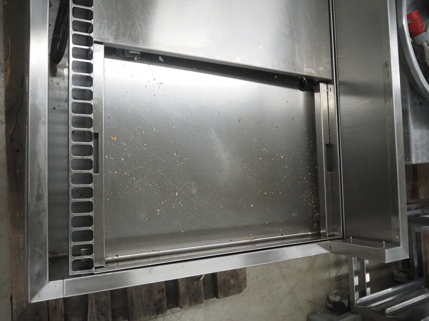 S/s refrigerated counter, dimensions: 880 mm x 750 mm x 690 mm. Incomplete, missing glass covers.