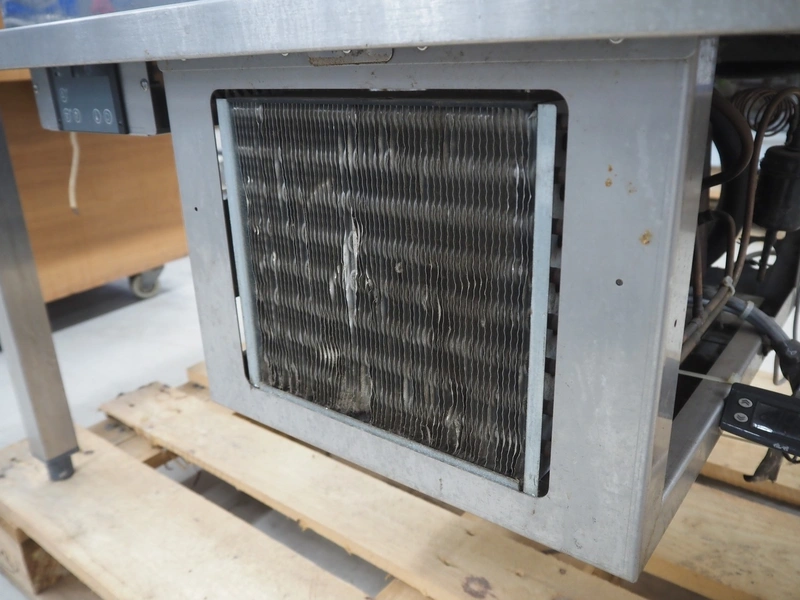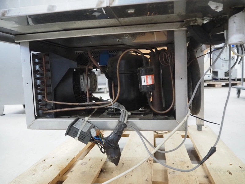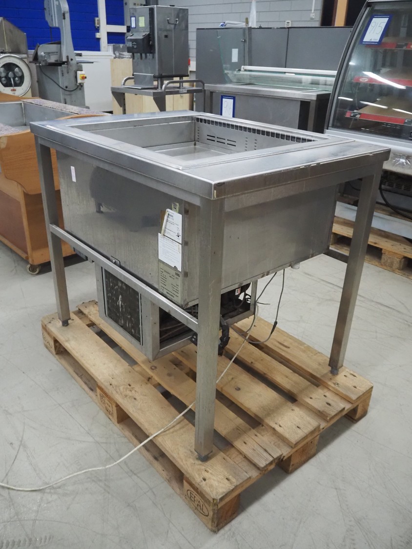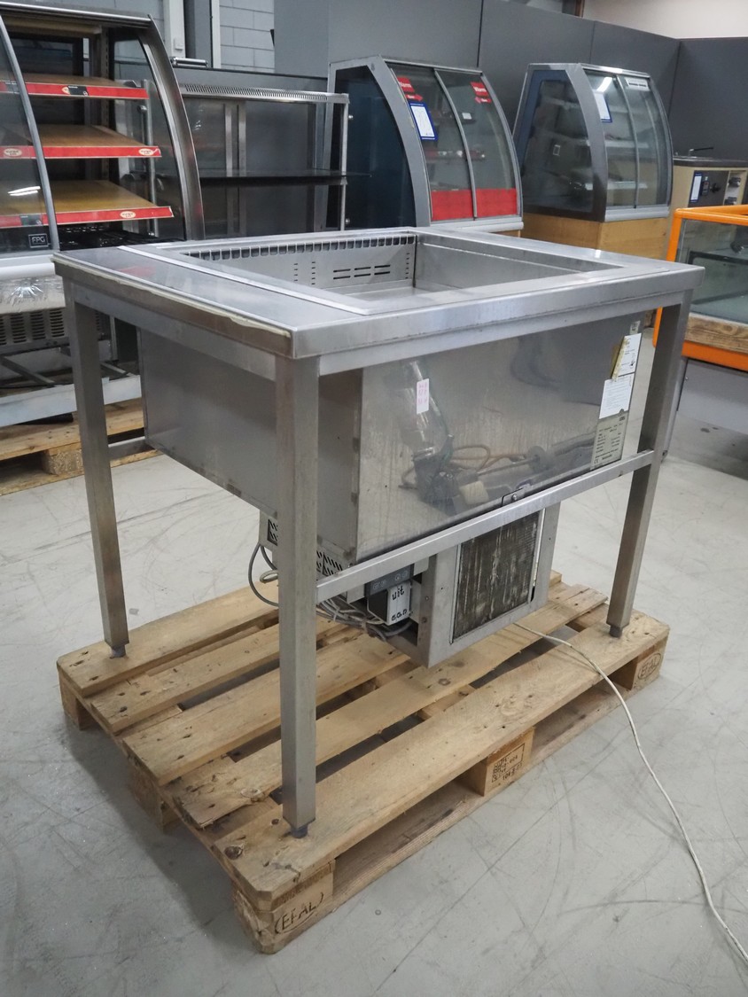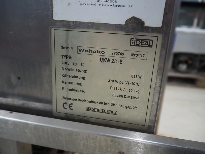 Ideal s/s refrigerated counter, type: UKW 2/1-E, serial number: Wehako 270749, year of construction: 08/04/2017, 230 V, 50 Hz, 338 W, refrigerant: R134A / 0.500 kg, inside dimensions: 660 mm x 540 mm, total dimensions: 1010 mm x 730 mm x 860 mm.