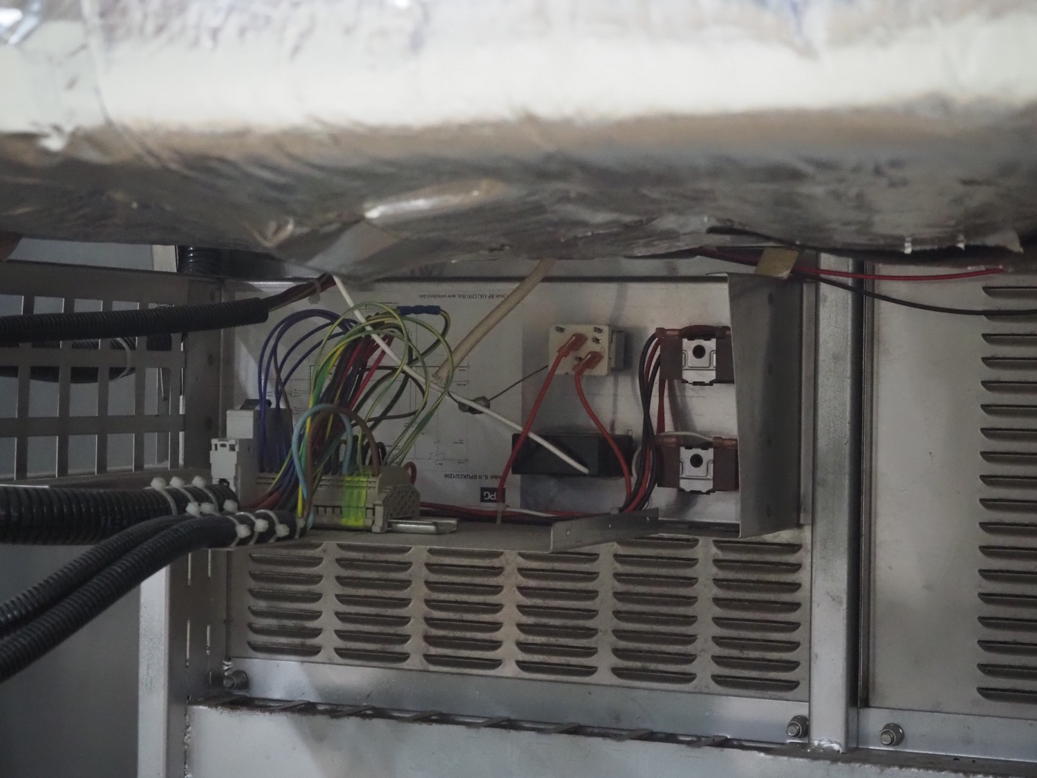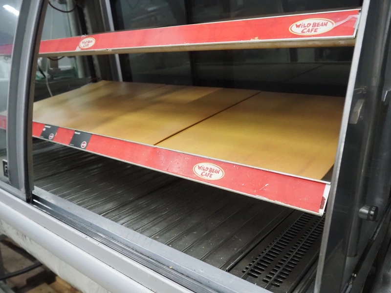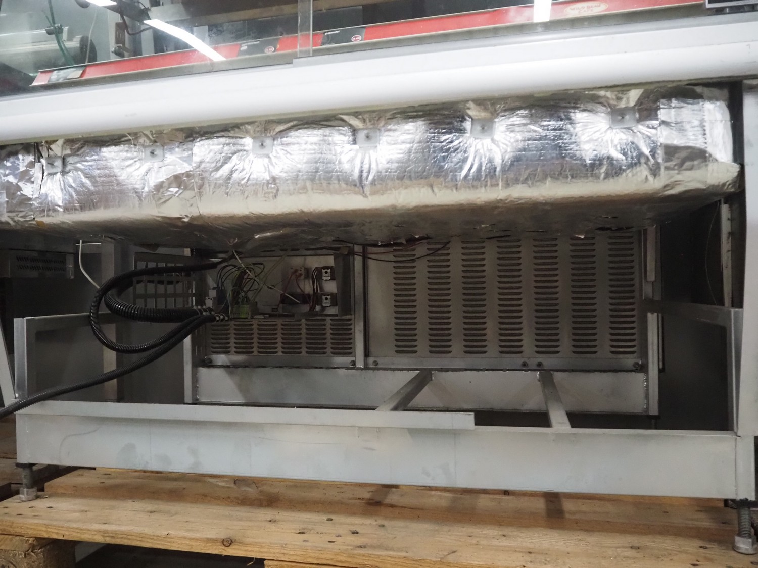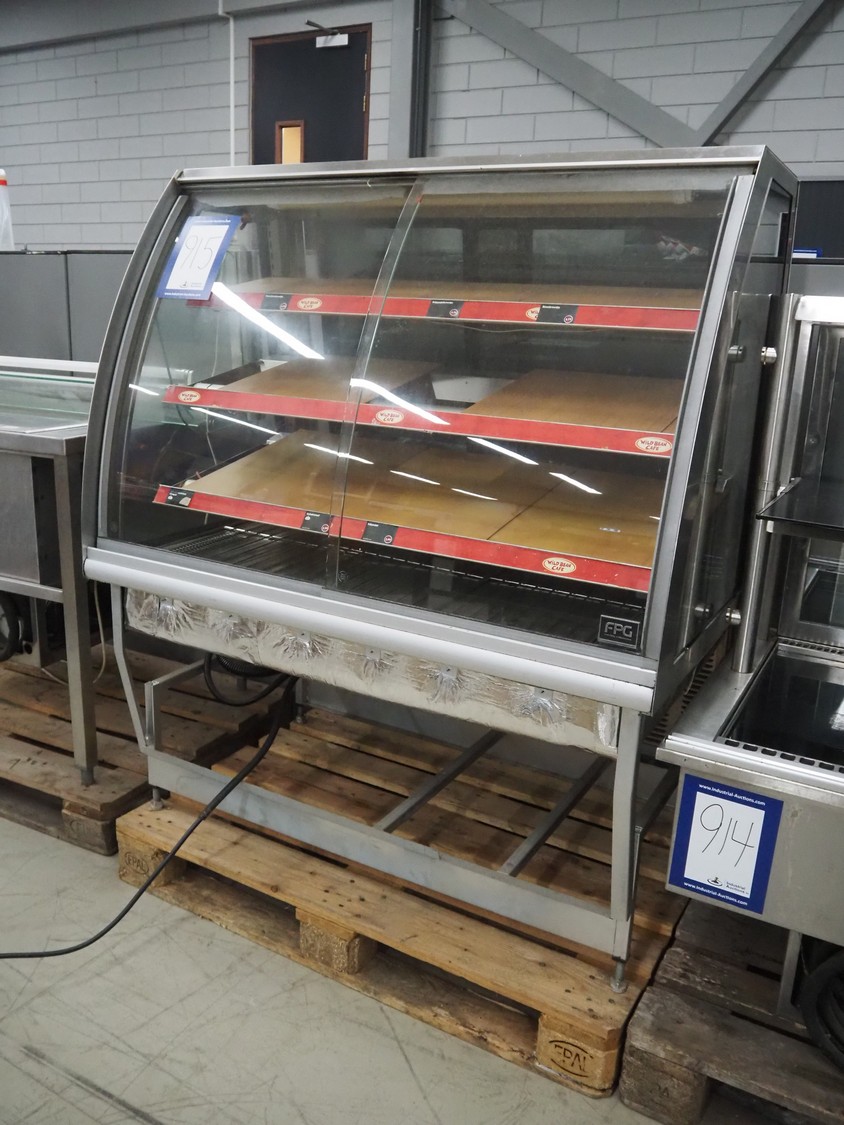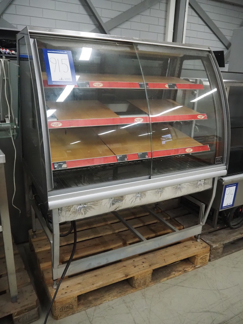 FPG World refrigerated showcase, dimensions: 1200 mm x 760 mm x 1430 mm. Incomplete, missing cooling compressor.