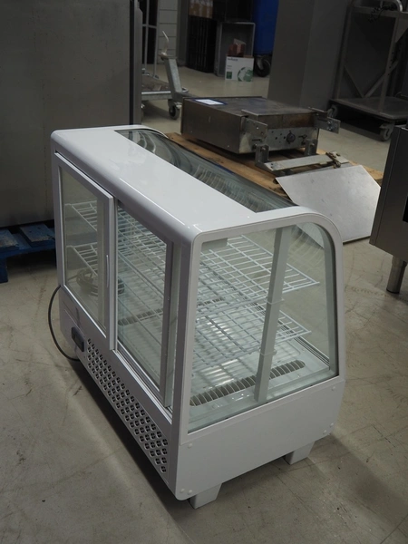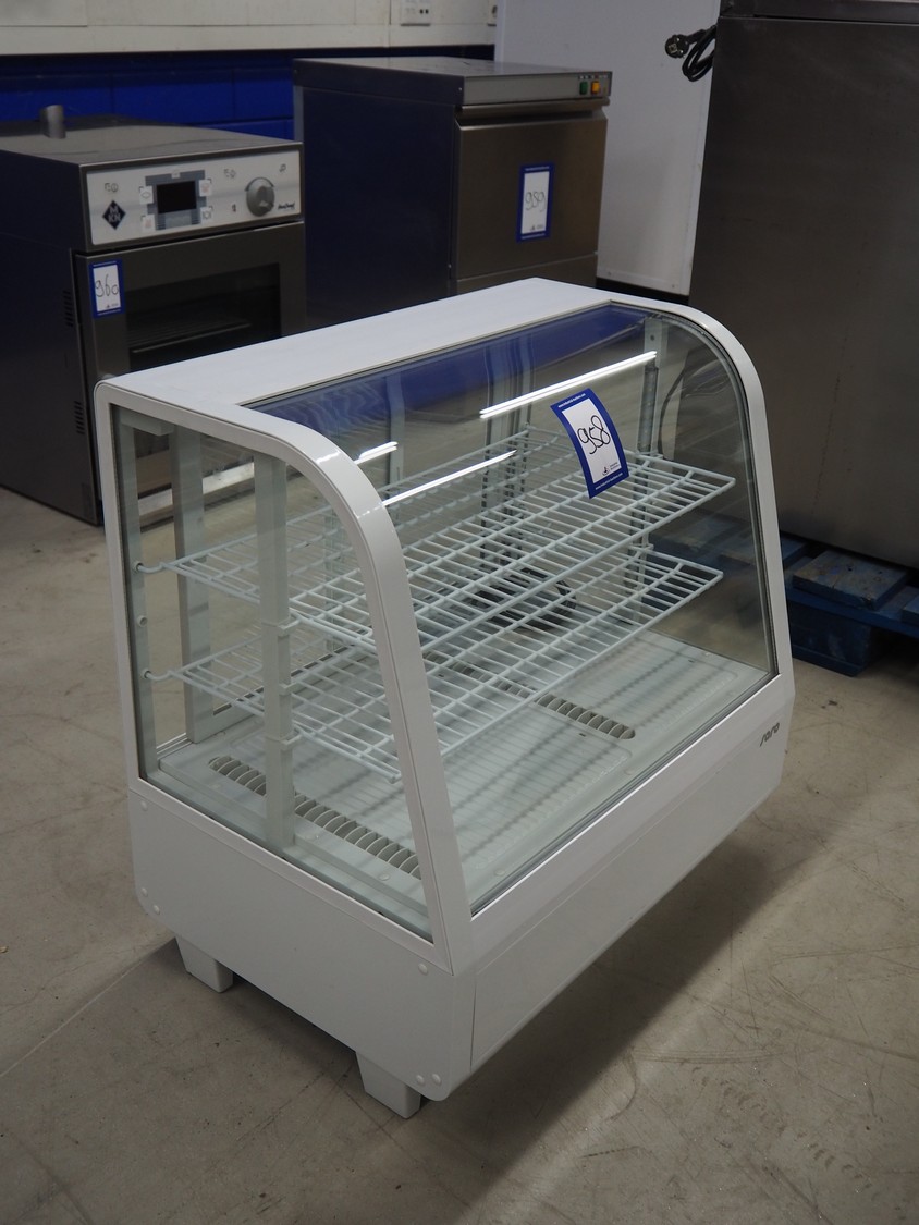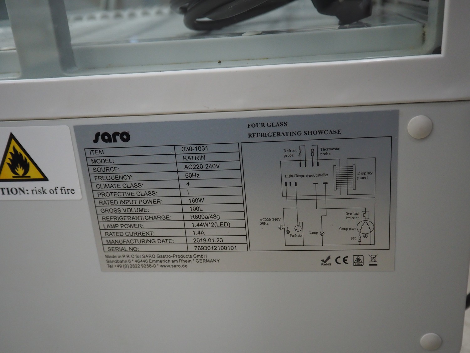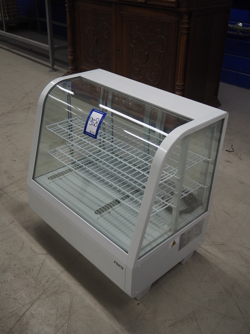Saro refrigerating showcase, model: KATRIN, serial number: 7693012100101, year of construction: 2019, 220-240 V, 50 Hz, 160 W, refrigerant: R600a/48g, dimensions: 450 mm x 680 mm x 680 mm.
