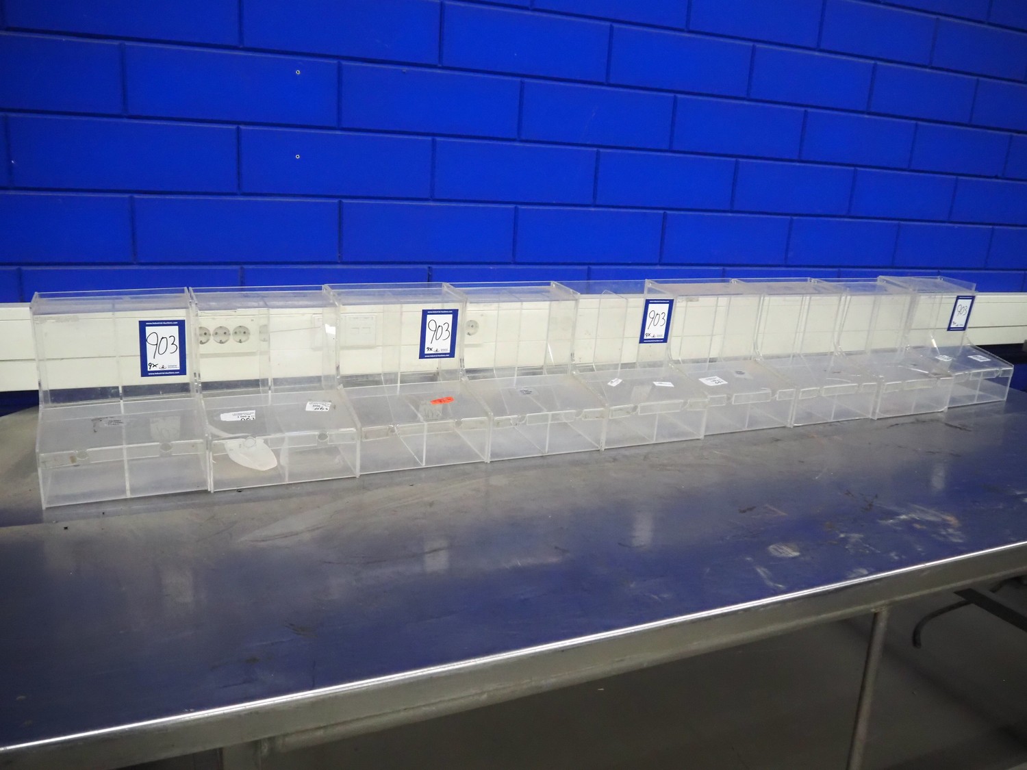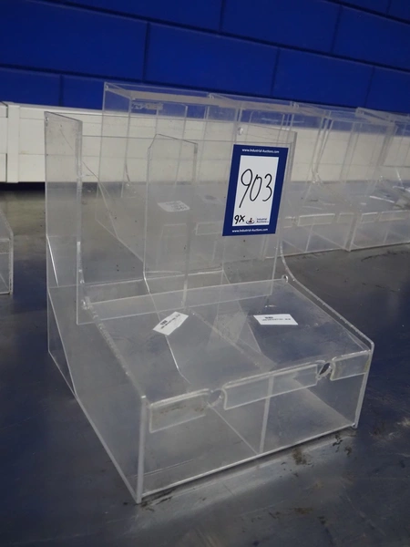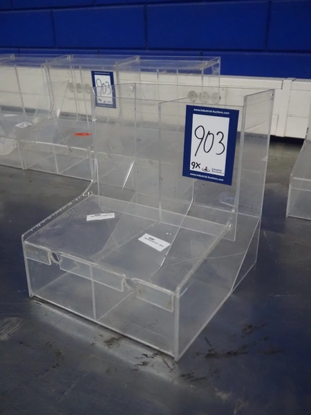 9 plastic candy dispenser, dimensions: (9x) 300 mm x 250 mm x 290 mm.