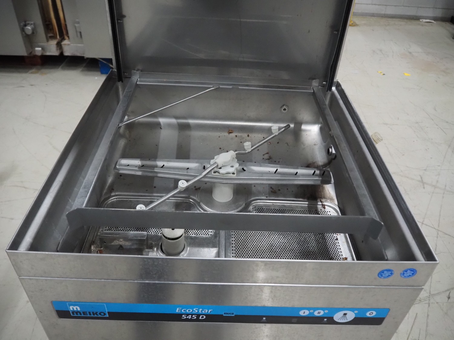 Meiko dishwasher, model: EcoStar 545 D, clearance: 500 mm x 500 mm, total dimensions: 850 mm x 700 mm x 1640 mm.