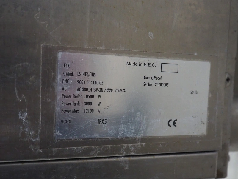 Zanussi dishwasher, model: LS14EA/INS, serial number: 34700005, inside dimensions: 500 mm x 500 mm, total dimensions: 800 mm x 750 mm x 1500 mm.