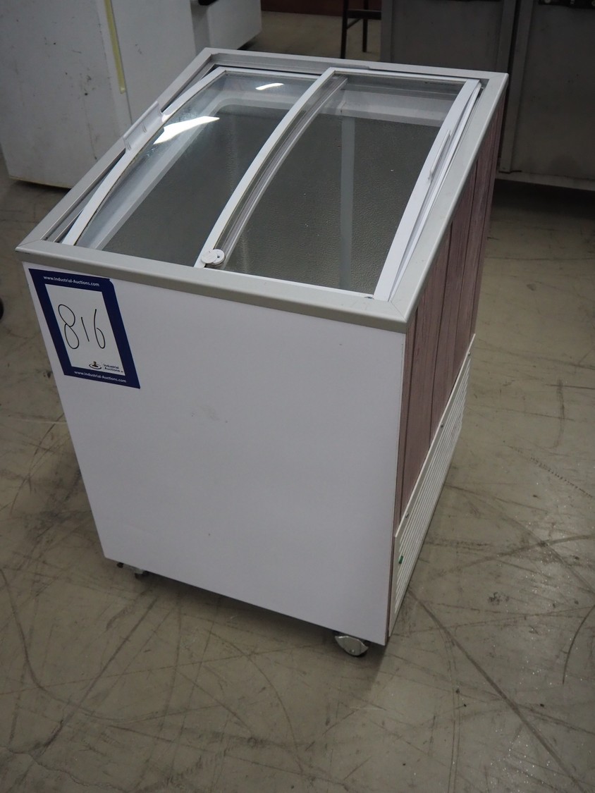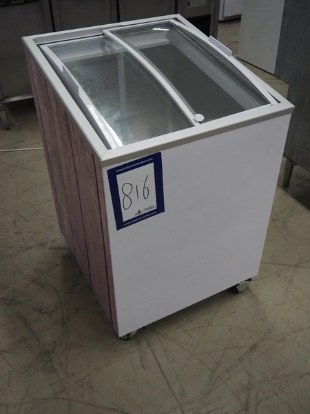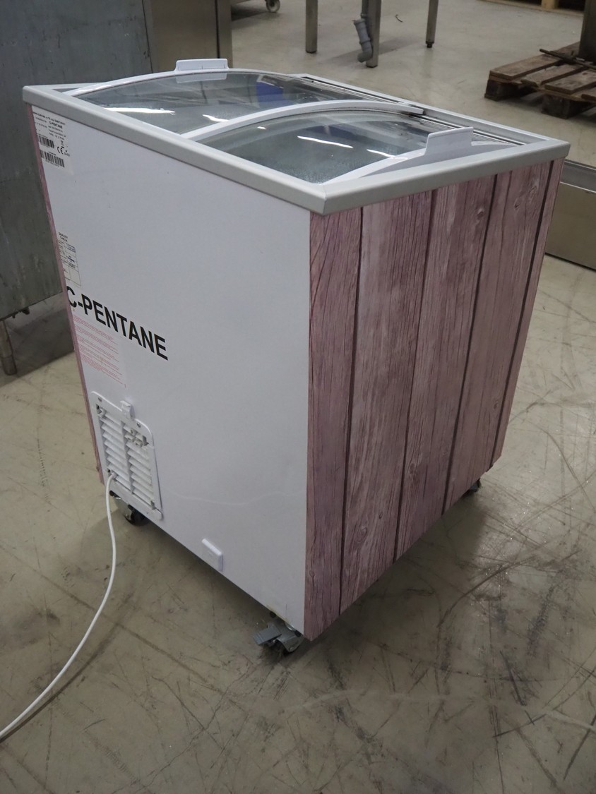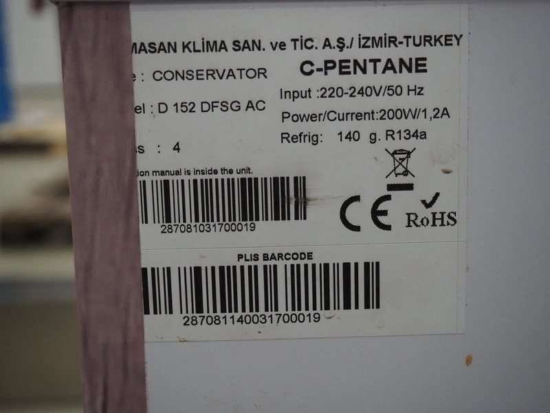 Masan Klima San freezer, model: D 152 DFSG AC, 220-240 V, 50 Hz, 1.2 A, 200 W, refrigerant: R134a / 140 gram, dimensions: 640 mm x 590 mm x 900 mm.