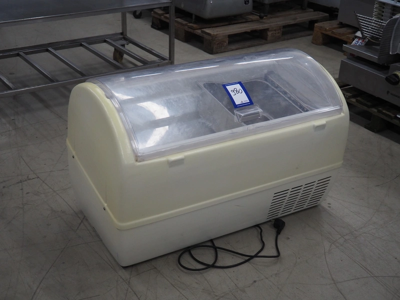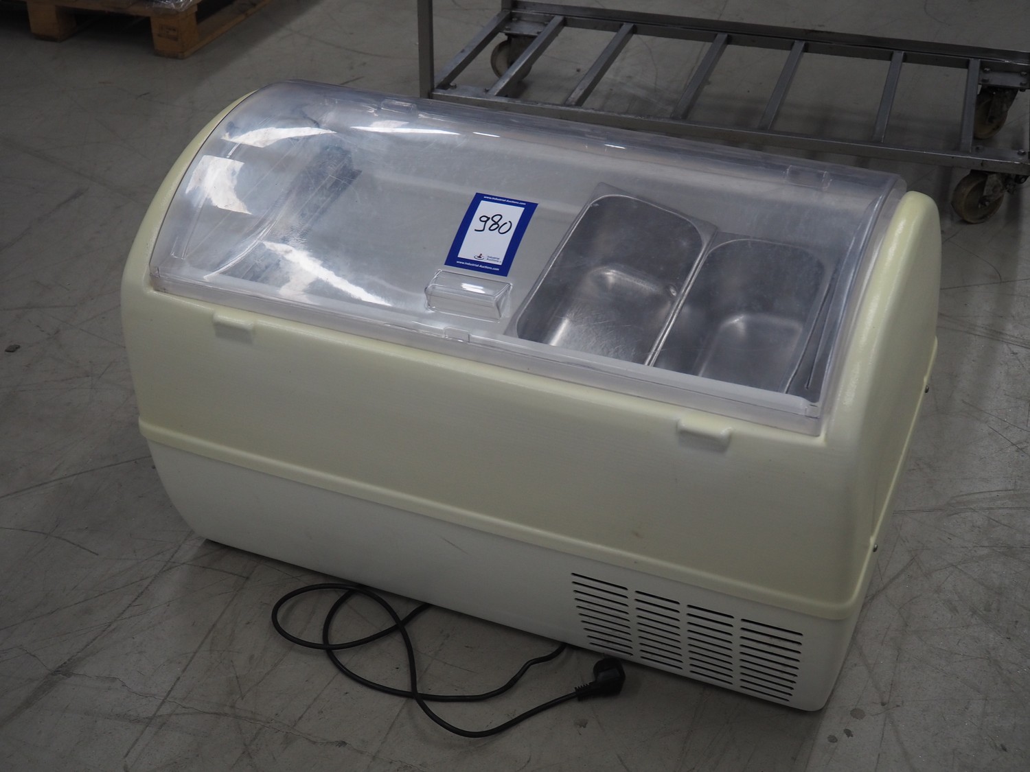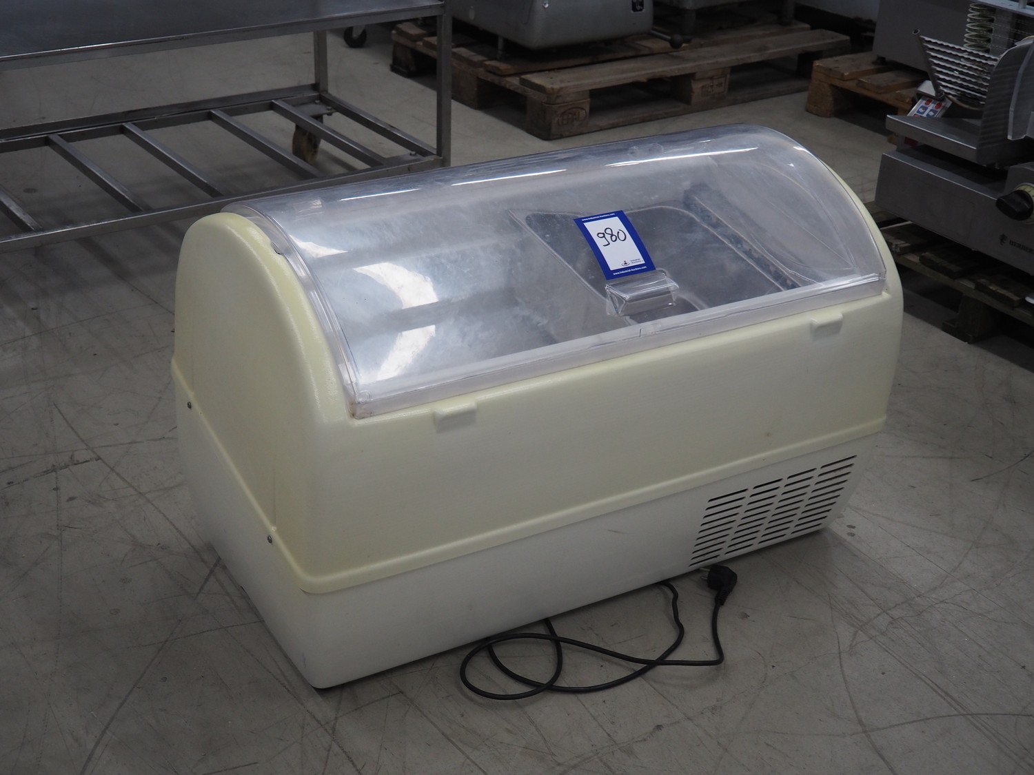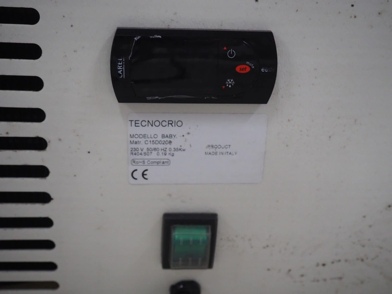 Tecnocrio showcase freezer, model: BABY, machine number: C15D0208, 230 V, 50/60 Hz, 0.35 kW, refrigerant: R404/0.19 kg, dimensions: 500 mm x 900 mm x 600 mm.