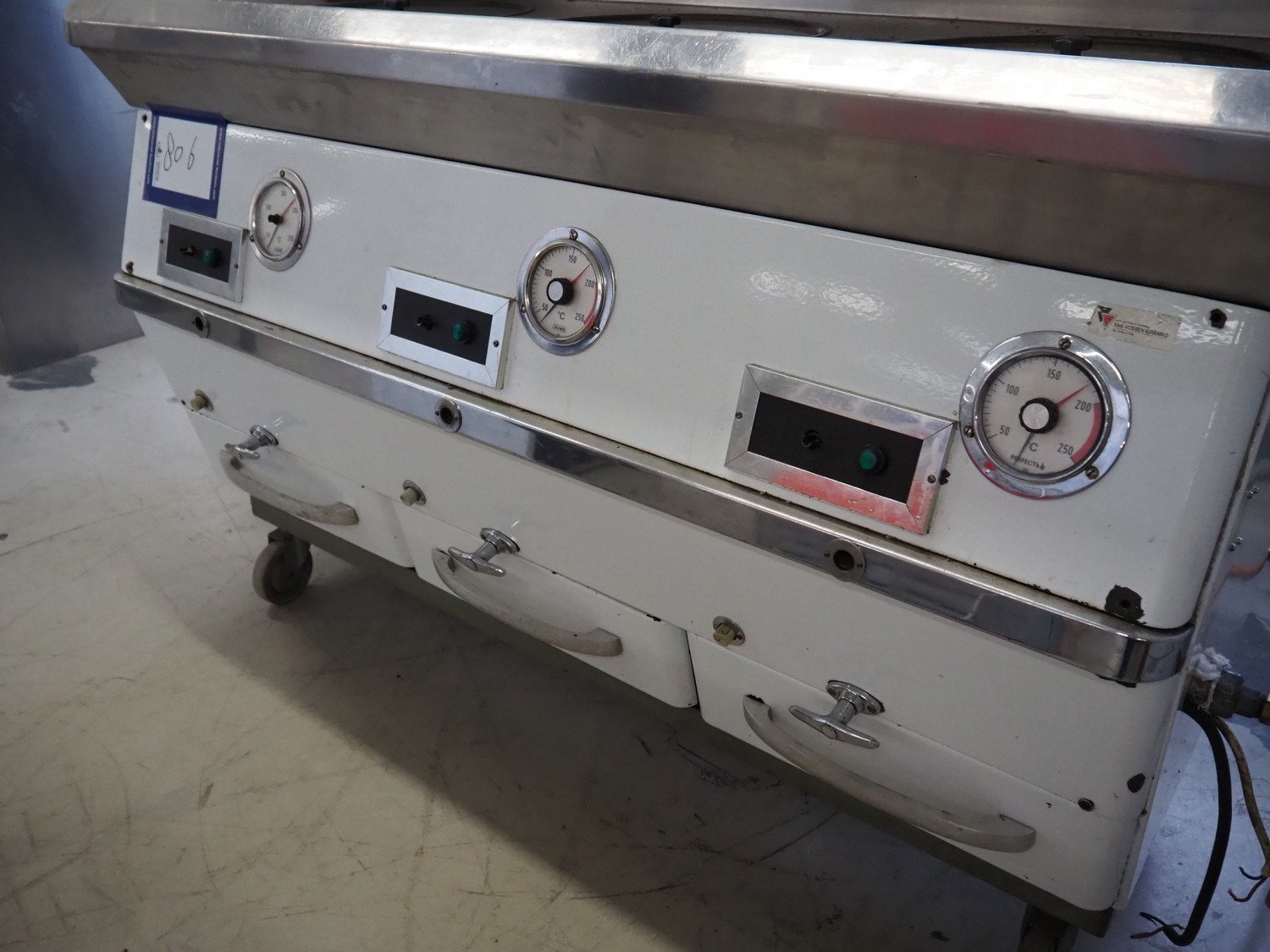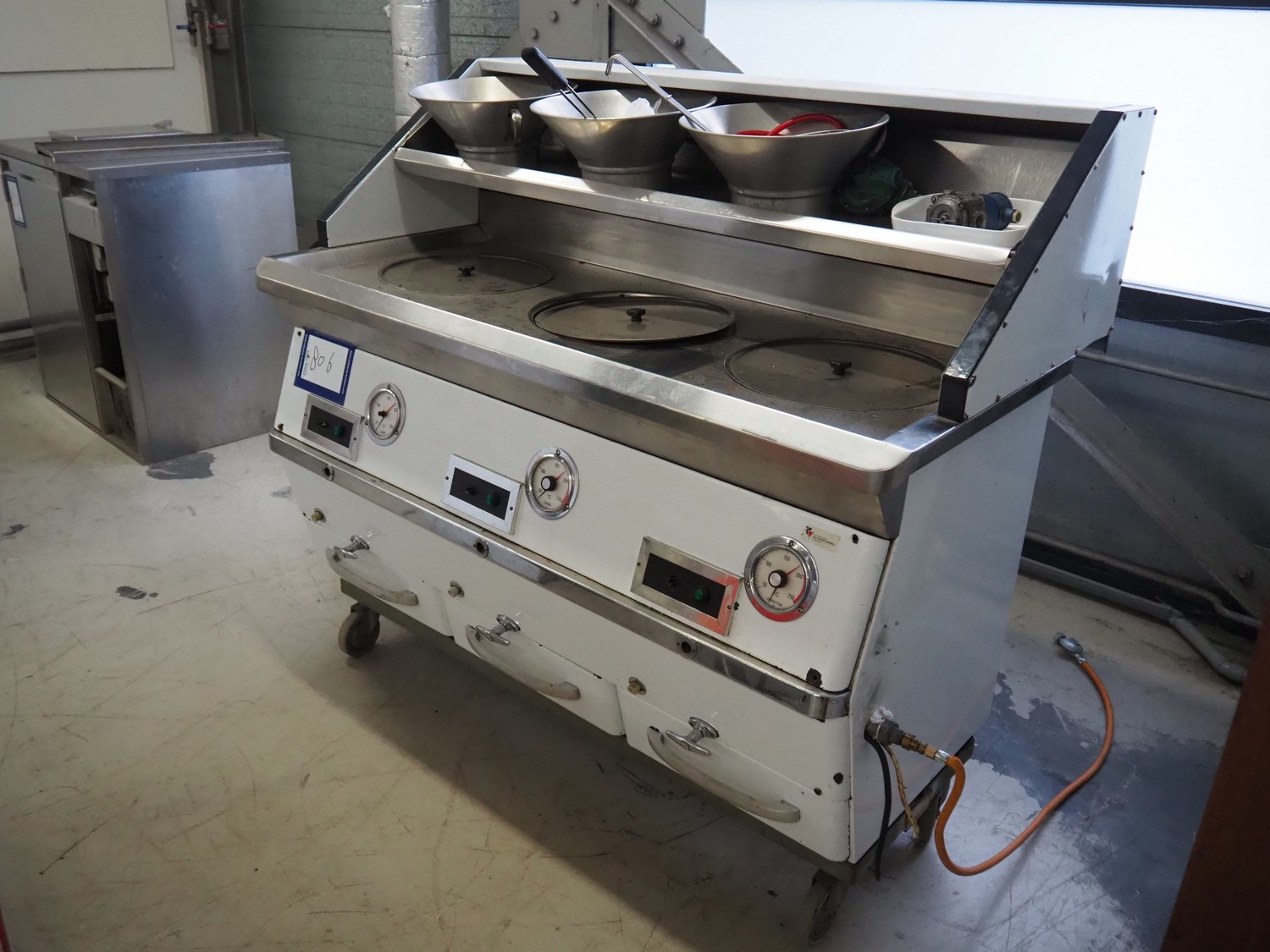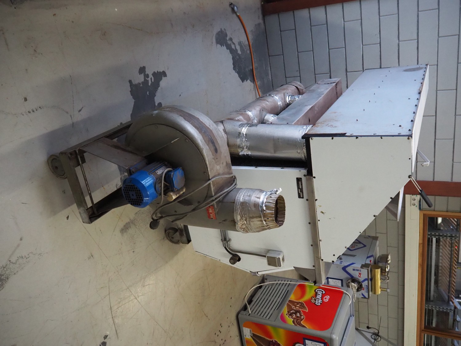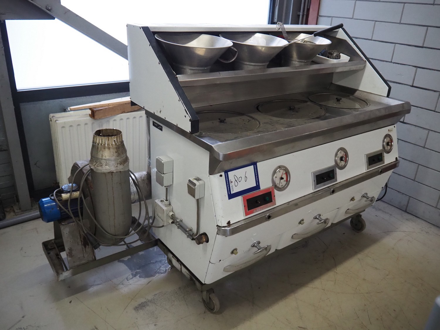 Rotodyne mobile fryer, type: CV 180, number: 11372, 380/220 V, 0.87/1.5 A, gas heated, dimensions: 1600 mm x 820 mm x 1450 mm.